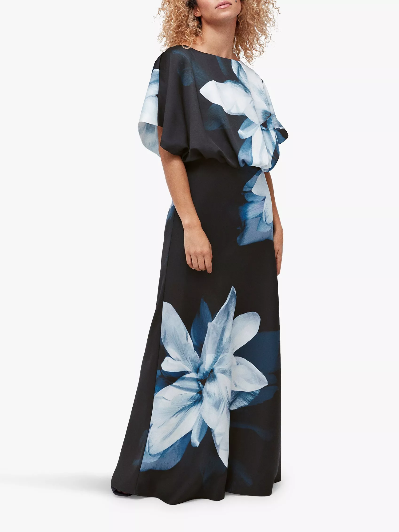 Cut from a floaty lightweight fabric, this dress from Coast is an ideal addition to your warm-weather wardrobe. The loose-fit caped top and fitted waist create a fluid silhouette, accentuated by the flared sleeves and hem. Try wearing with simple sandals to keep the bold floral print as the main focus.