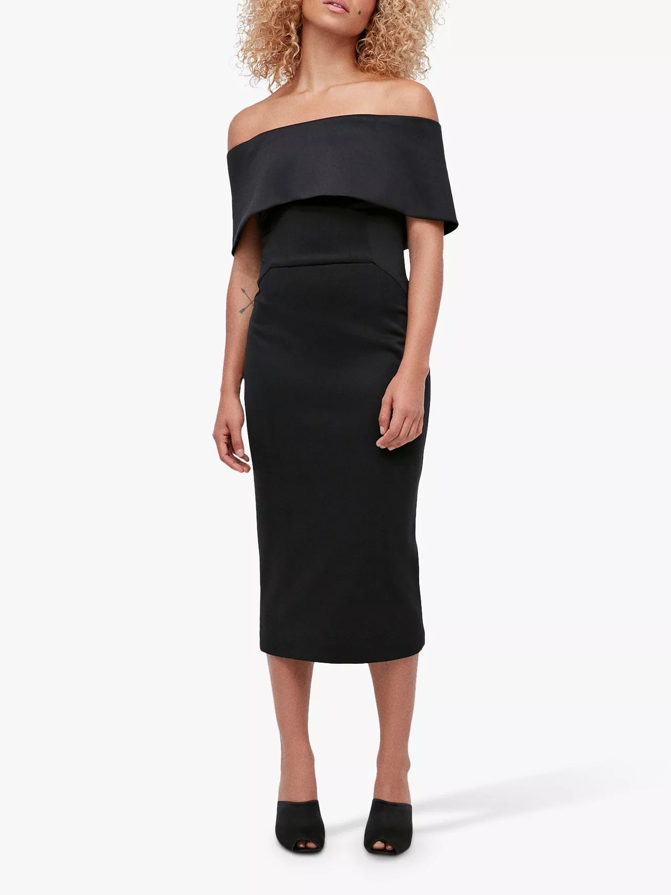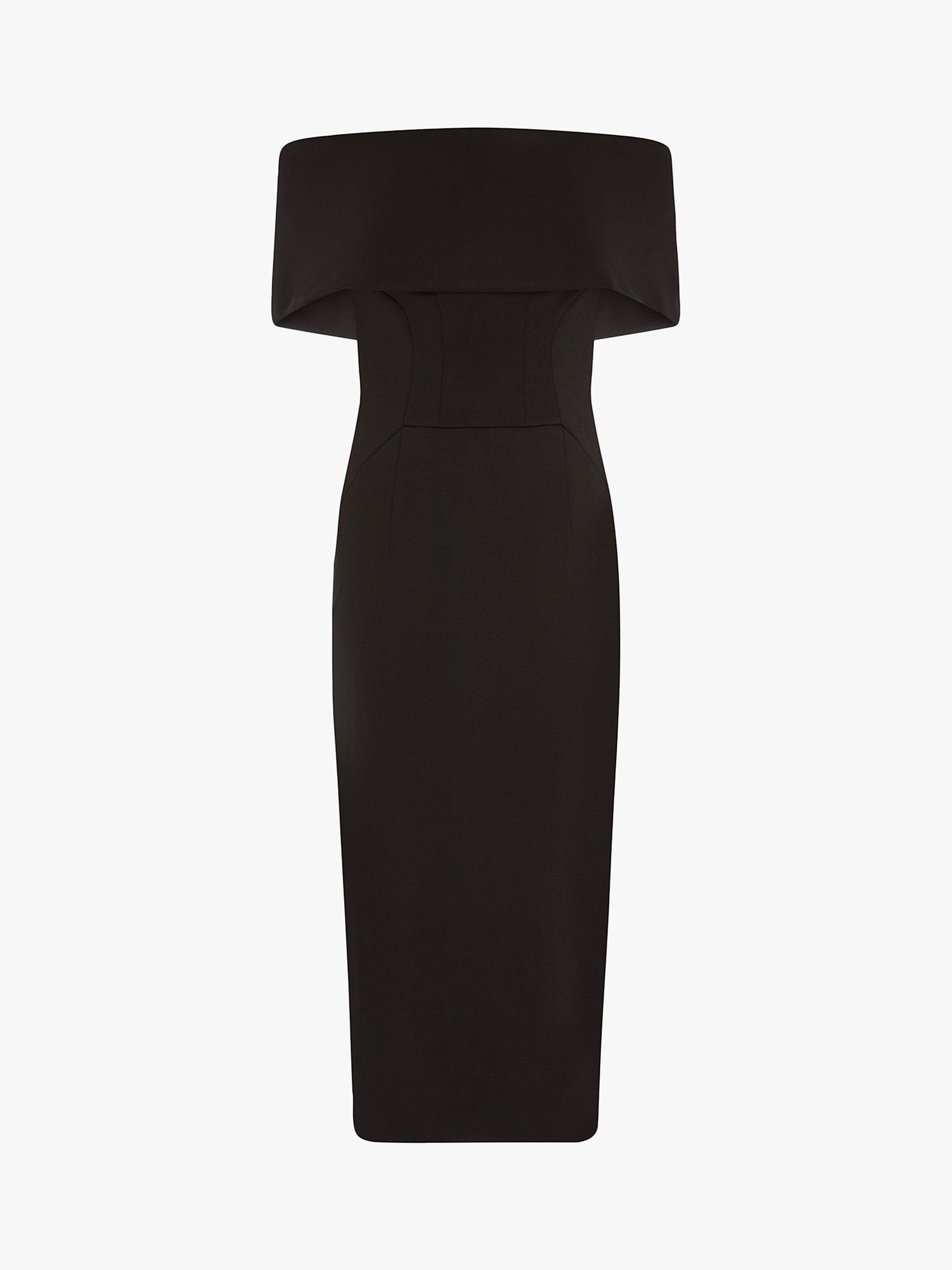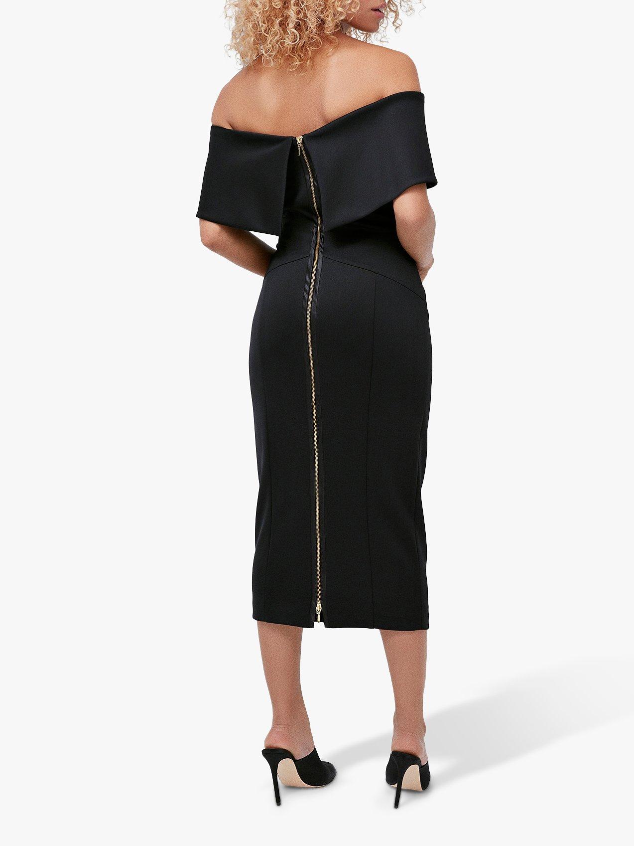 A curve-contouring piece from Coast, this scuba dress from Coast is designed with a folded Bardot neckline, cut to an elegant midi length. Detailed with an exposed zip for a modern aesthetic, wear it with statement heels and minimal jewellery.