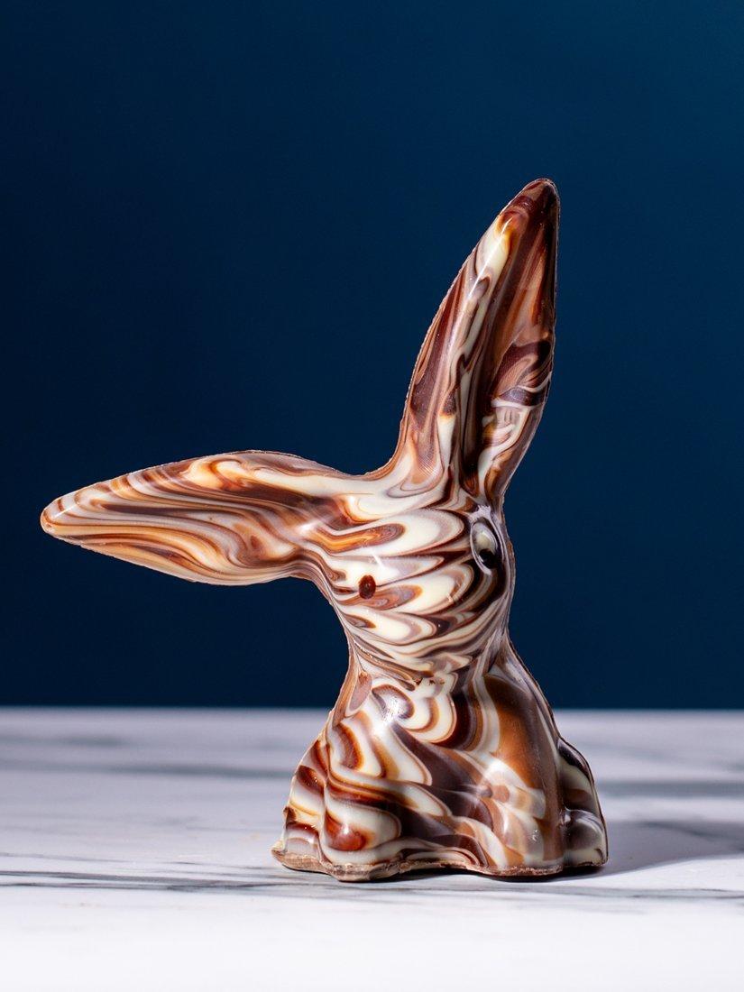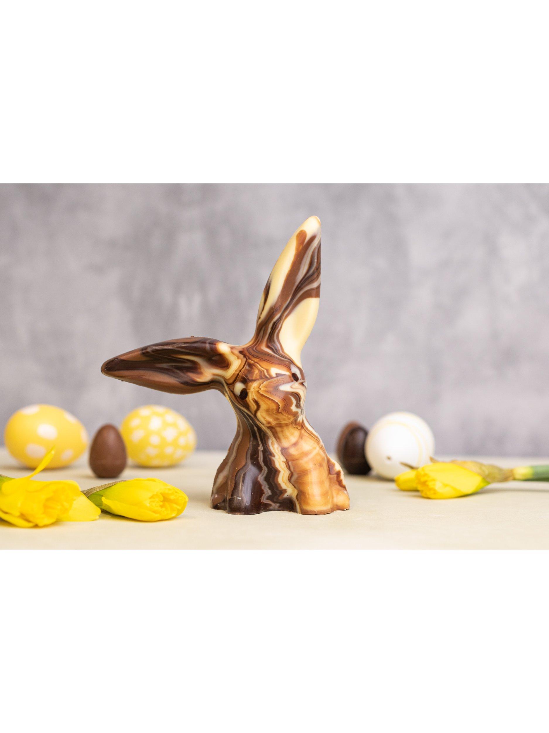 This cute, completely solid chocolate rabbit has made another appearance this year, made with swirled chocolate for a marbled effect.