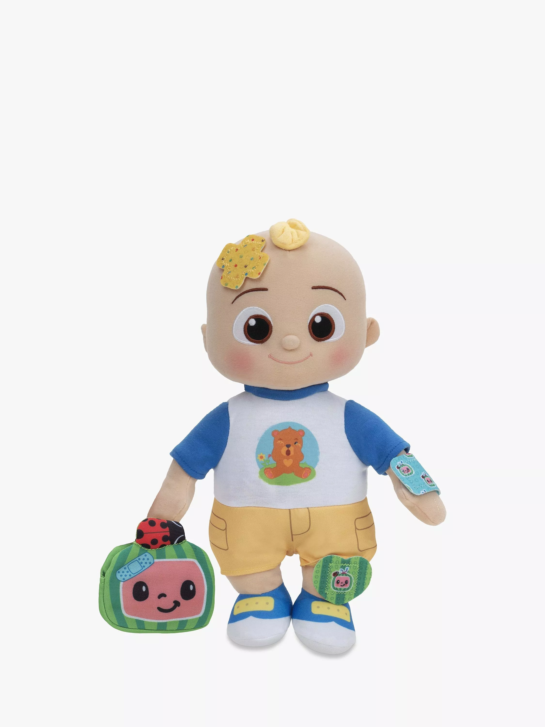 JJ reacts when he’s hurt, and then when he’s healed. When your CoCoMelon Boo Boo JJ Plush begins to cry, cure the boo boo by carefully applying a bandage over the lit-up area. Then, JJ will giggle or go "Wee" and say "Yay! My boo boo is gone!" among other great phrases and sounds.