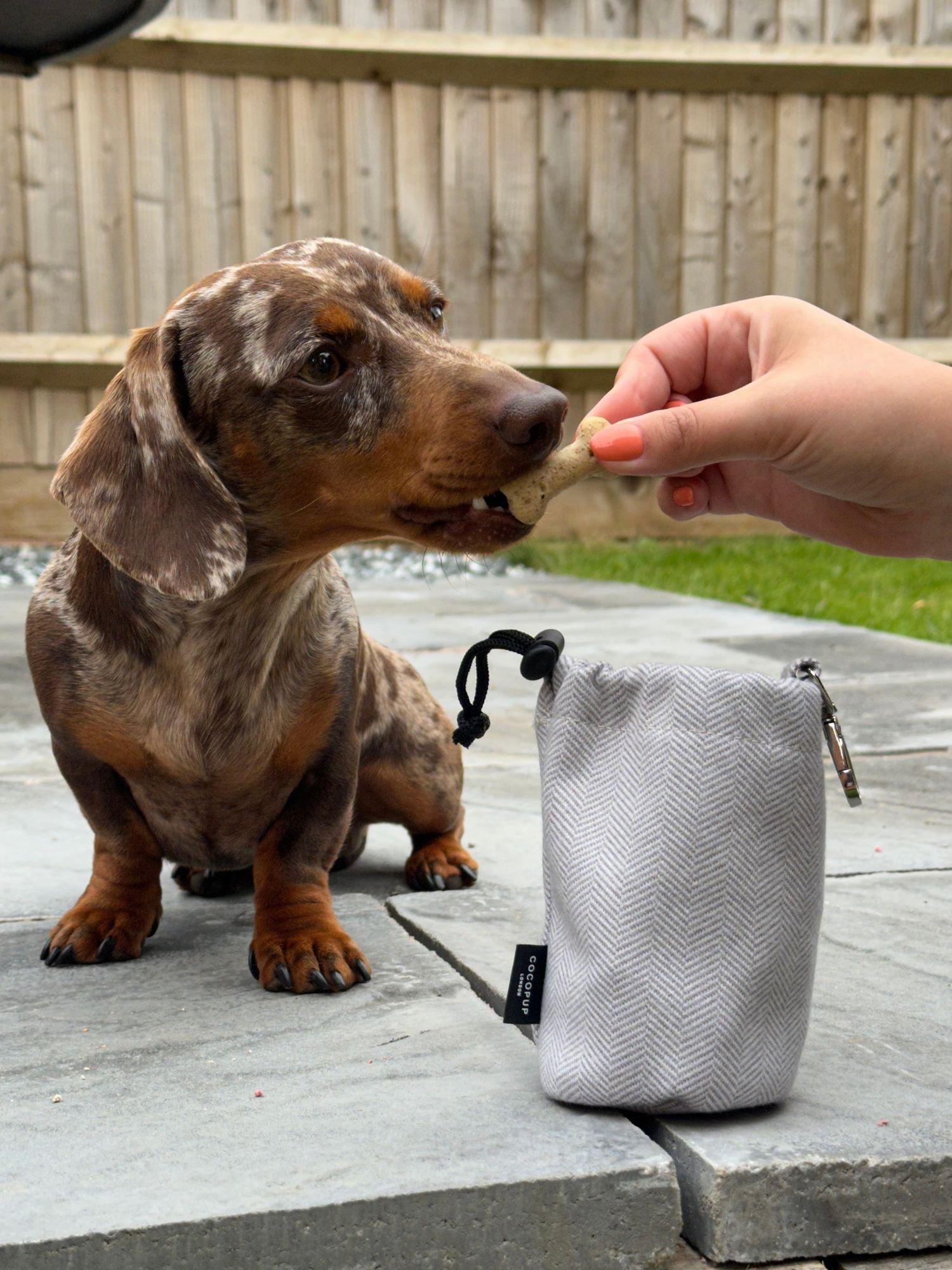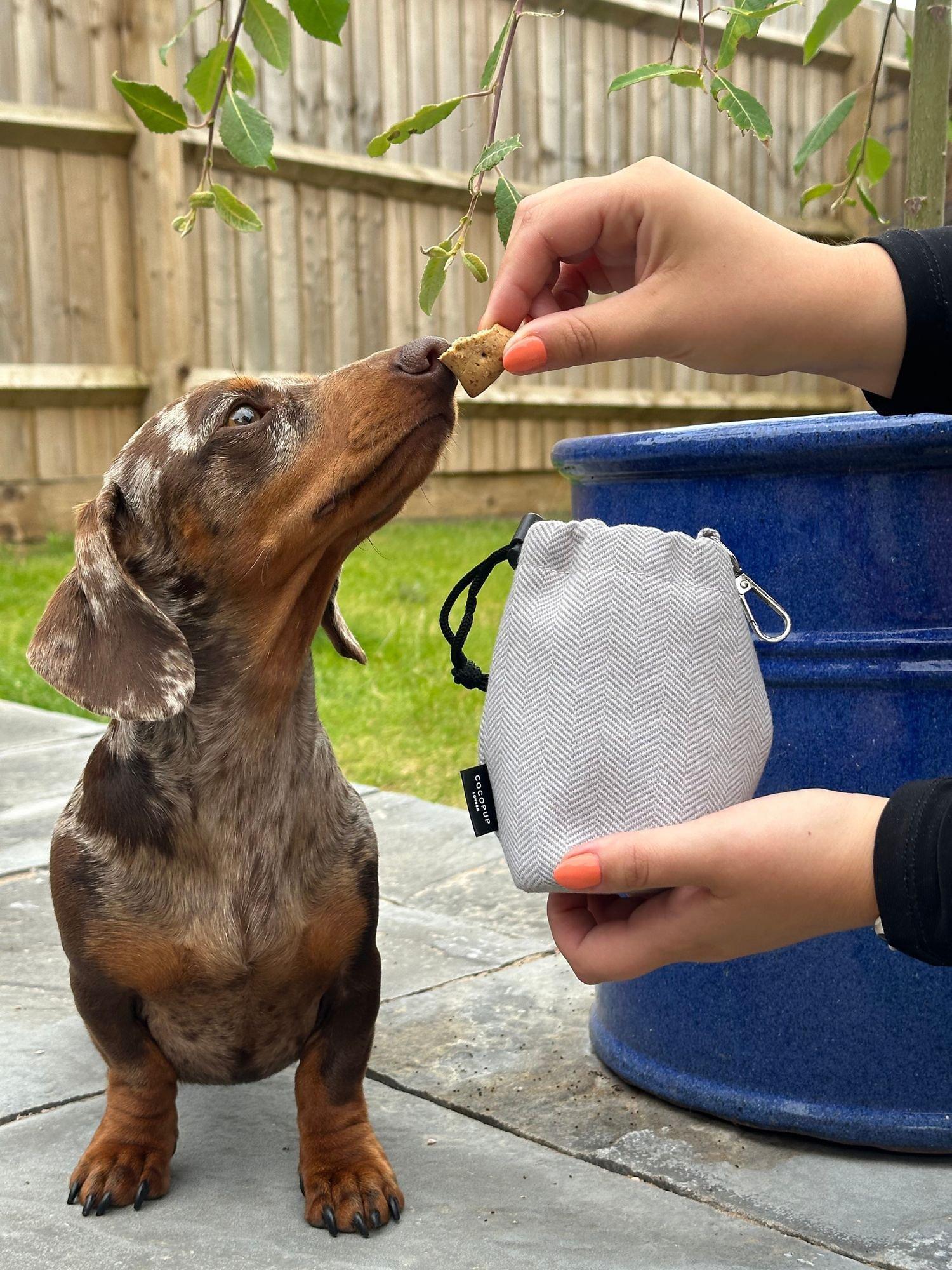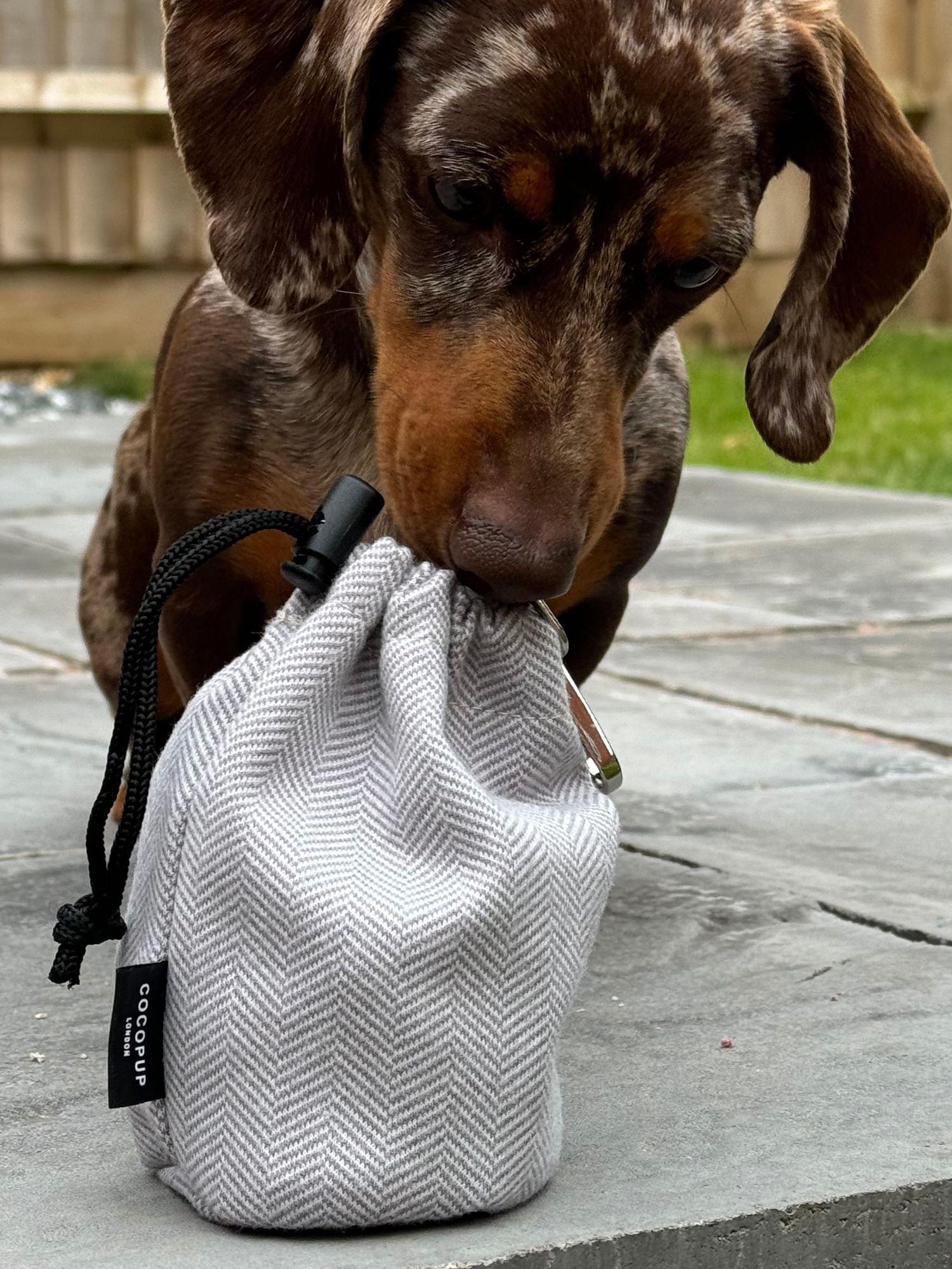 Keep your pup in check with treats on the go! Keep your bag mess free with a super chic Drawstring Treat Pouch from Cocopup.