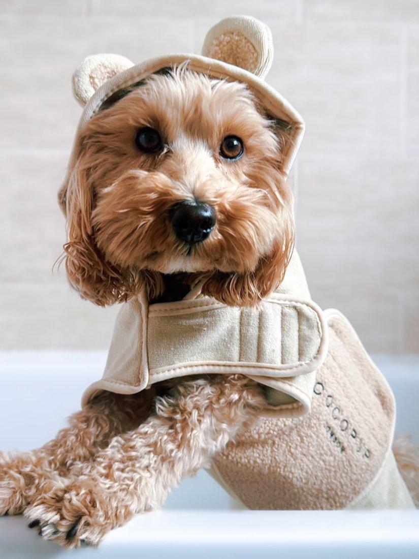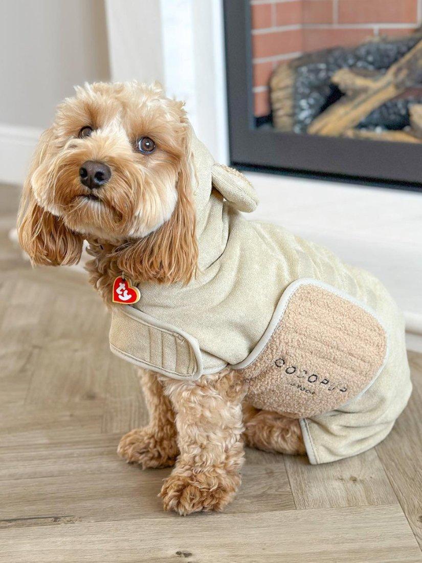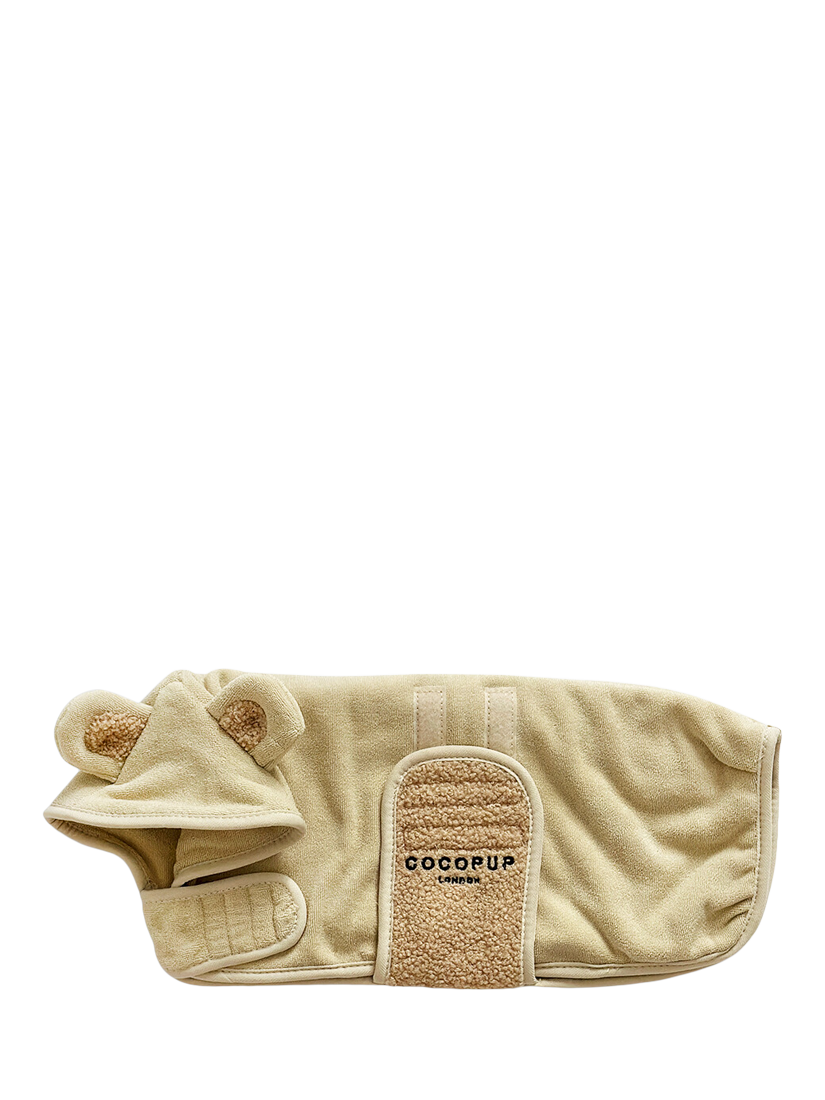 Cocopup's Teddy Drying Robe is the cutest way to dry off after a good dip! Keep your pup looking adorable & dry at the same time with this stylish and cosy teddy dog towel robe. Simply pop your pooch in our robe, fasten around the belly and neck with our super simple riptape patches. Pawfect for relaxing post walkies... say goodbye to wet dog smell and endless rubbing down!