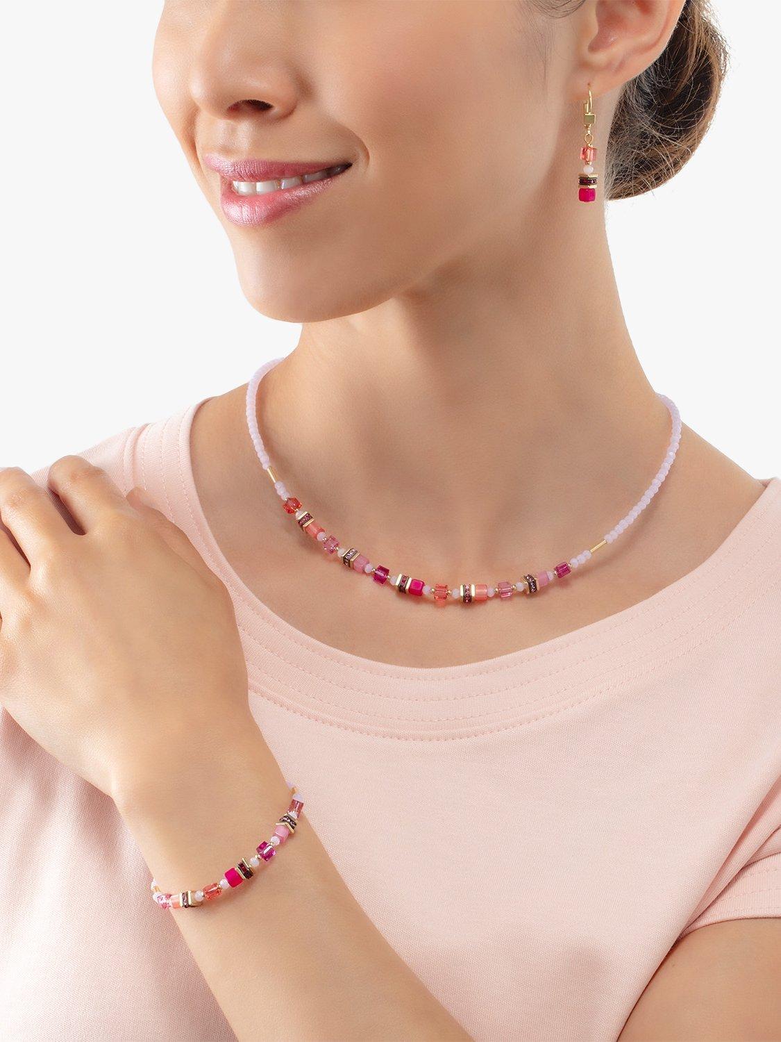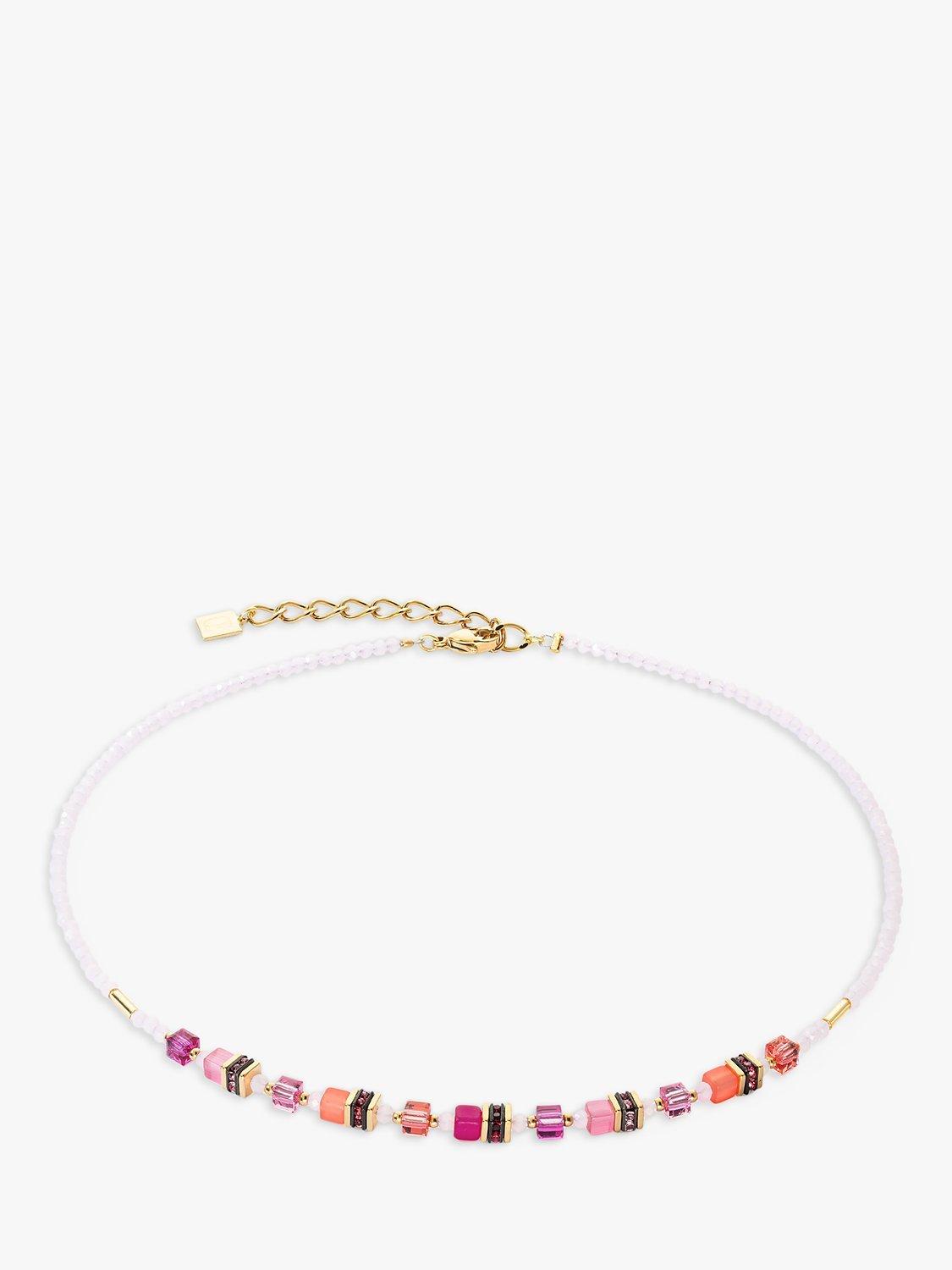 Soft and subtly enhancing the décolletage, this beaded necklace from COEUR DE LION is comprised of a string of synthetic tiger's eye, Swarovski crystals, polaris, rhinestone rondelles and cut glass.