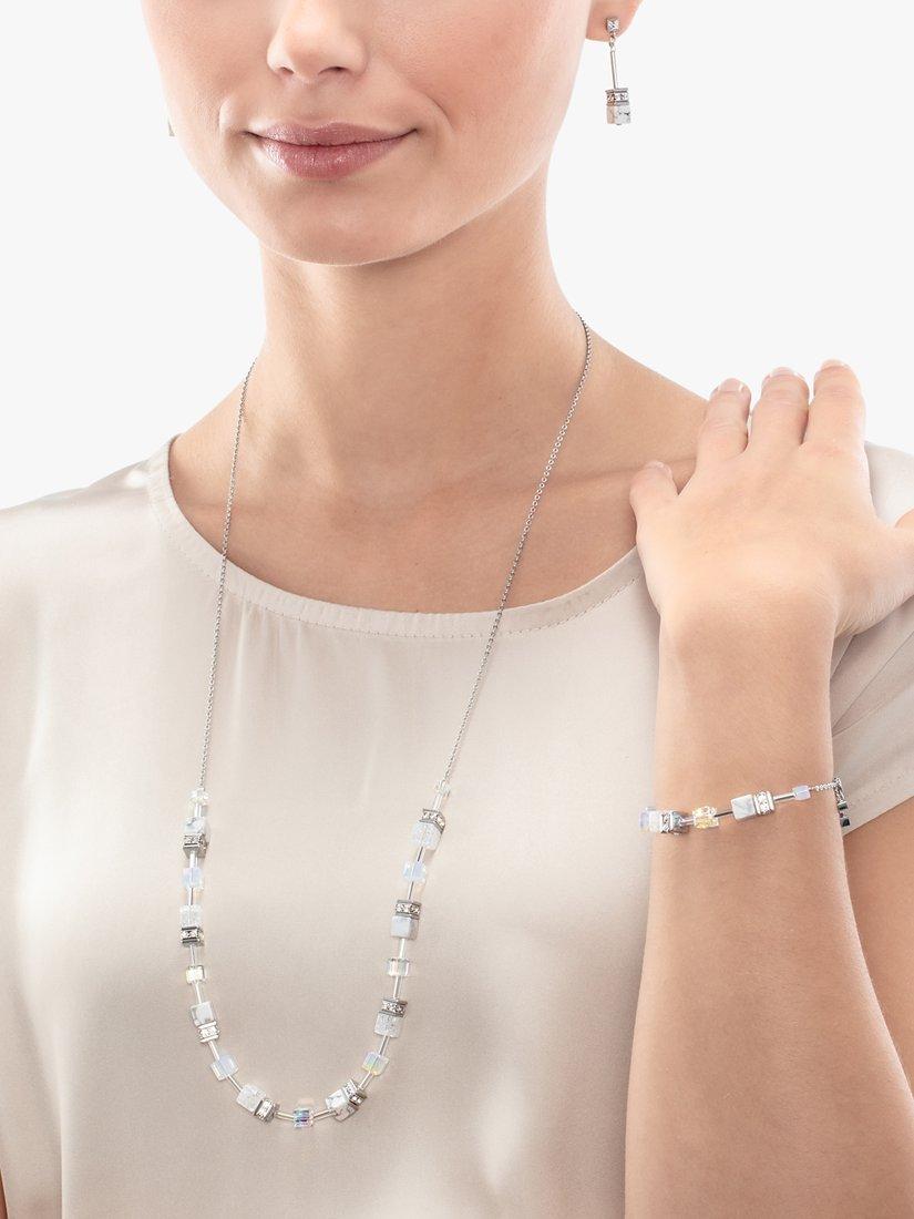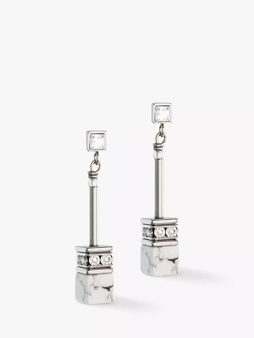 COEUR DE LIONCrystal and Howlite Drop Earrings, Silver/White