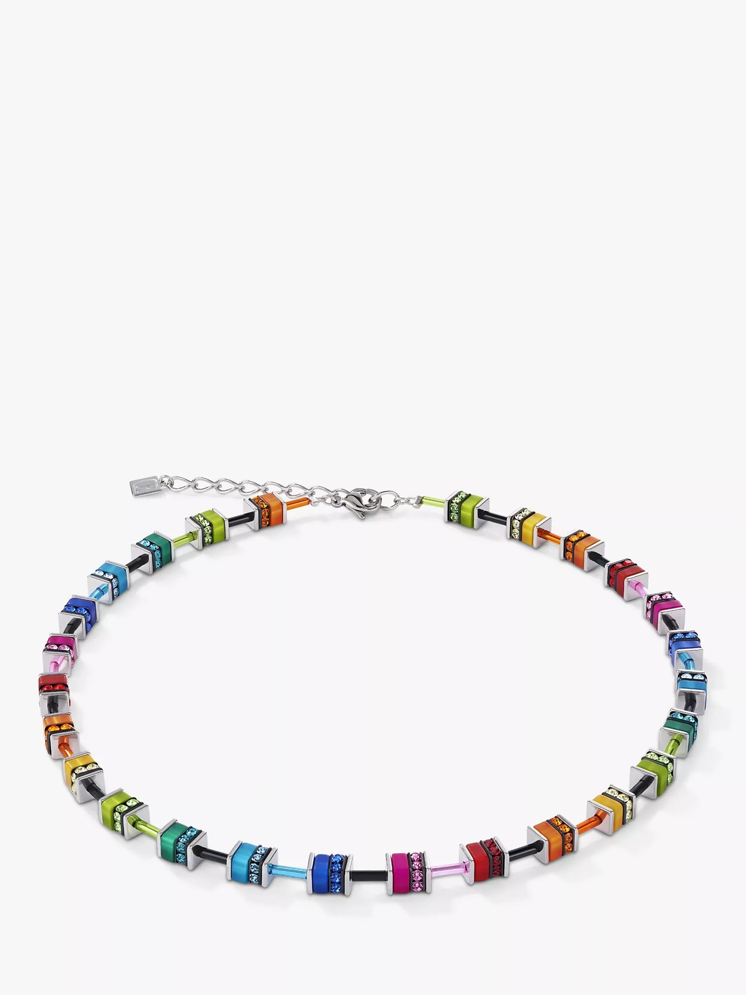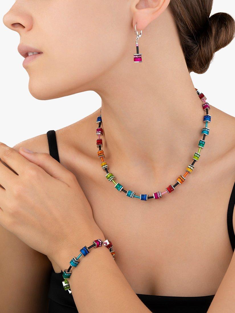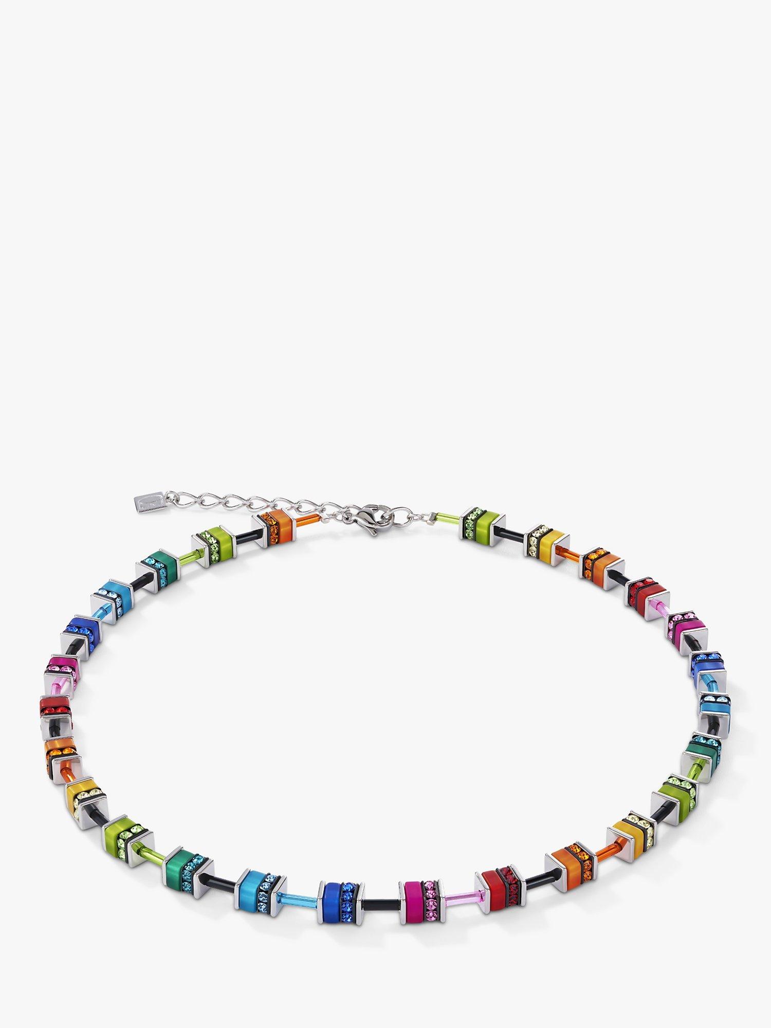 Decorating your décolletage with colour, this cube necklace from COEUR DE LION is beaded with multi-coloured polaris and rhinestone rondelles for an easy accessories refresh.
