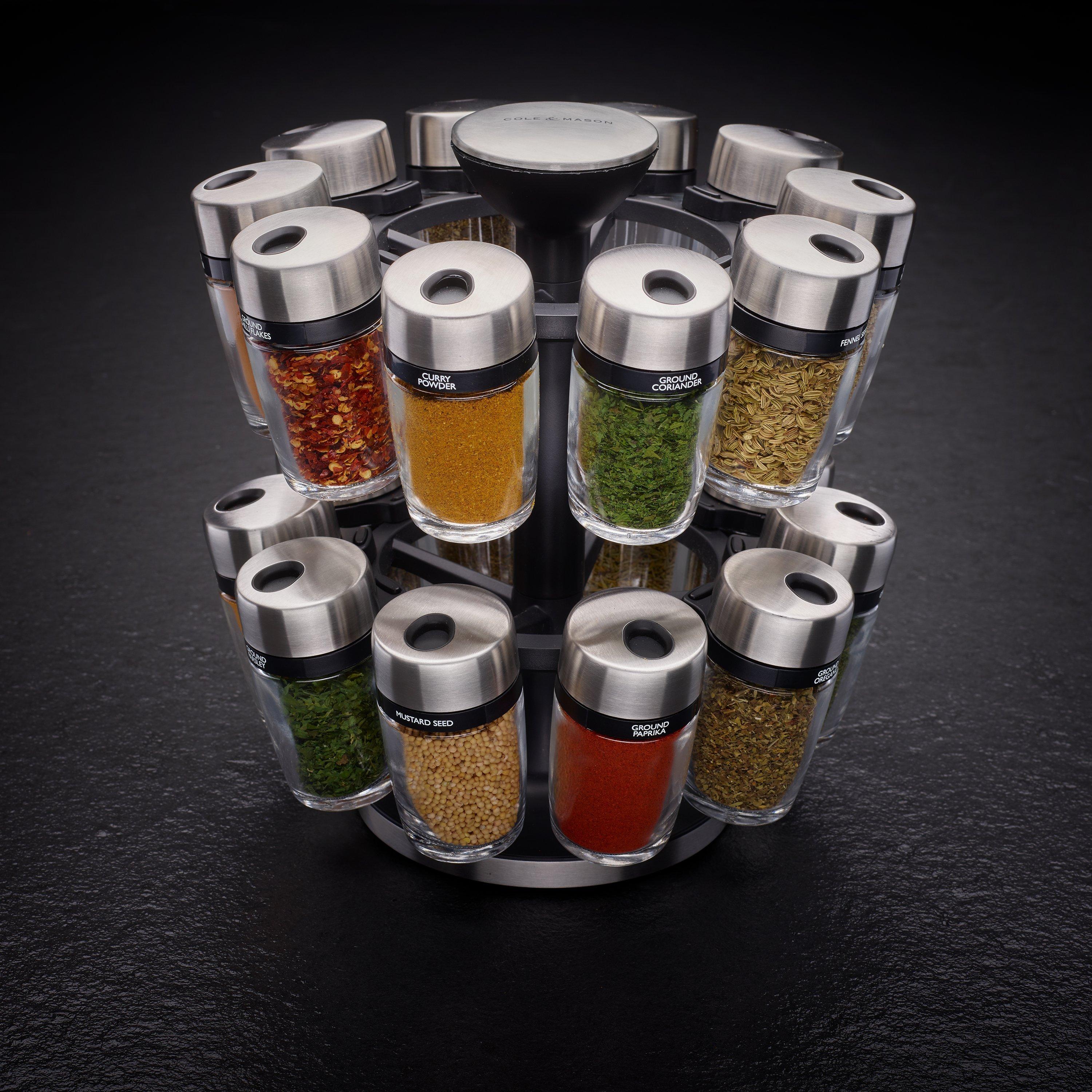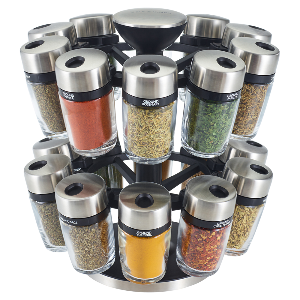 This filled spice rack from Cole & Mason allows you to efficiently combine a collection of your favourite flavours in the kitchen. The attractive glass jars are neatly suspended above the surface of the worktop for cleanliness, and it also features a handle on each side to conveniently transport it.