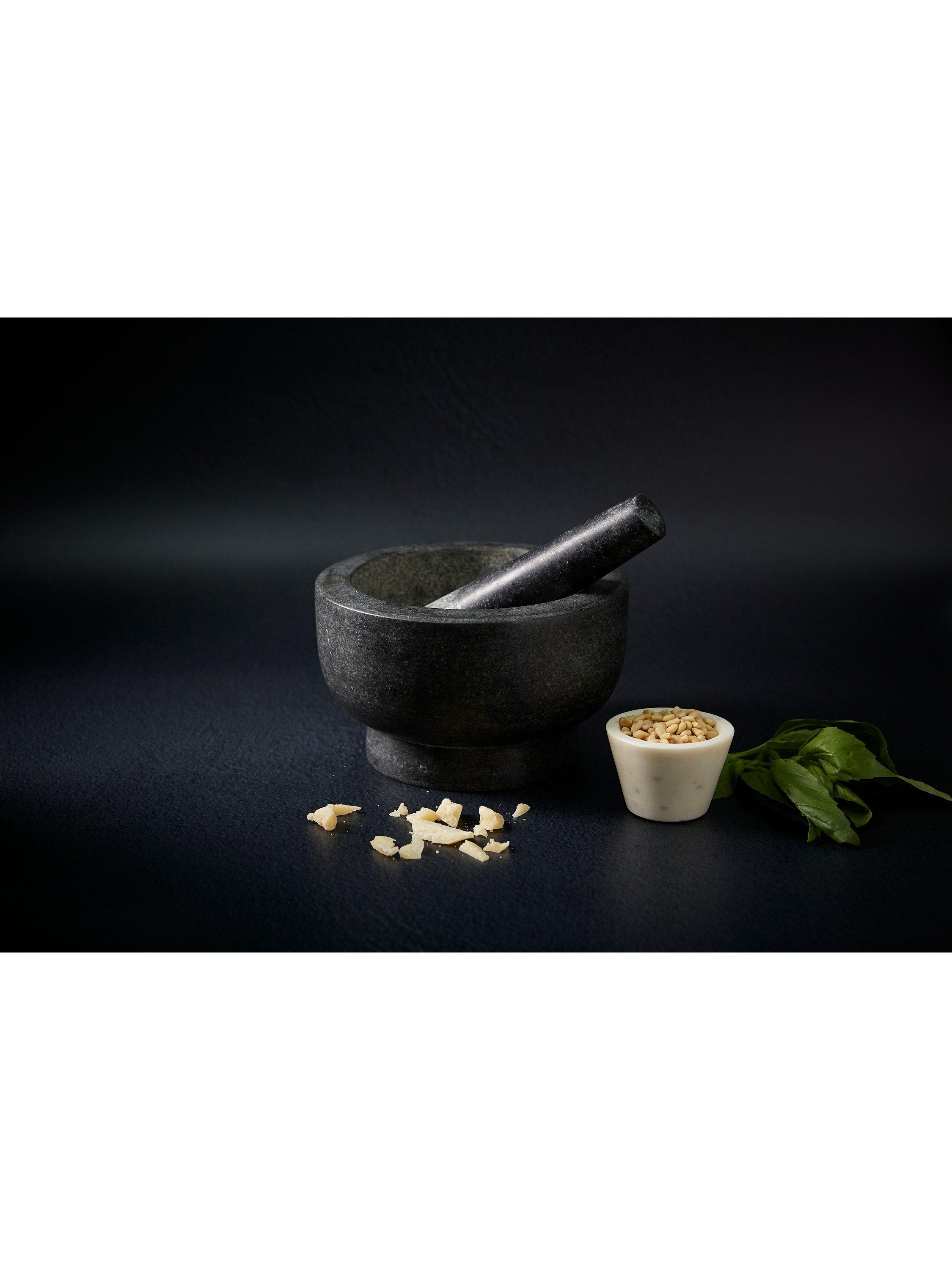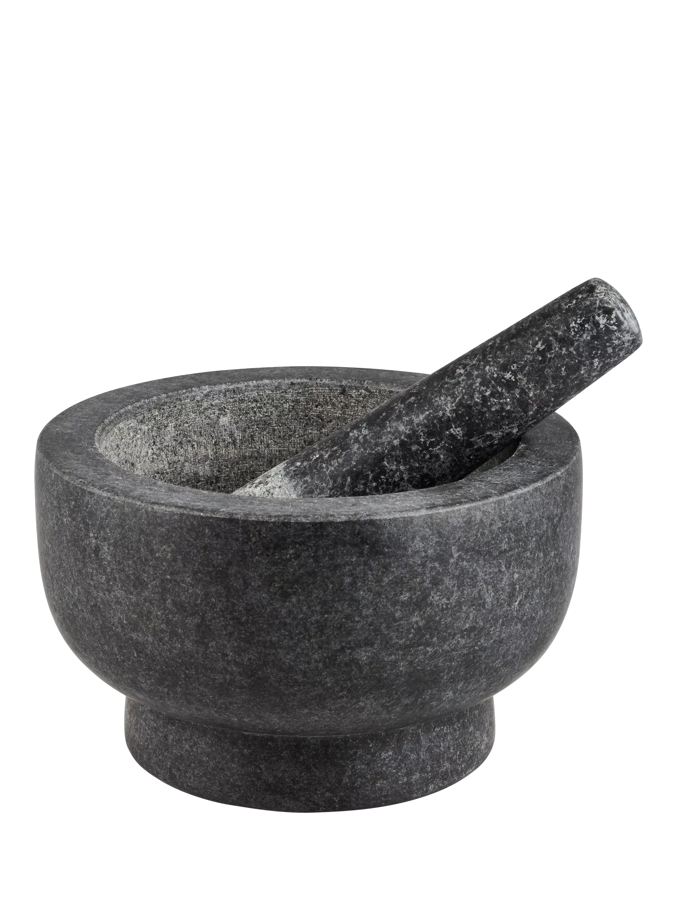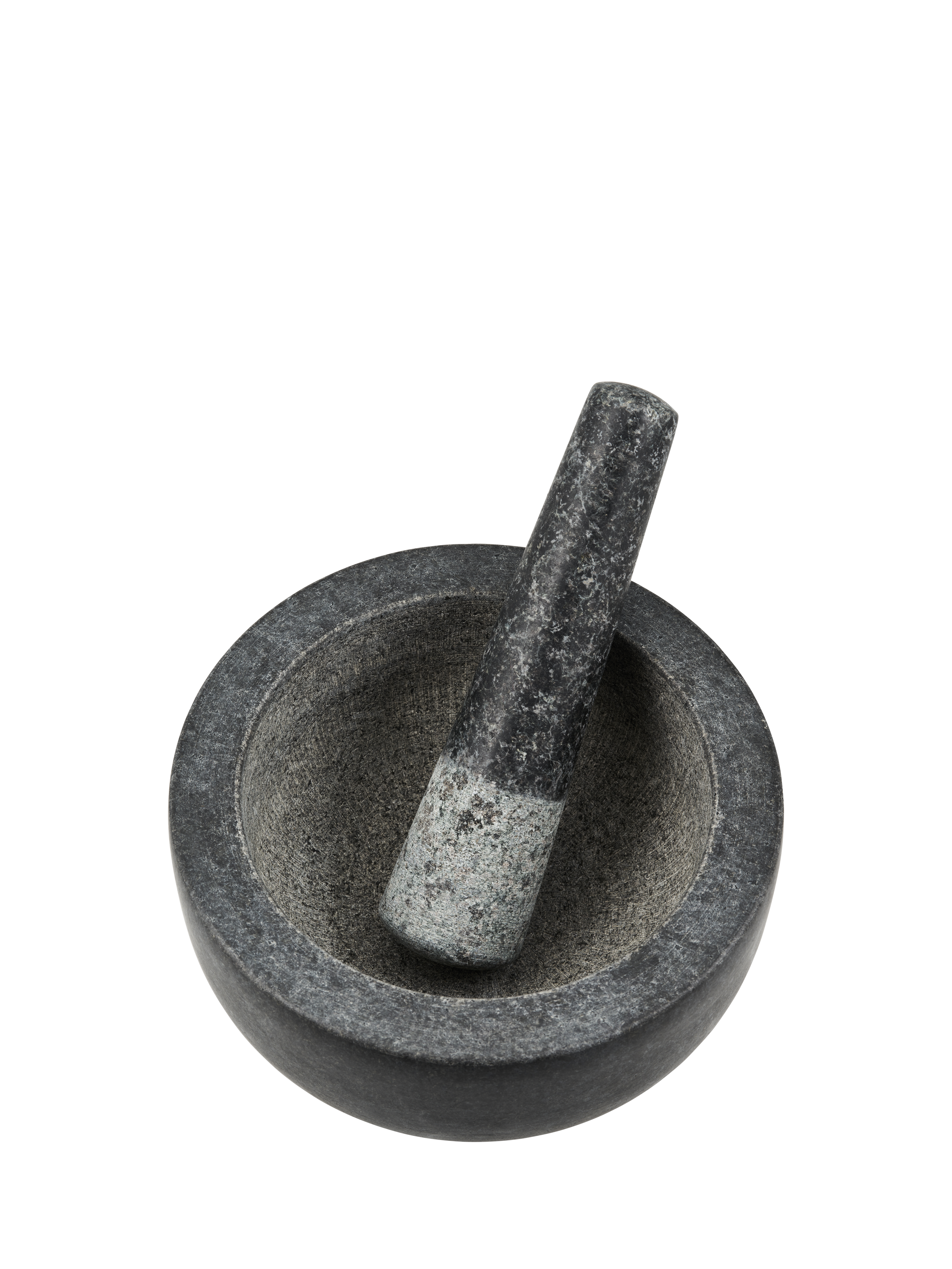 Pestle and mortar made from premium heavyweight natural granite for style and durability. Ideal for making spice rubs, pastes, dressings, sauces, marinades, dips and even drinks. The heavyweight base gives stability during use and is left unpolished on the inside to provide the ideal surface for grinding ingredients from a coarse finish to a fine powder.