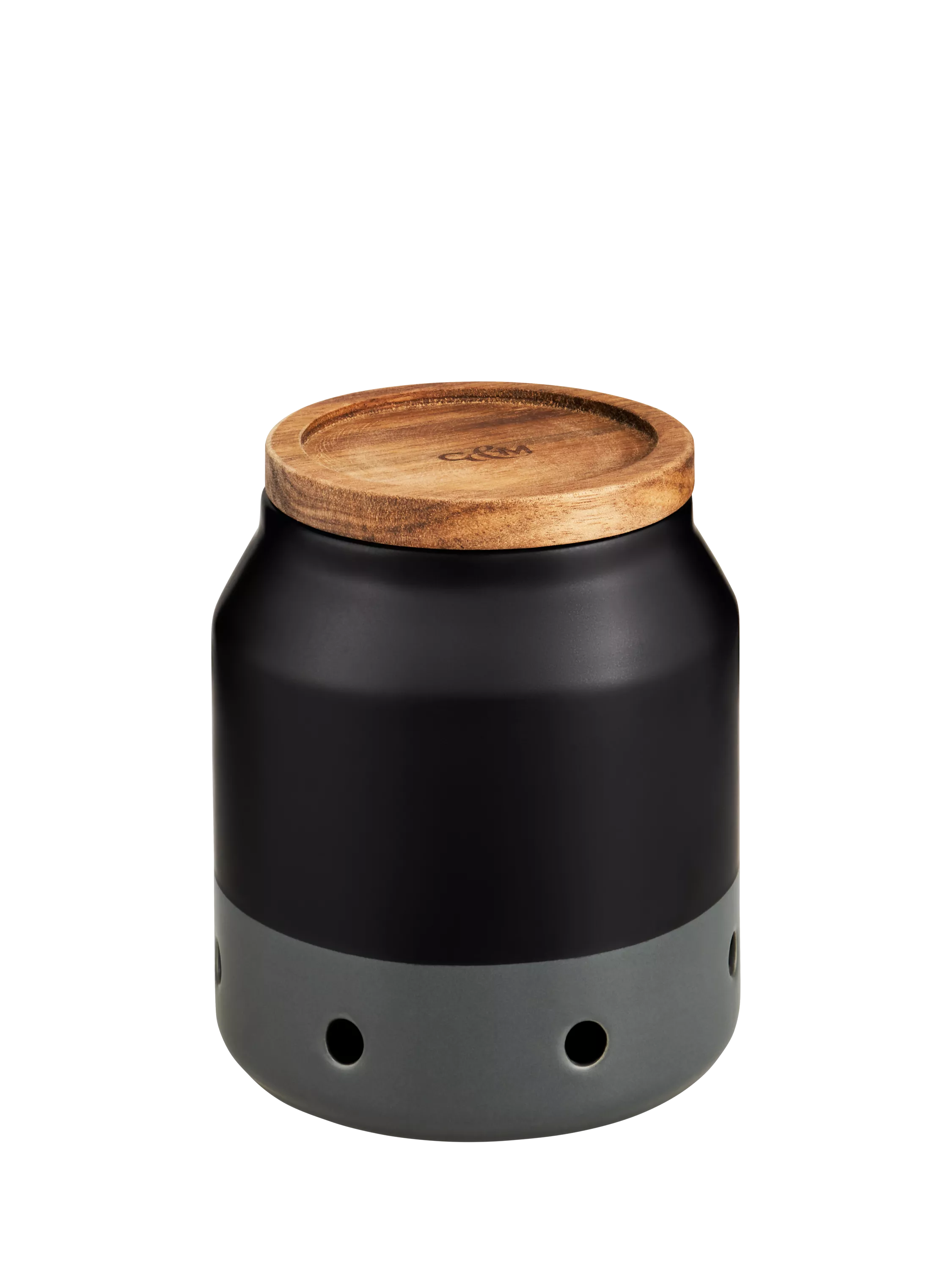 Garlic storage jar, a durable satin-glazed ceramic design in on-trend tonal colours to enhance your kitchen style. A timeless, sleek shape with minimal detailing and air holes for circulation. The acacia wood lid has a silicone seal for freshness. Keeps your garlic bulbs and cloves on hand while cooking.
