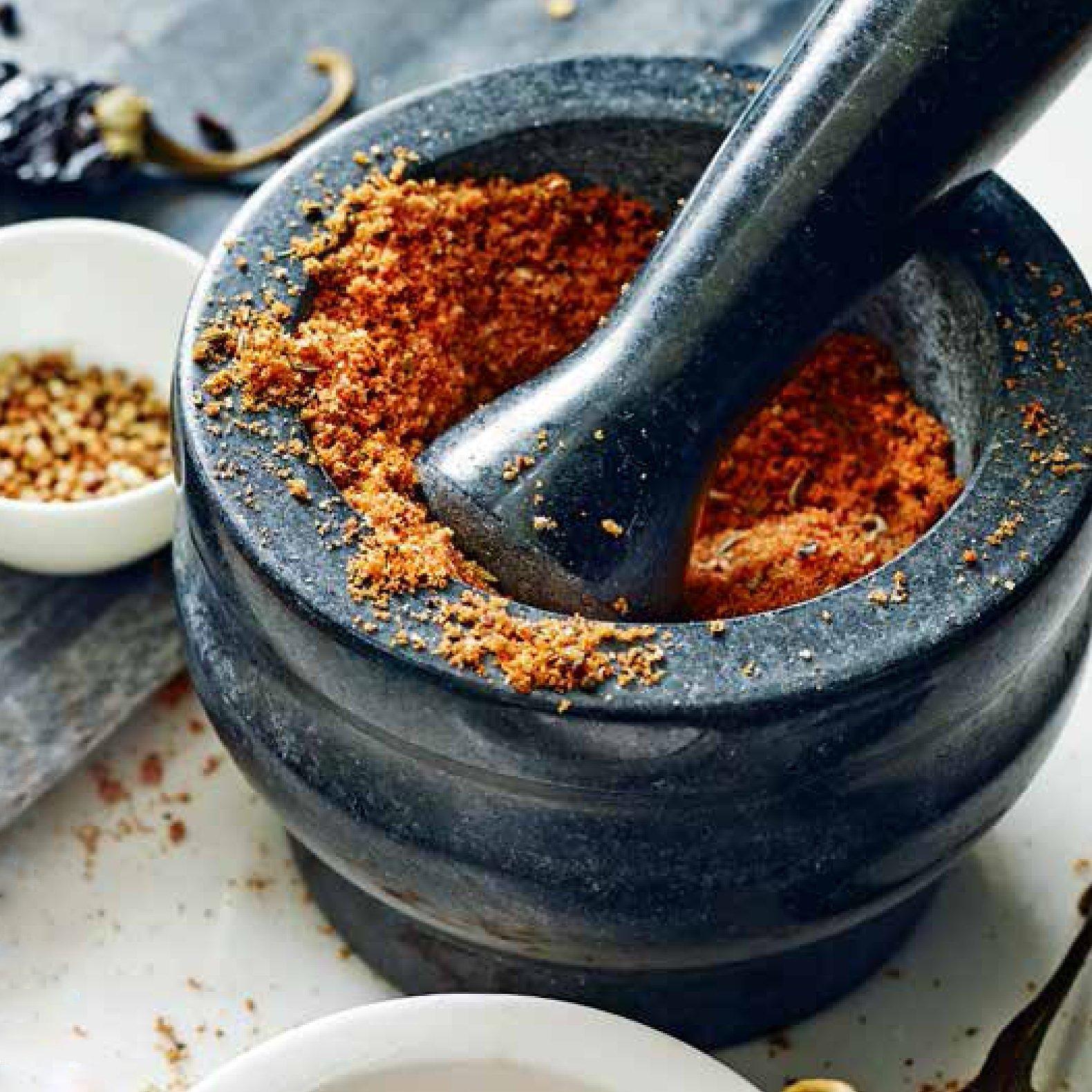 A high quality granite Pestle and Mortar from Cole & Mason, designed to maximise the surface contact between the two elements, improving the grinding and pounding performance of herbs and spices.