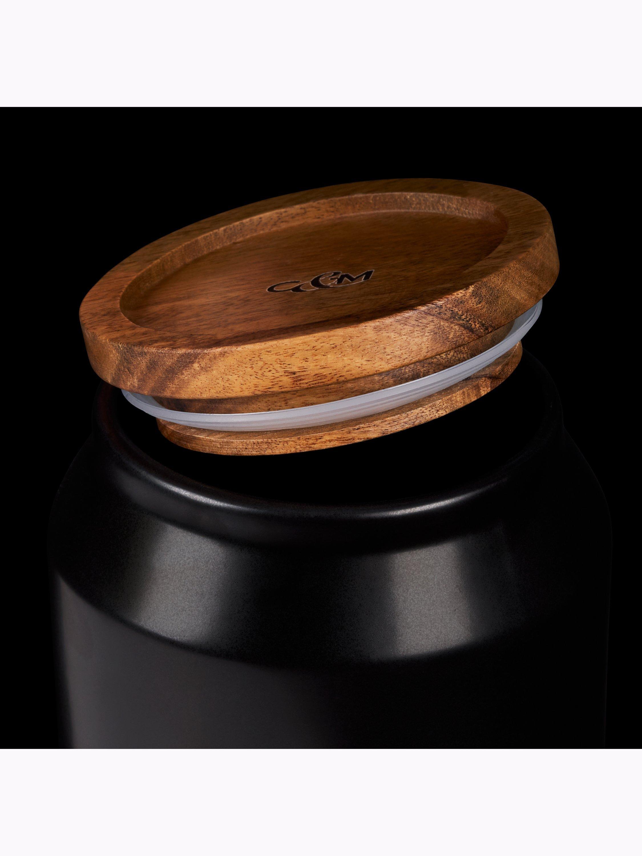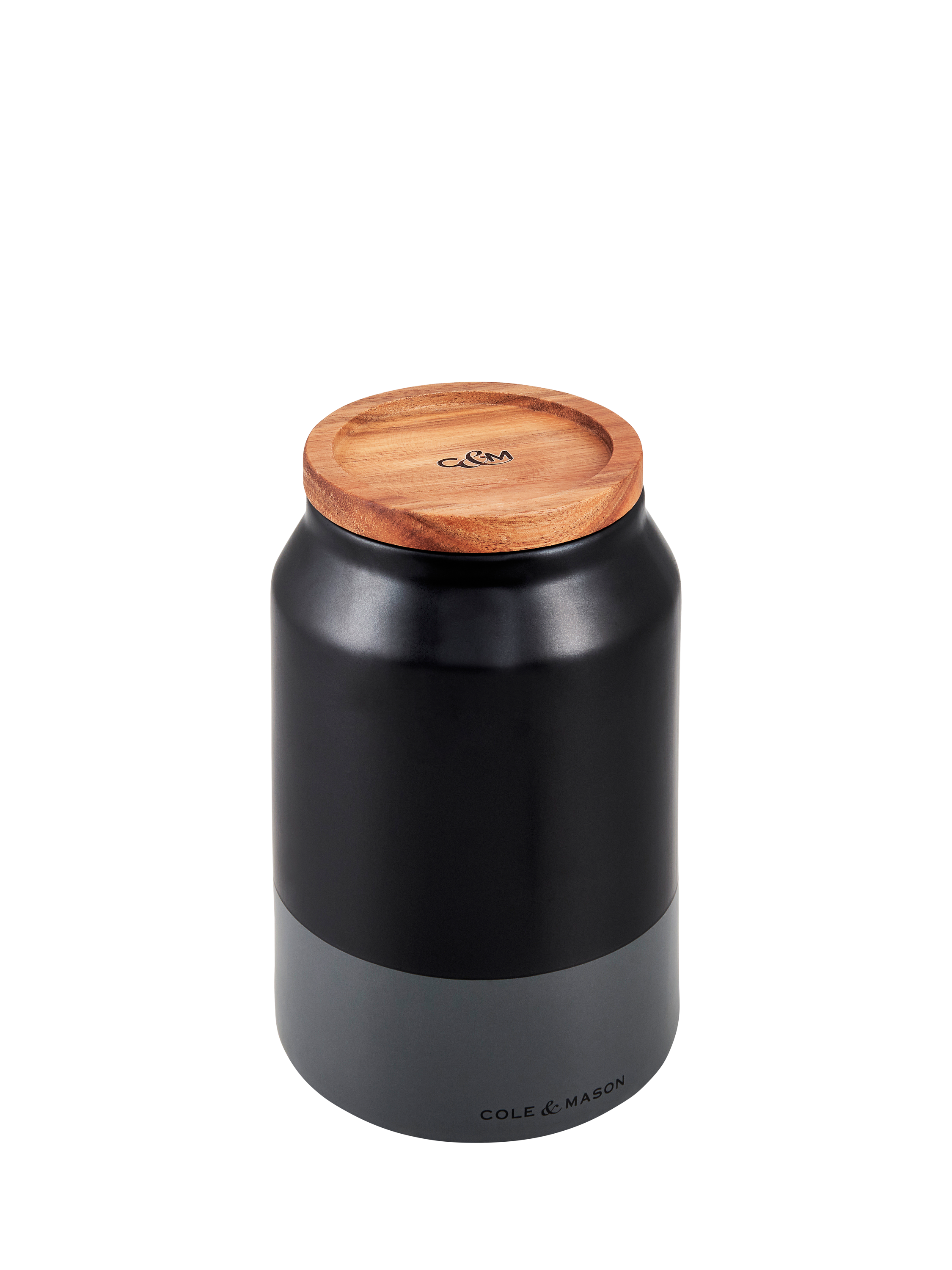 Durable satin-glazed ceramic storage jar in on-trend tonal colours to enhance your kitchen style. A timeless, sleek shape with minimal detailing. The acacia wood lid has a silicone seal for airtight freshness. Stackable design for compact storage.