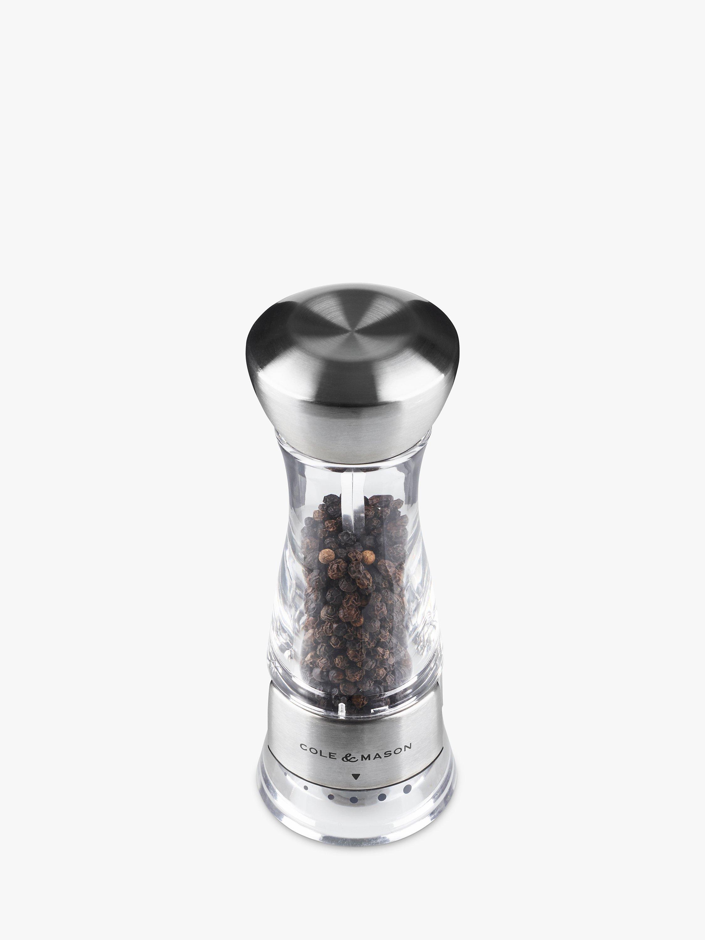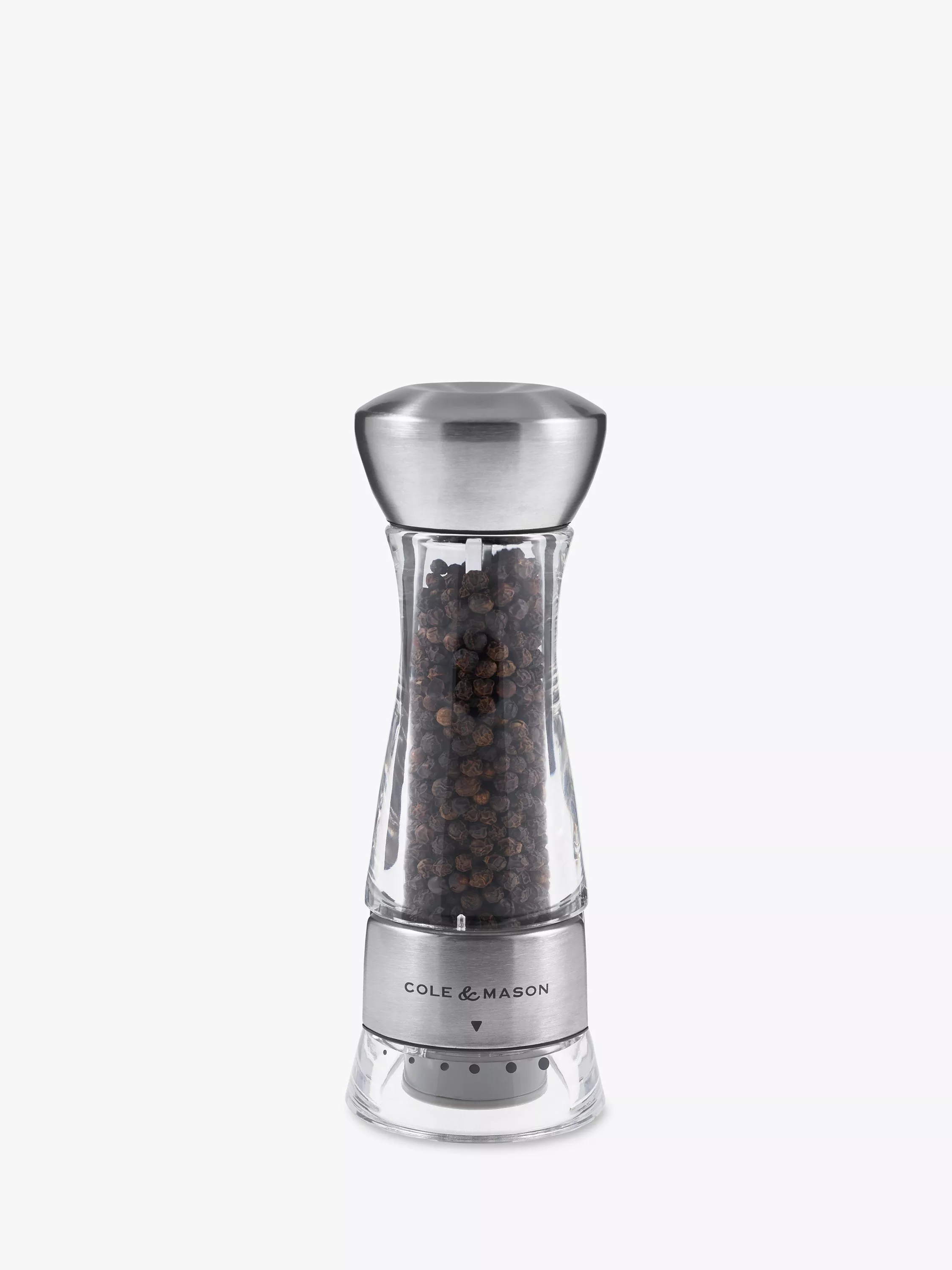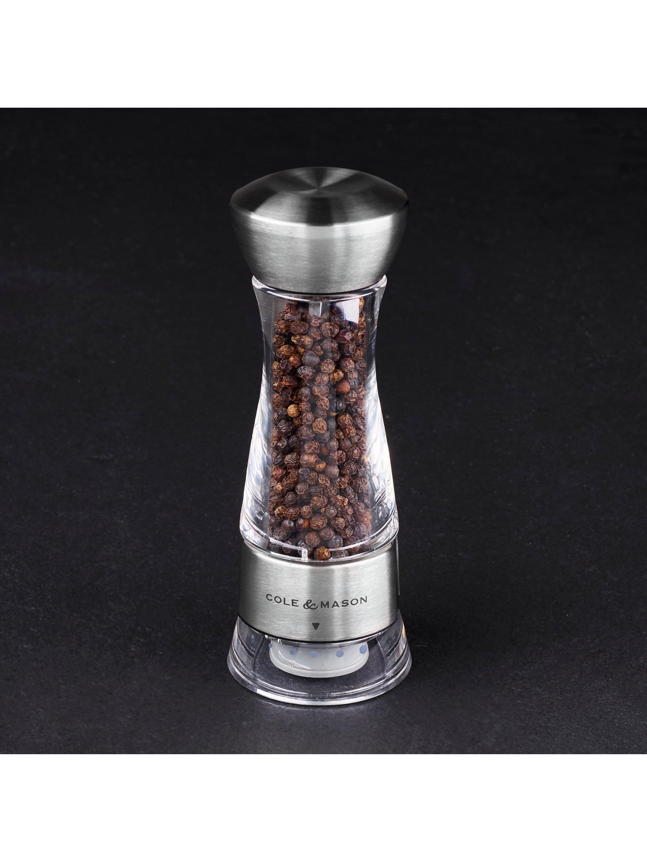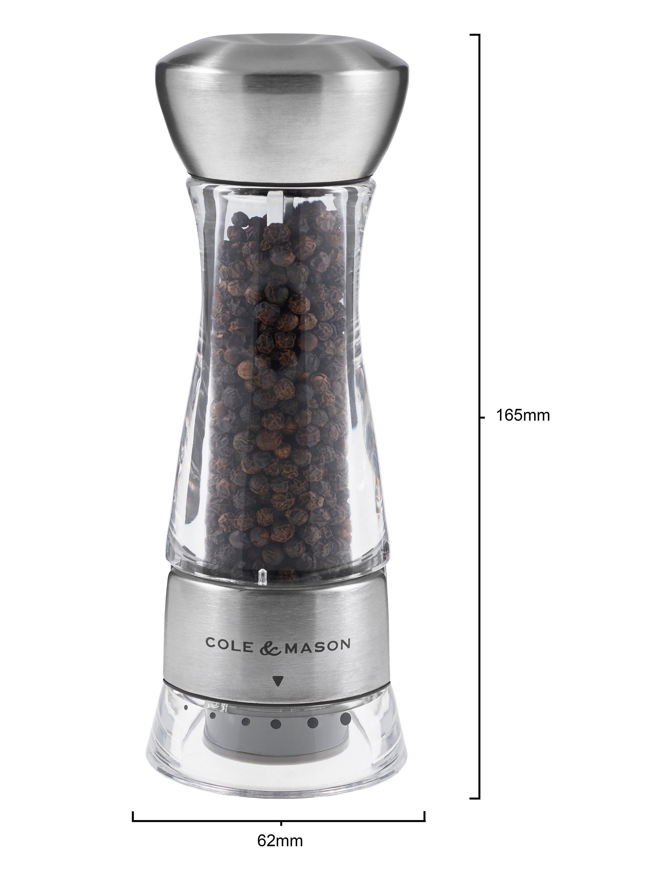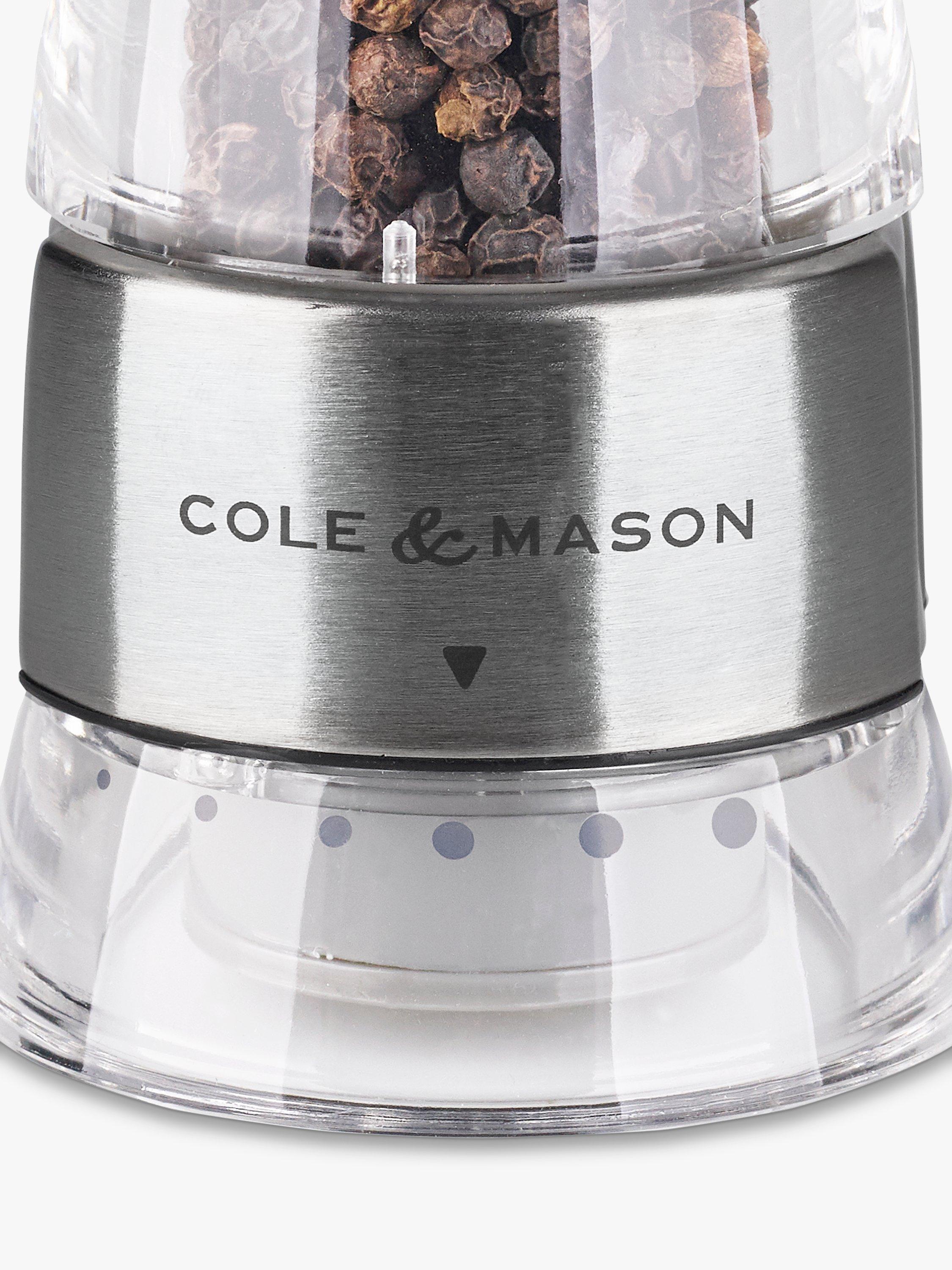 The Precision Windermere Salt Mill from Cole & Mason combines a stainless steel and acrylic body with a durable machine-cut hardened carbon steel grind mechanism.