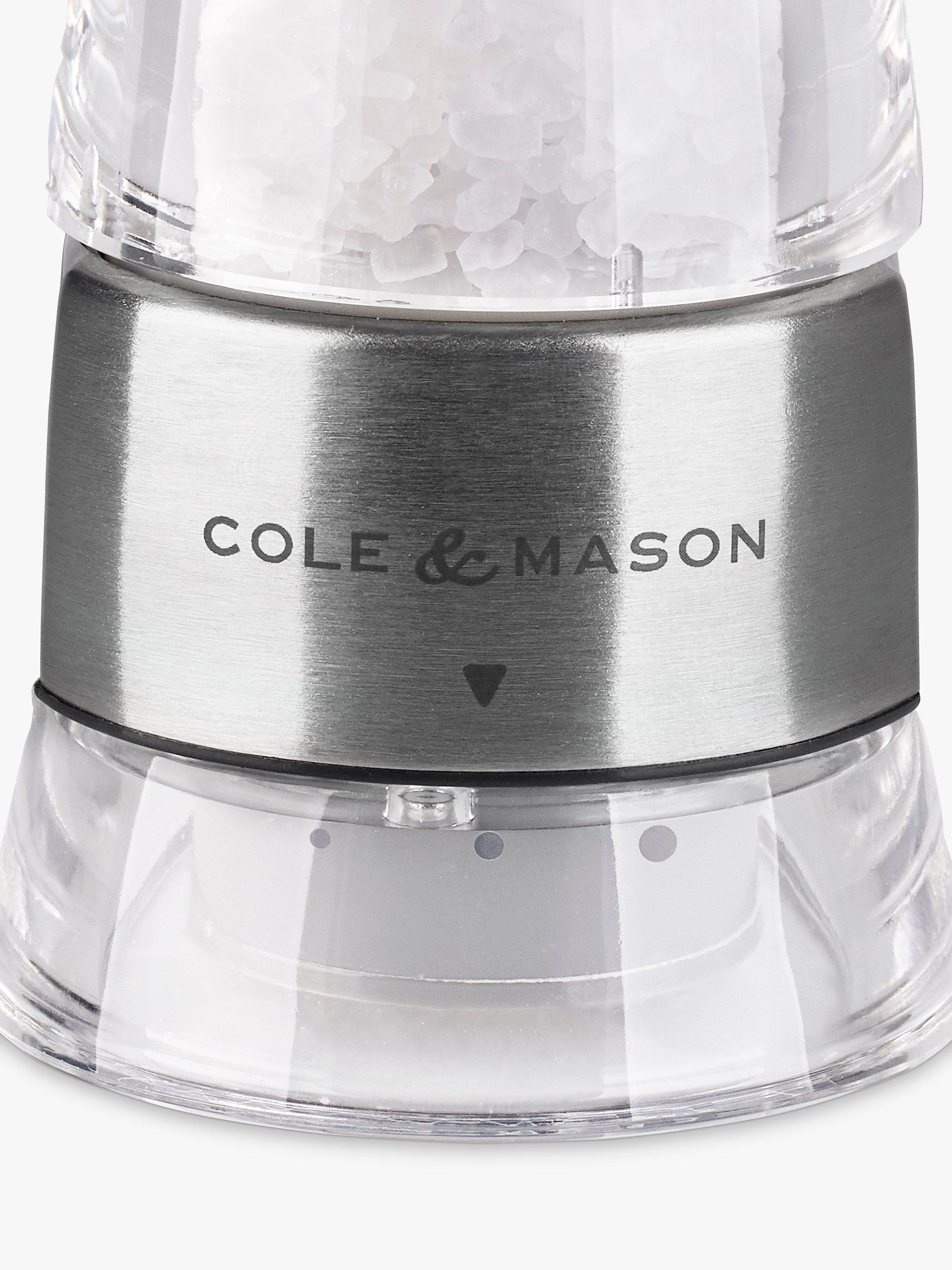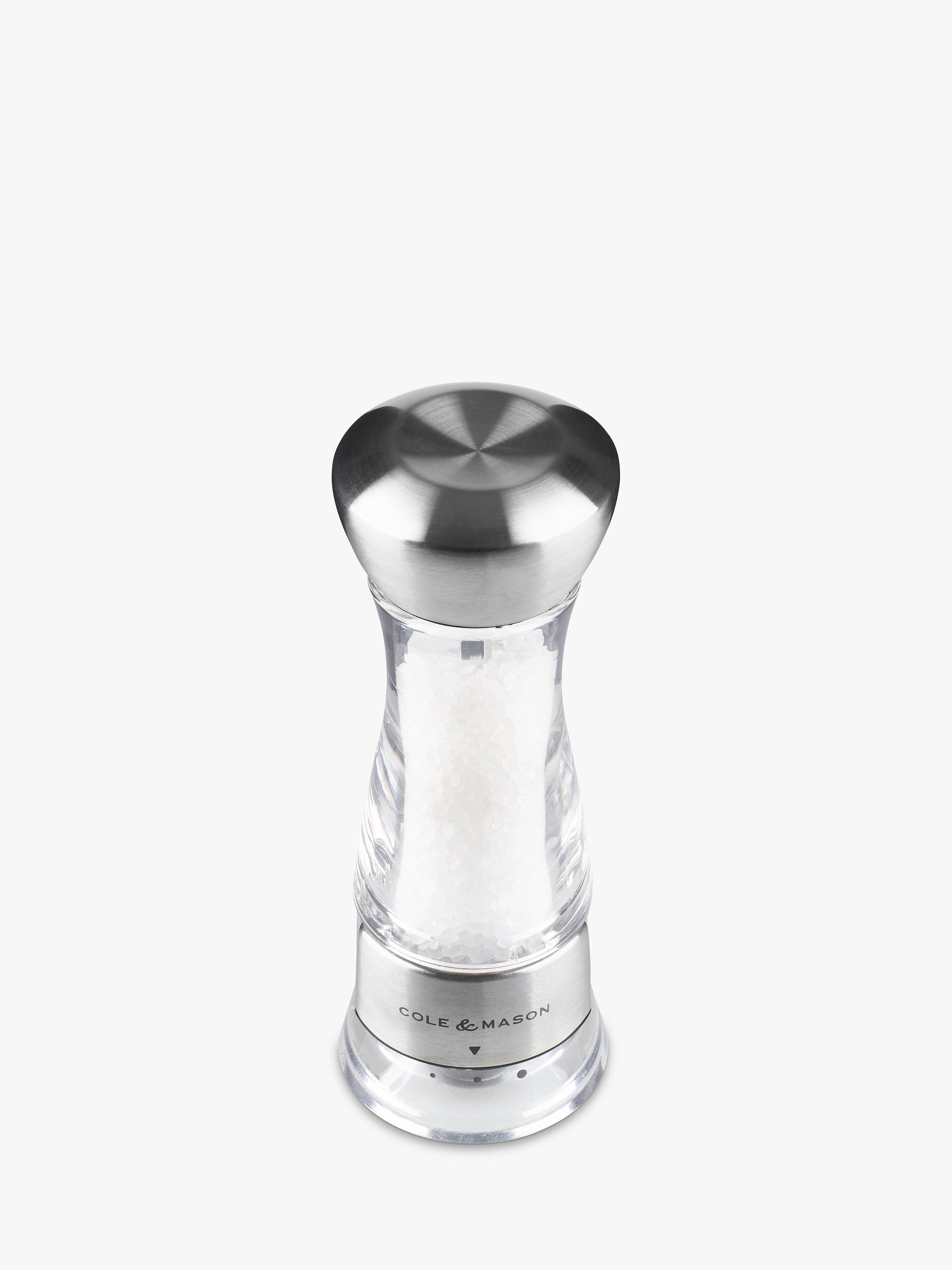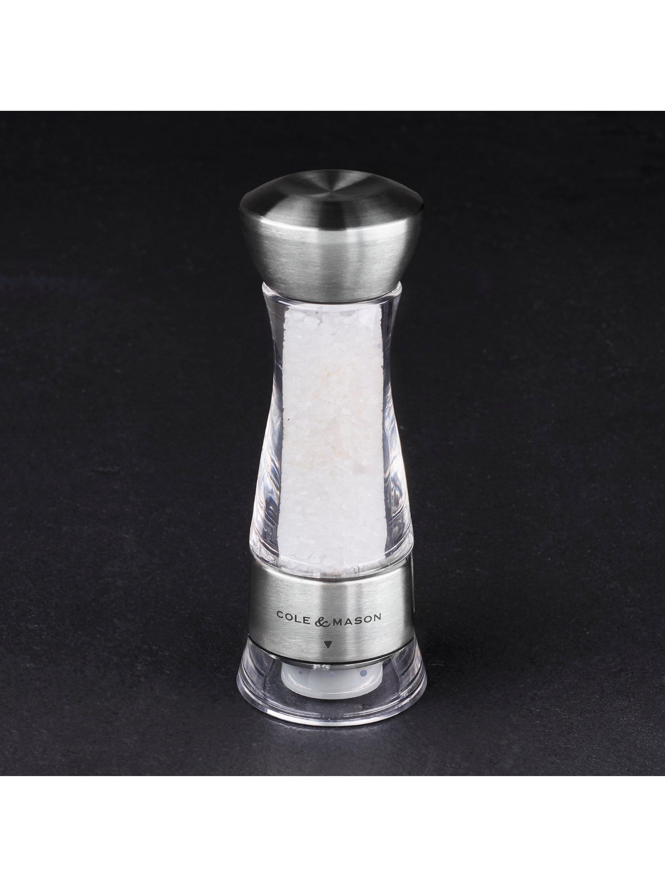 The Precision Windermere Salt Mill from Cole & Mason combines a stainless steel and acrylic body with a durable diamond-sharp ceramic grind mechanism.
