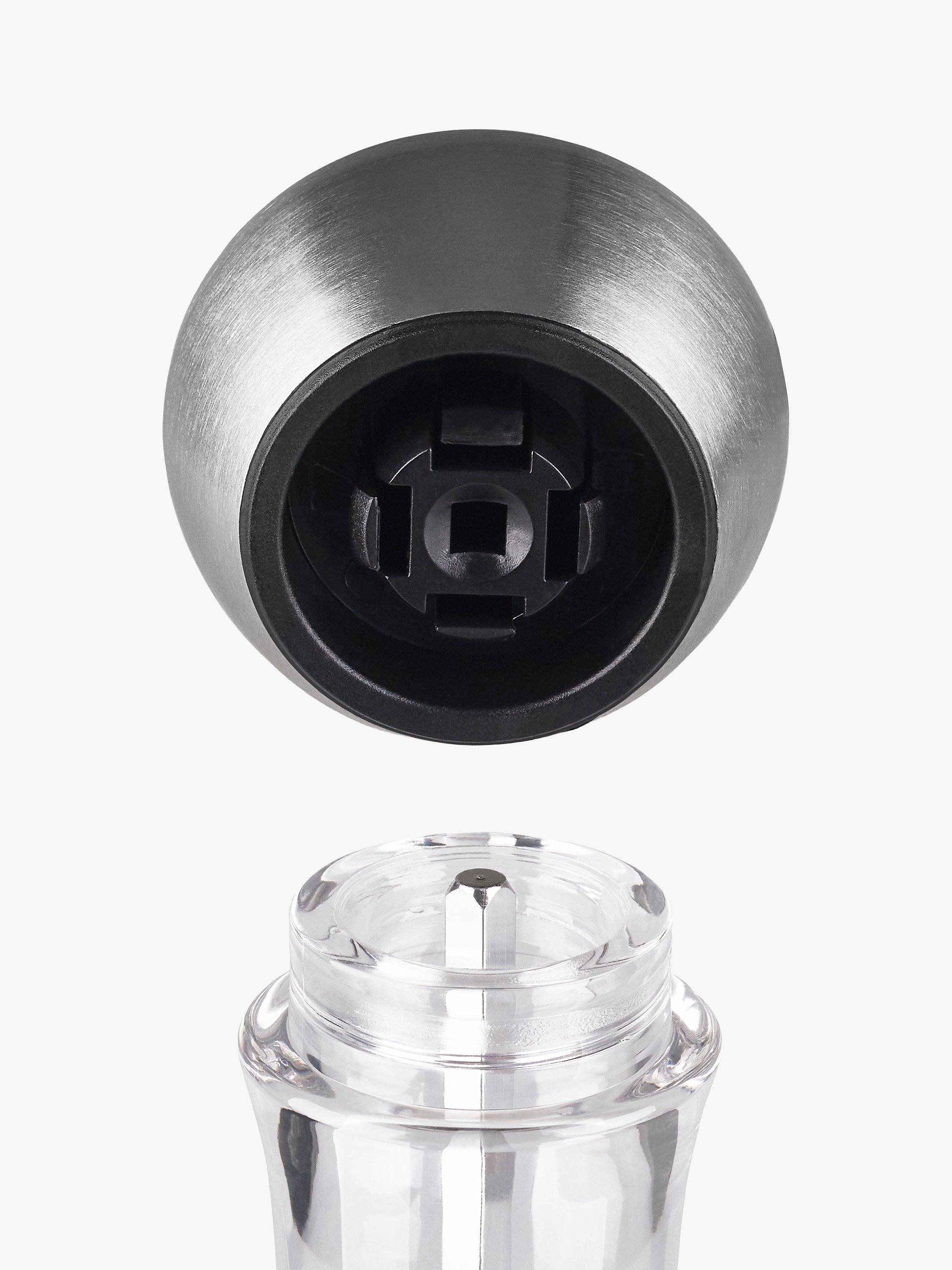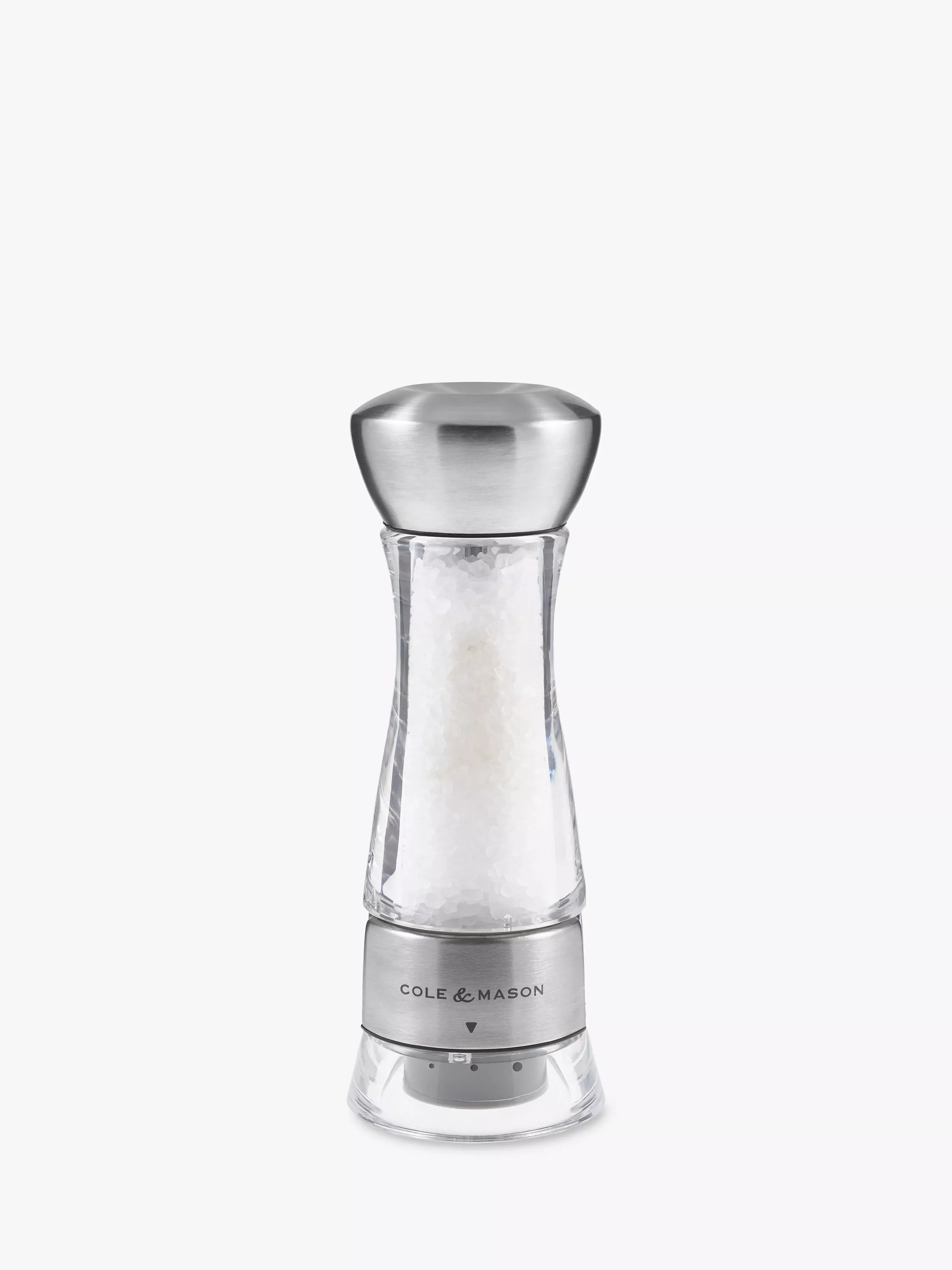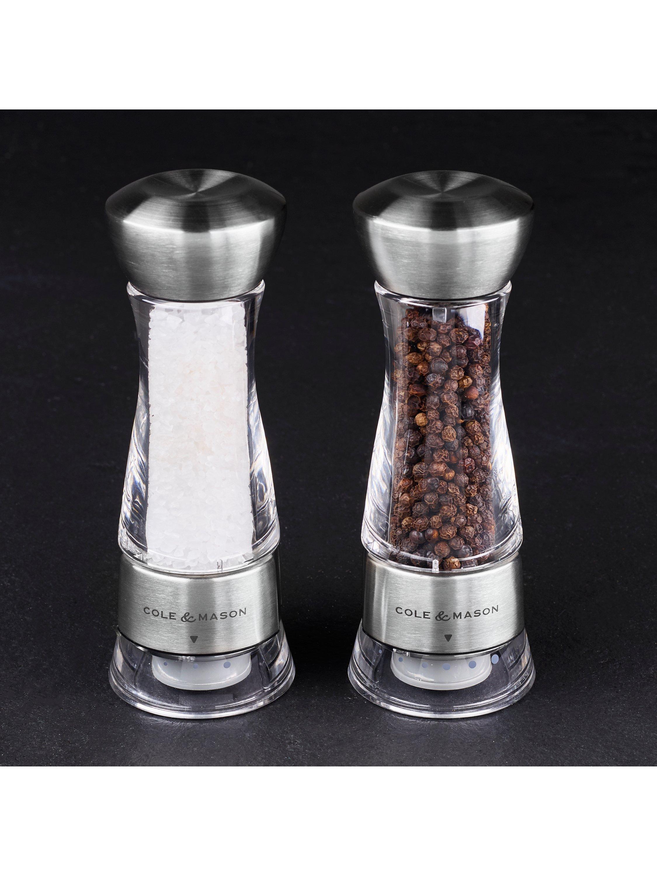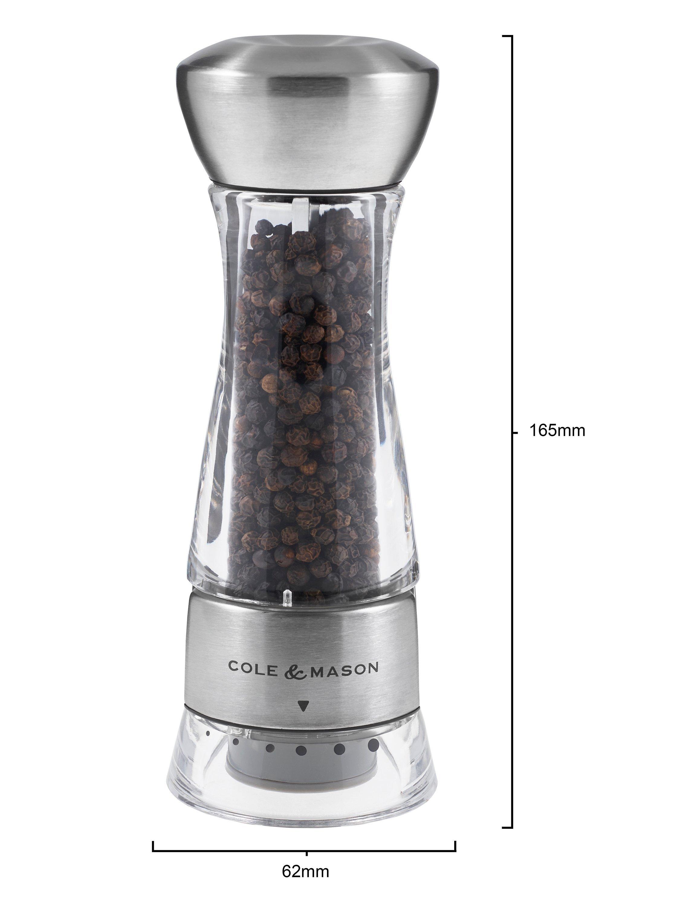 The Precision Windermere Salt Mill from Cole & Mason combines a stainless steel and acrylic body with a durable diamond-sharp ceramic grind mechanism.