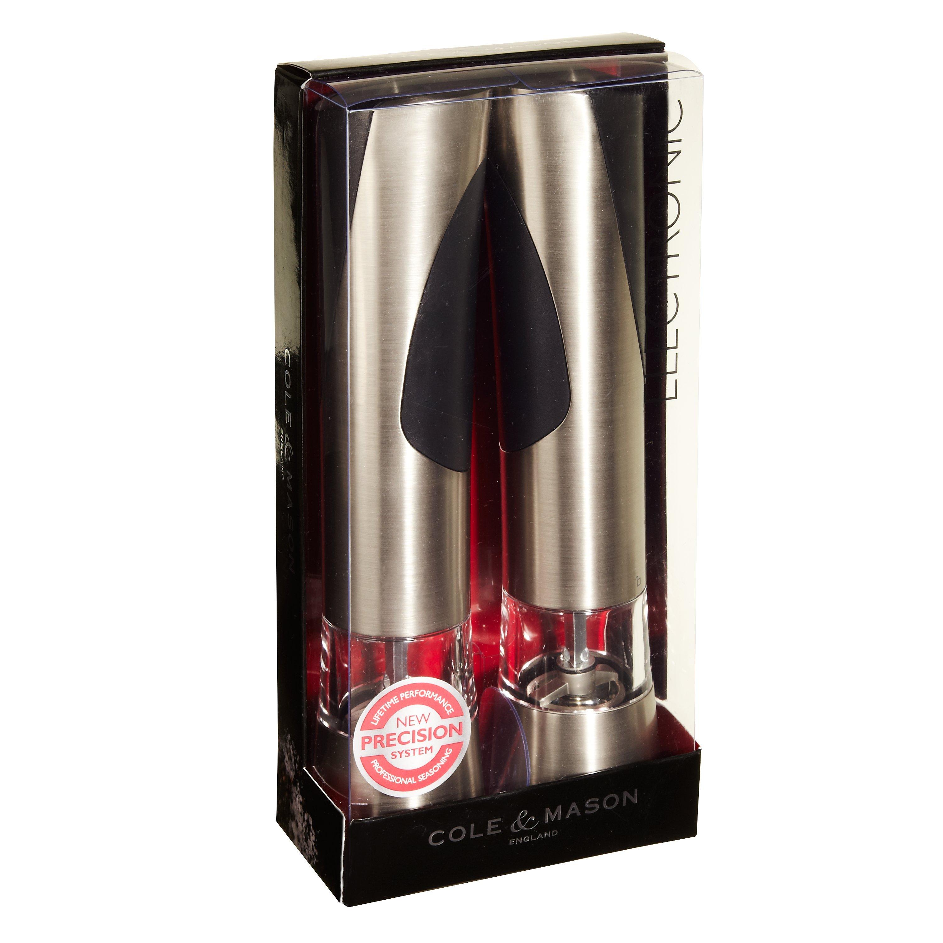 A sleek one-handed operation at a touch of a button grinds salt and pepper effortlessly. Ideal for quick use when cooking or on the table to impress guests. The Richmond Electronic mills feature a hardened carbon steel mechanism for pepper and diamond sharp ceramic mechanism for salt and come with a lifetime guarantee, presented in a gift box. The Cole & Mason Precision mechanism does not crush peppercorns but strips them to release the maximum amount of flavour with each grind.