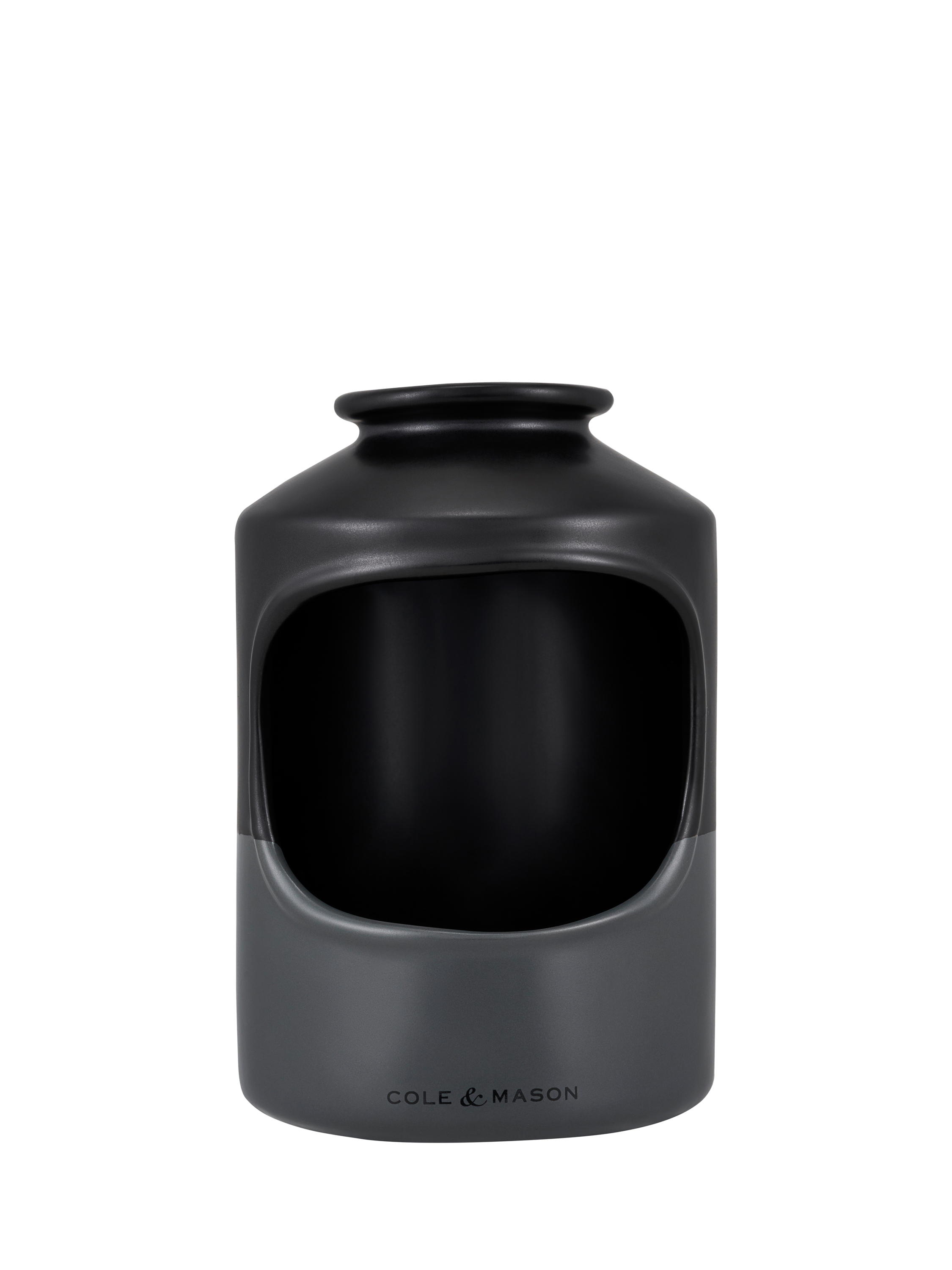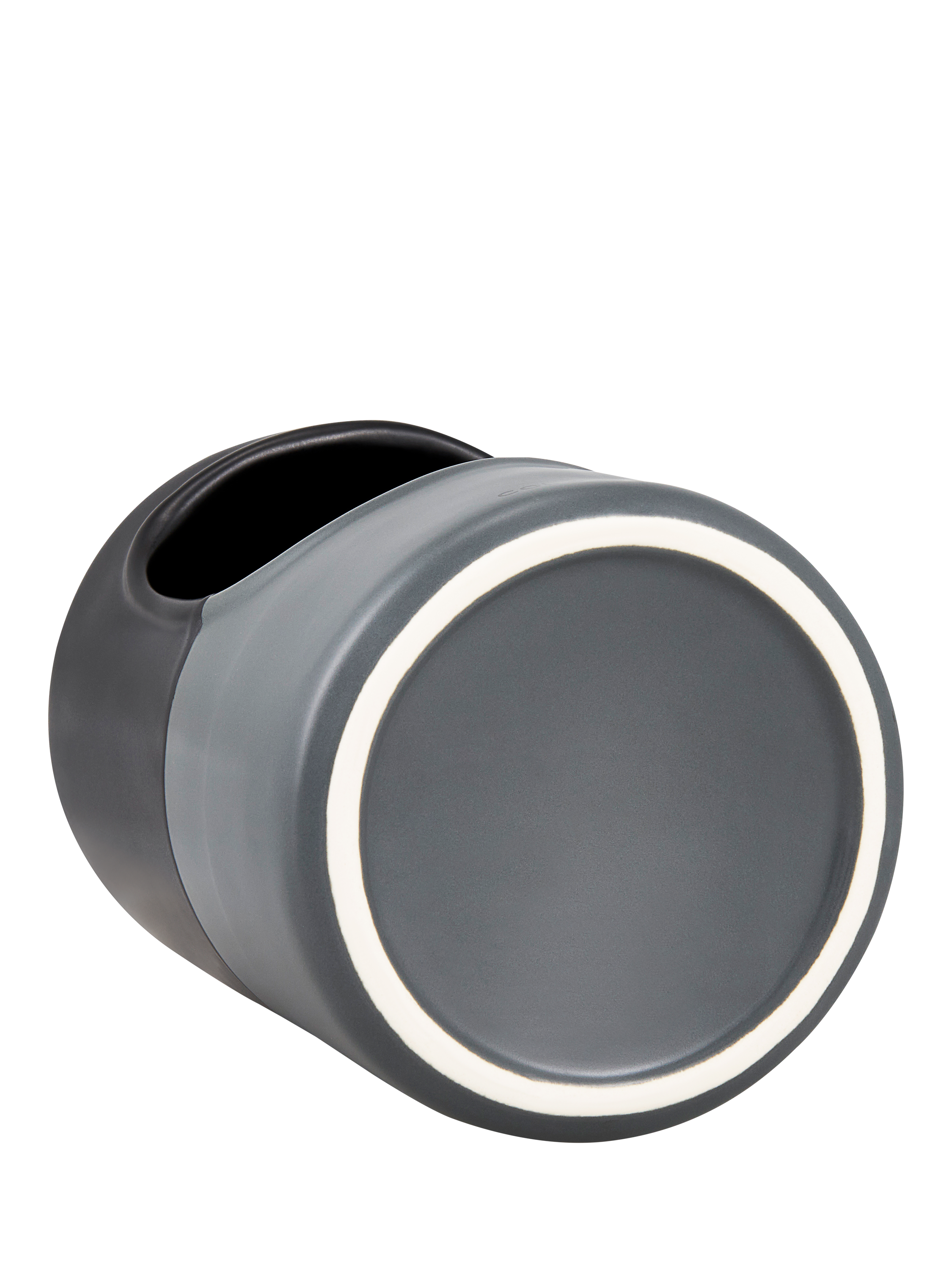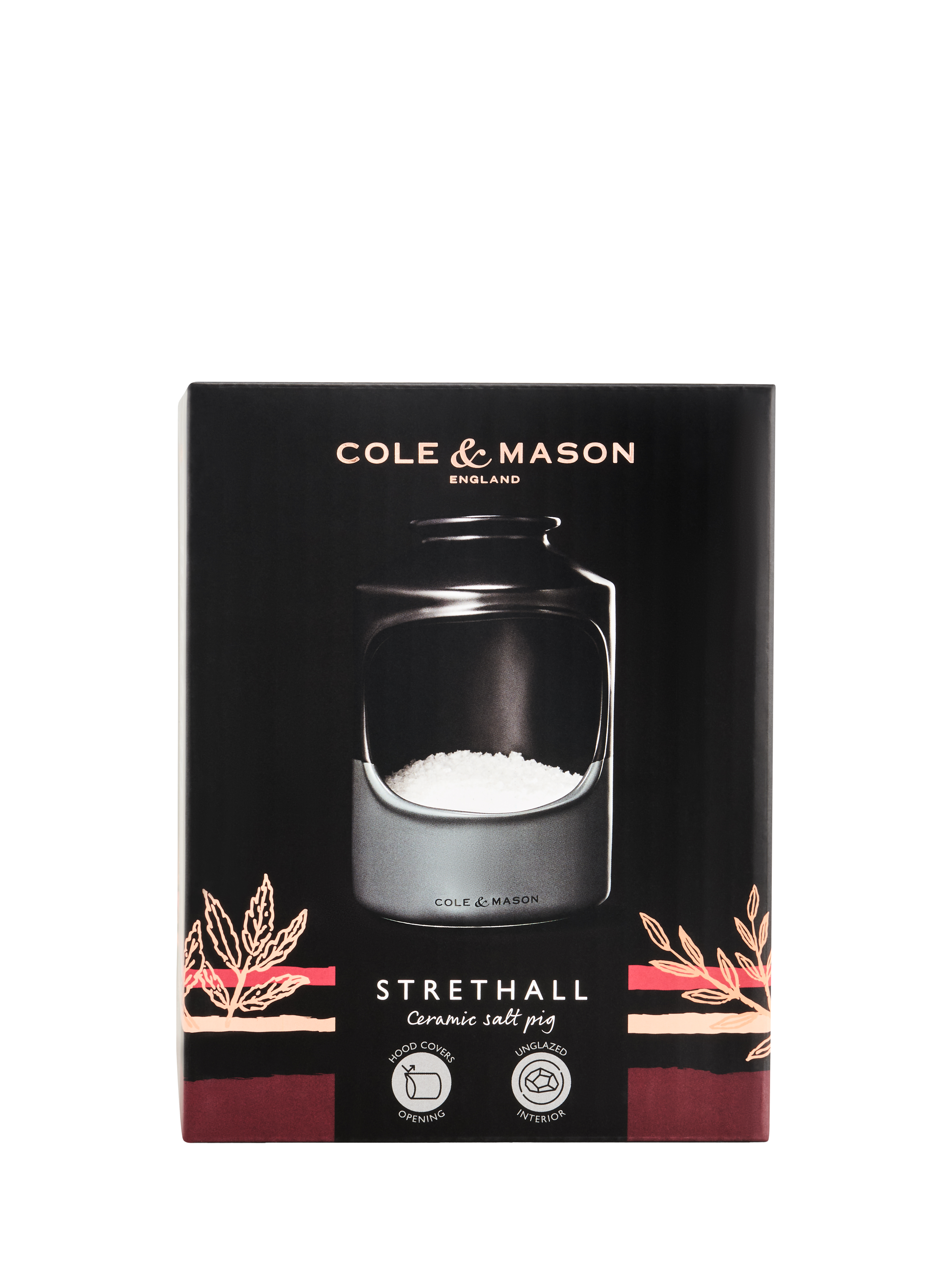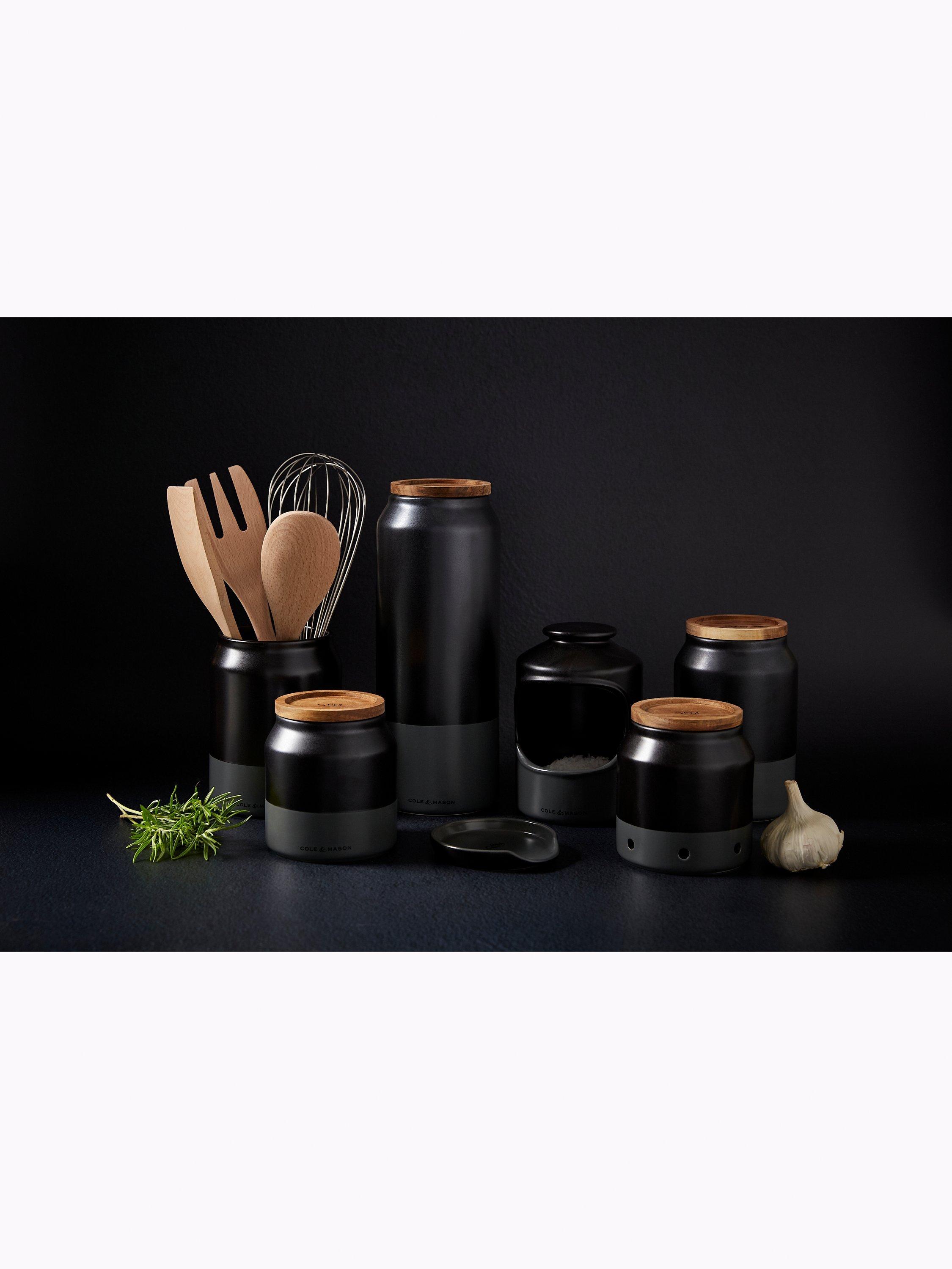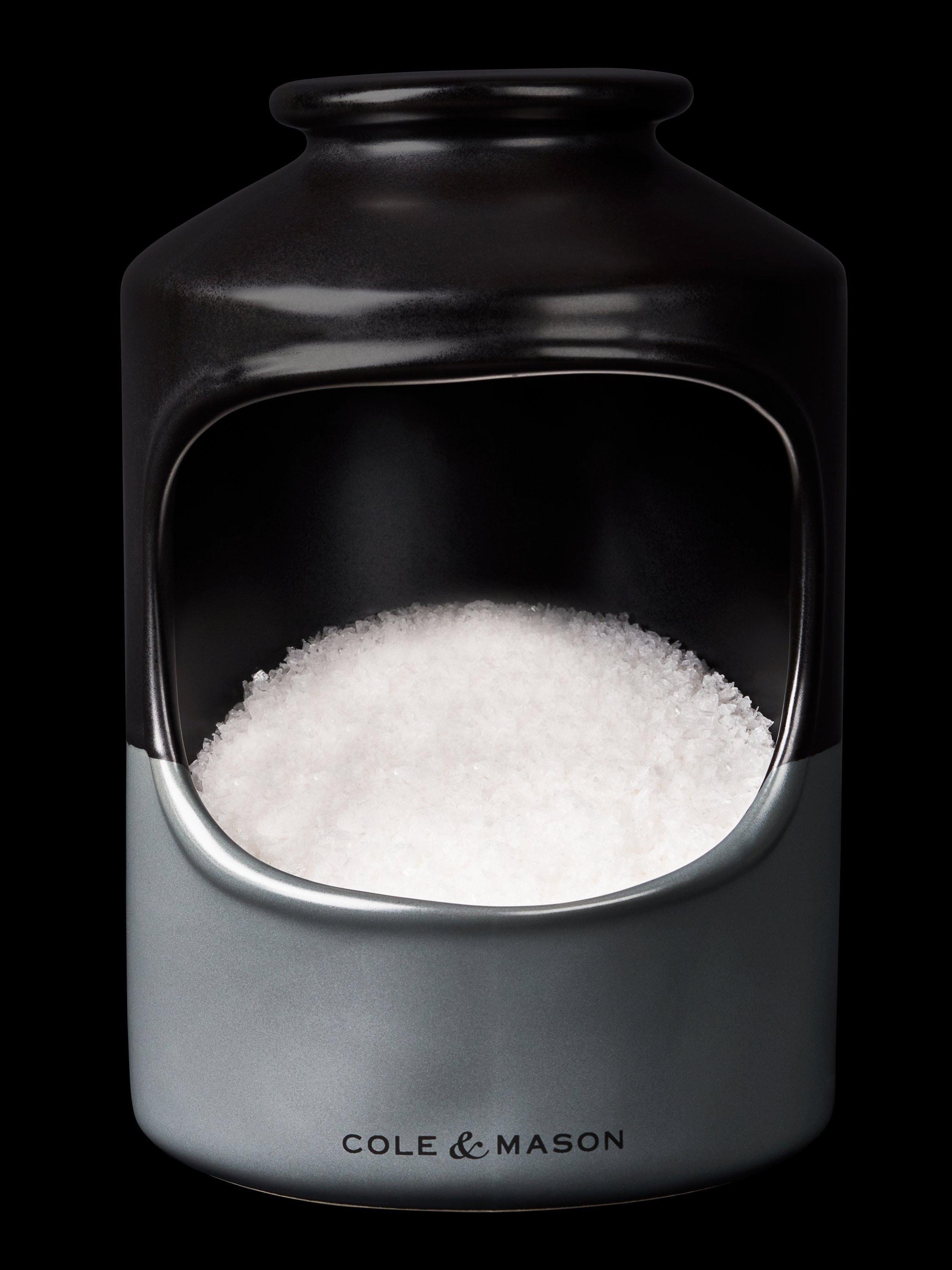 Durable satin-glazed ceramic salt pig in on-trend tonal colours to enhance your kitchen style. A timeless, sleek shape with minimal detailing. The wide open front gives you easy accessibility, and the roofed design ensures dust protection. The unglazed interior draws moisture from salt. Use the handy top knob for carrying.