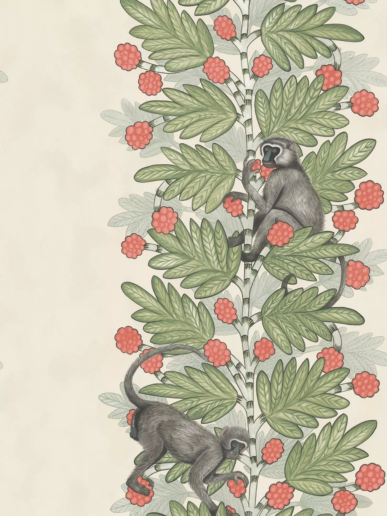 A beautiful print of monkeys sitting in an acacia tree. The design is placed off-centre for a stunning, statement look.
