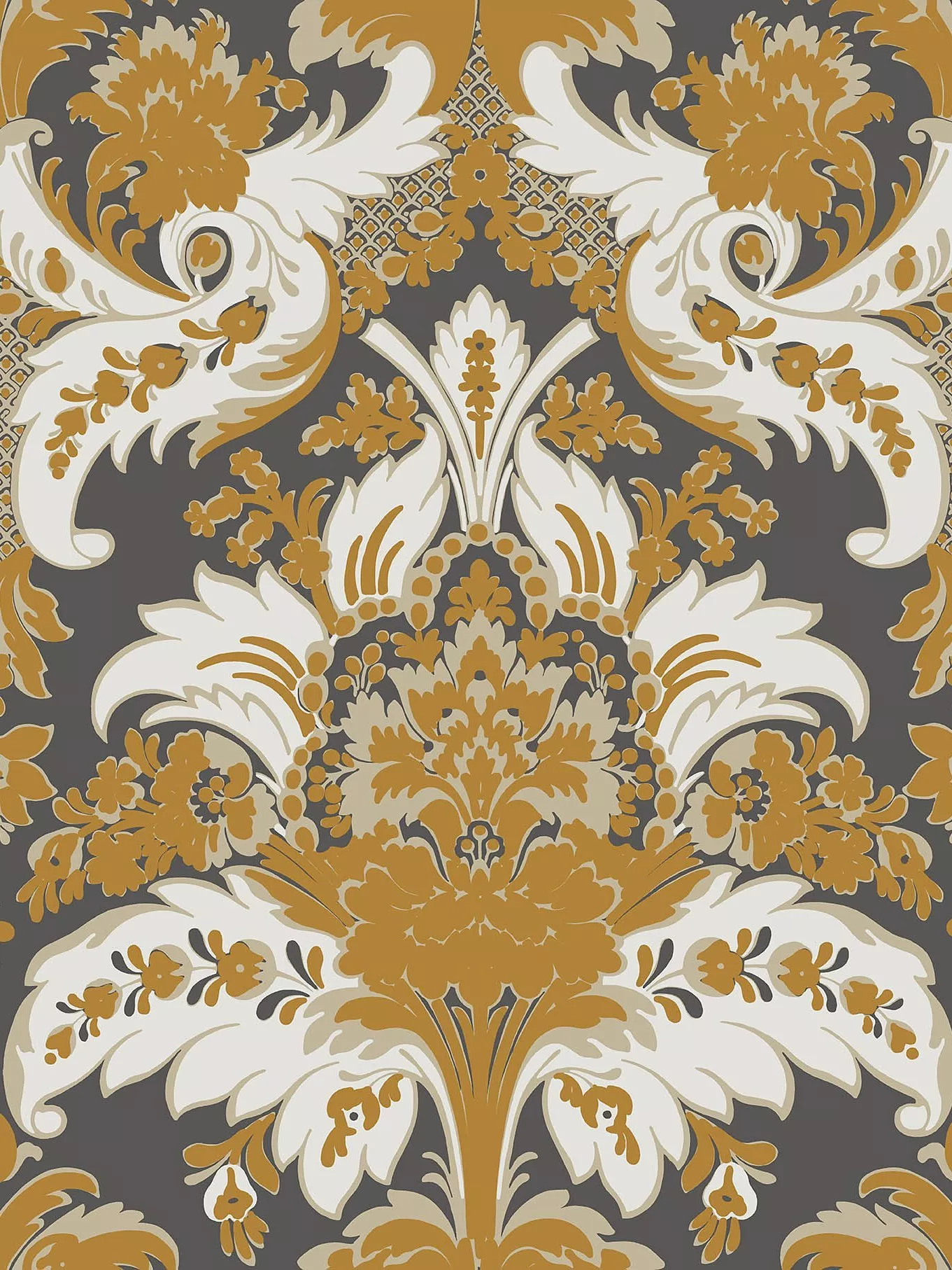 An updated rococo style damask wallpaper design taken from the Cole & Son archive, and named after the famous London crescent and theatre. This pattern features elaborate leafy scrolls and is printed using highlights of textured glitter in dramatic charcoals, golds, crimson, jade and ultramarine. Available in six colourways.