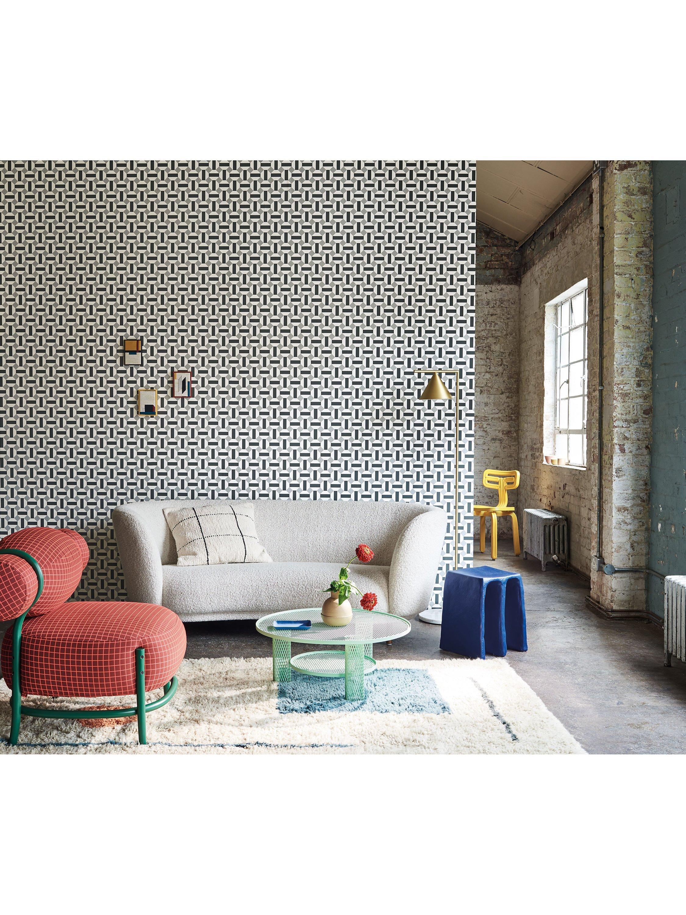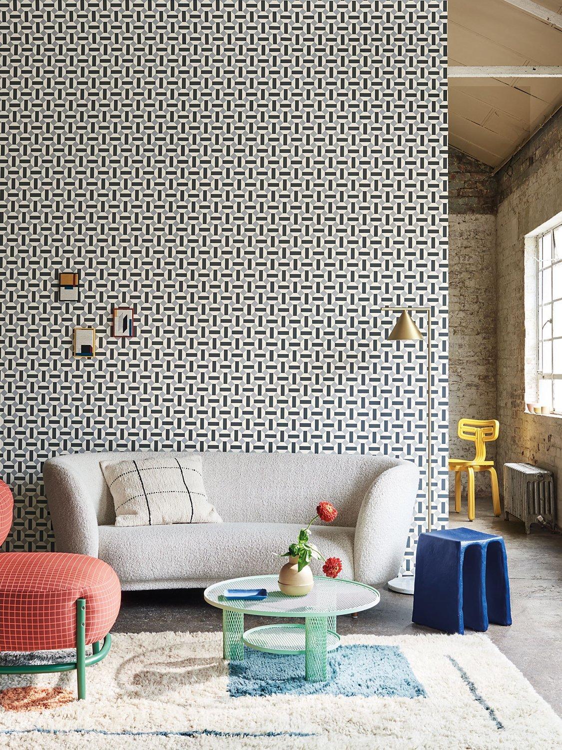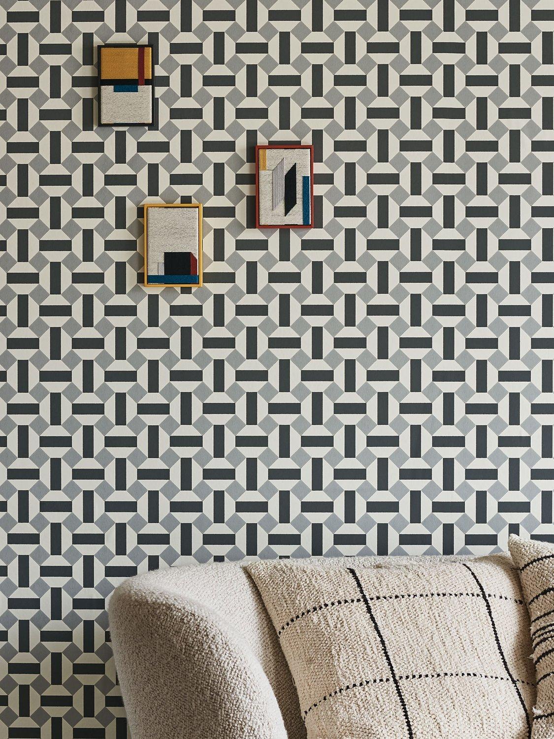 Alicatado, meaning a geometric mosaic of coloured glazed tiles, is an interpretation of Seville s famous "azulejos". Its simple two-toned print creates a striking graphic backdrop.