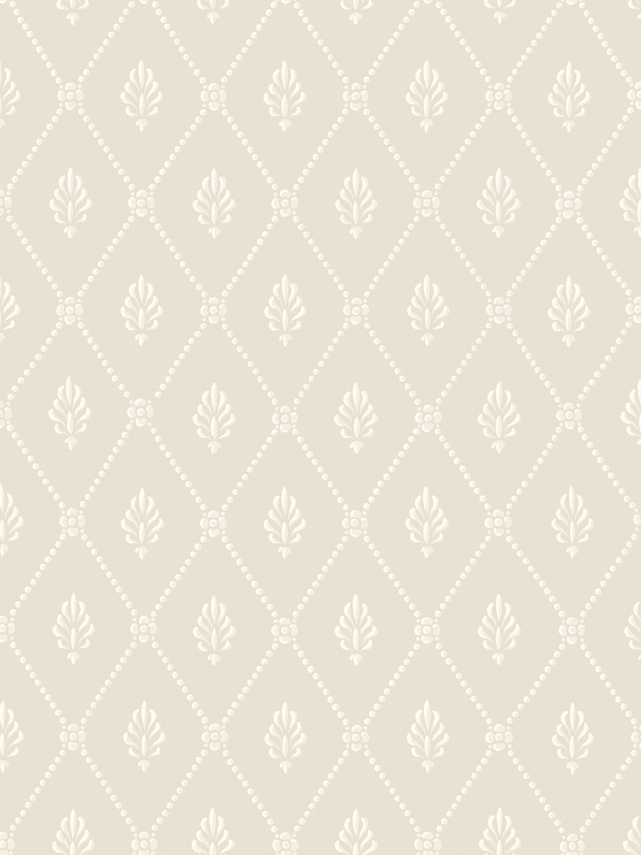 A small-scale diamond trellis enclosing a simple sprig leaf motif.