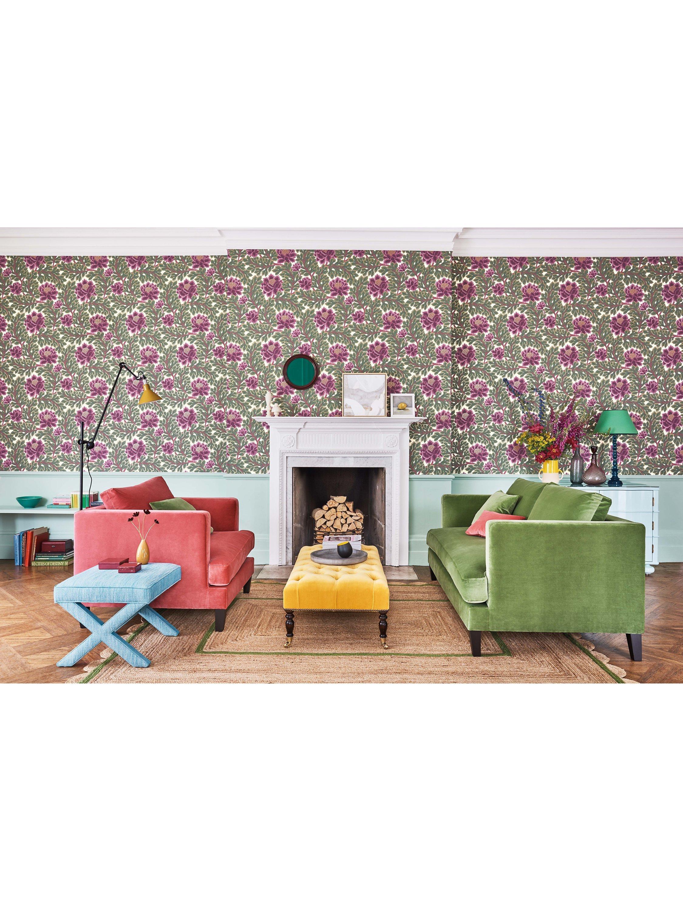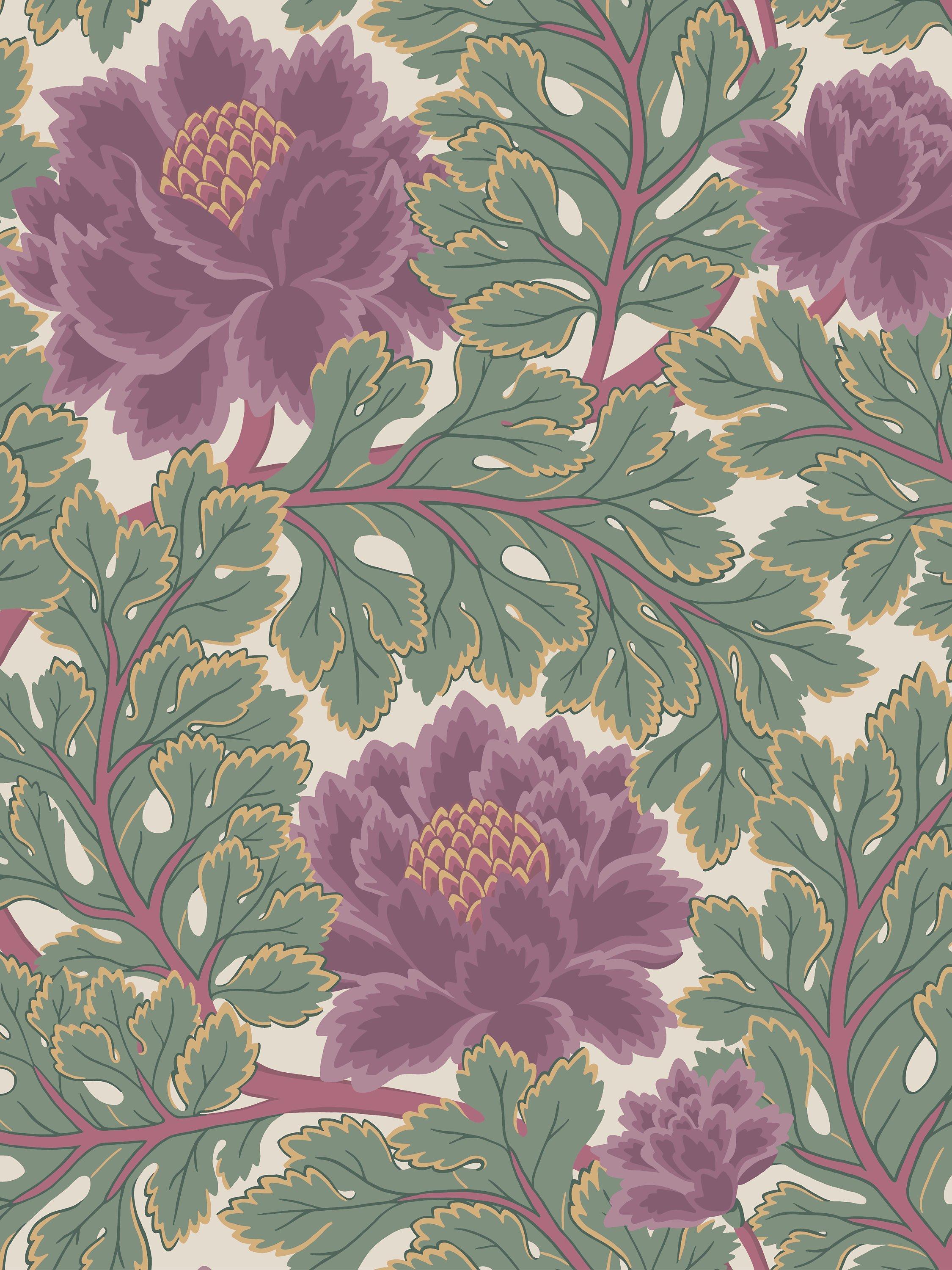 The rich, floral tapestry of Aurora captures all of the enchantment of a fairy tale forest, with its dense thickets and undergrowth. Entirely hand-painted, the design's inspiration came from archival documents, with its printed detail paying homage to traditional printmaking.