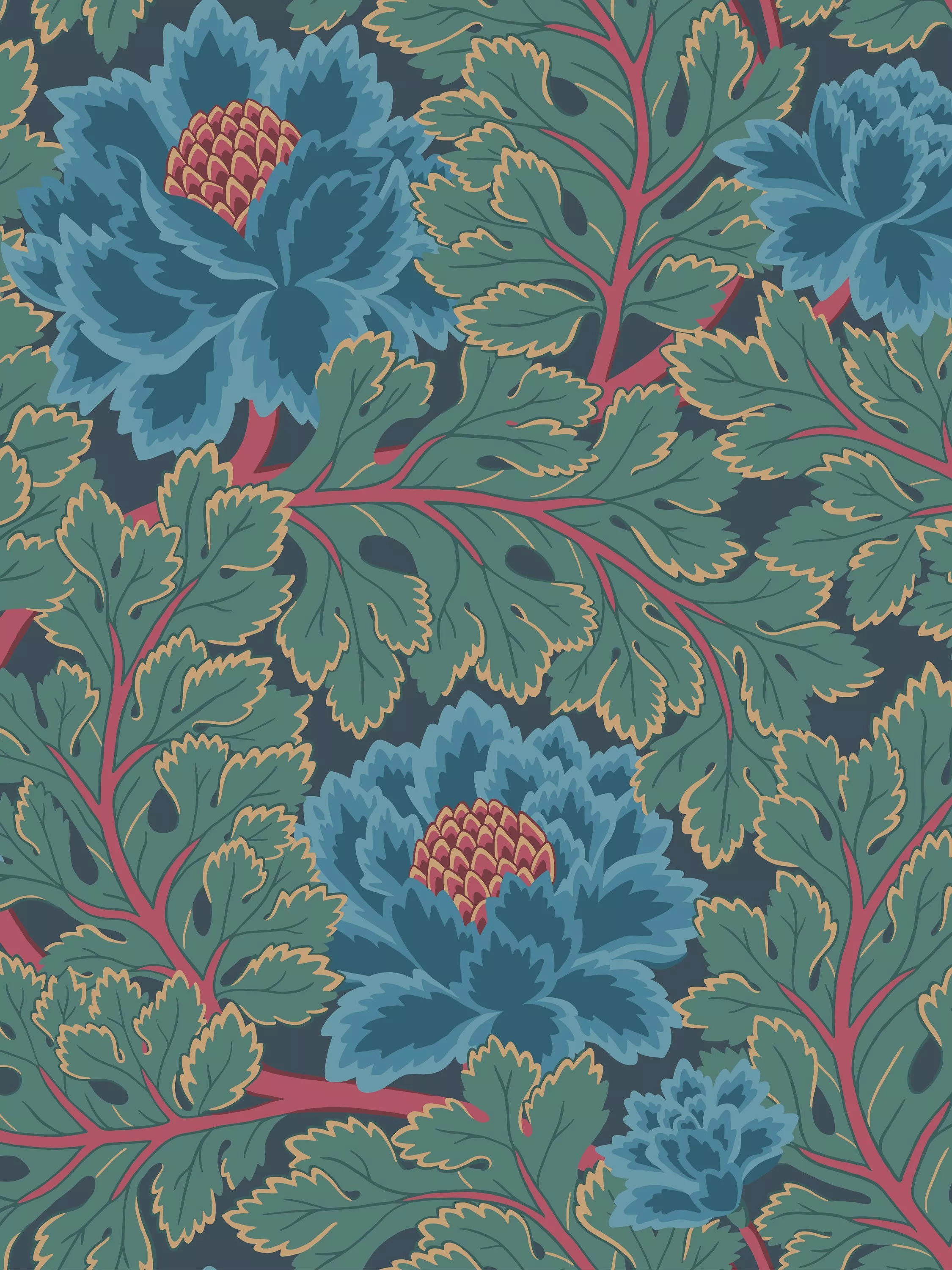 The rich, floral tapestry of Aurora captures all of the enchantment of a fairy tale forest, with its dense thickets and undergrowth. Entirely hand-painted, the design's inspiration came from archival documents, with its printed detail paying homage to traditional printmaking.