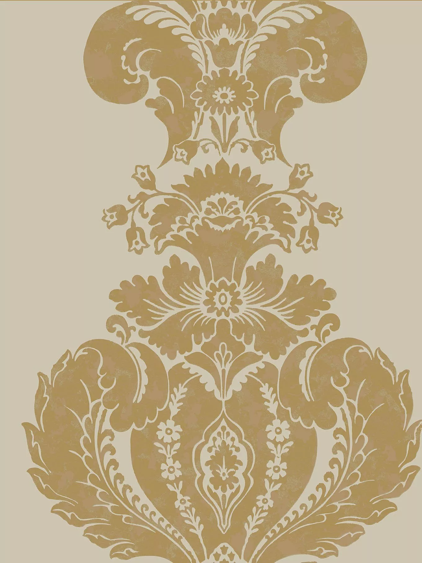 The print references the fashion for gilding with ornamental gold leaf and other precious metals. This elegant wallpaper pattern of feathered plumes is designed as a panel and features burnished metallics on a range of neutral grounds. Available in five colourways including linen with gold, mole with silver, black with bronze, ivory with white, and grey with silver.