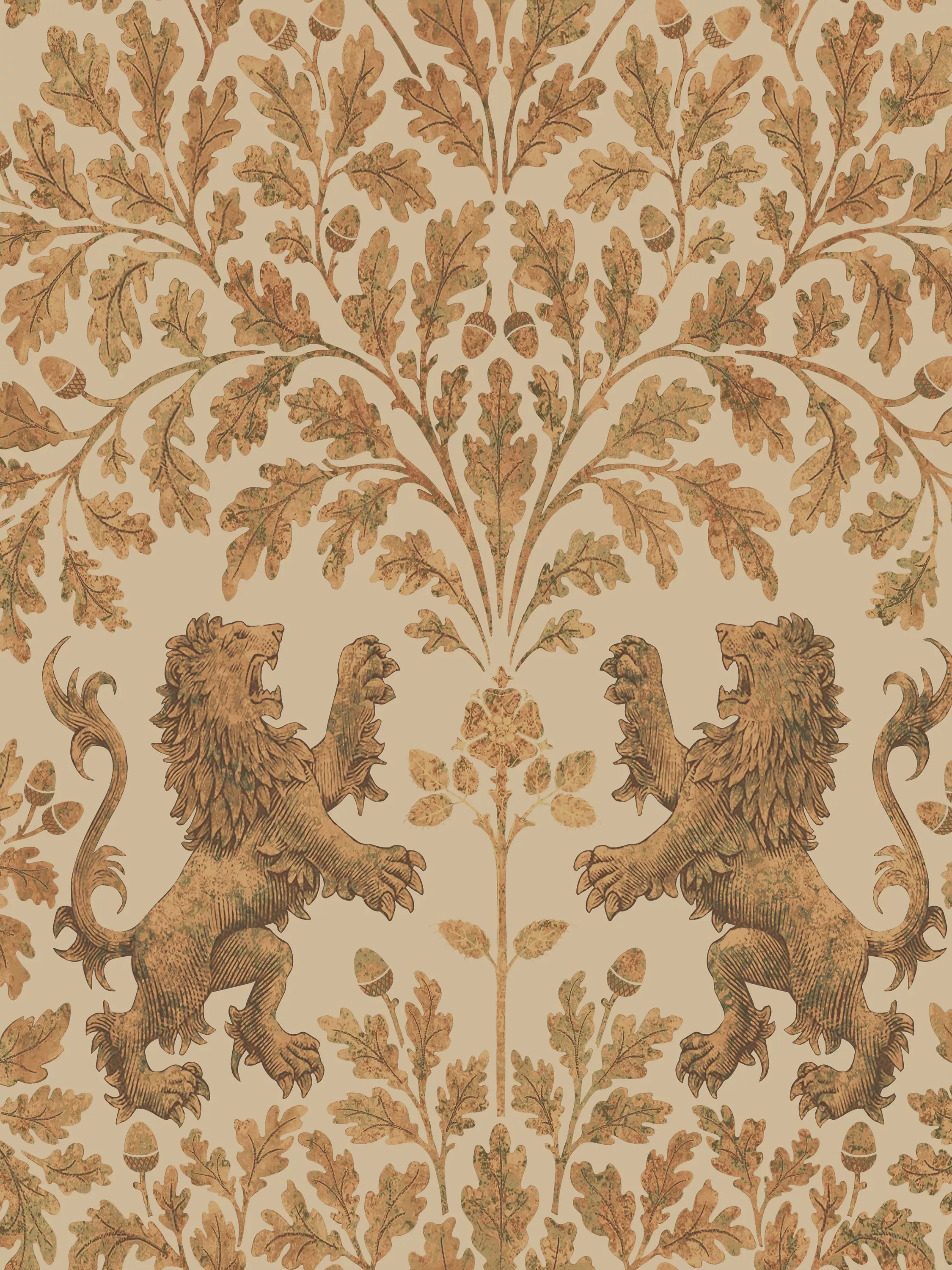 Combining many of the monarchical symbols of England such as the Tudor Rose, roaring lion and the oak tree, Boscobel Oak is a unique take on a traditional damask print. Taking its name from the great oak in Boscobel Wood, which helped Charles II hide from the Roundhead soldiers pursuing him, later becoming known as the Royal Oak, it is an ode to the most-regal of English symbols.