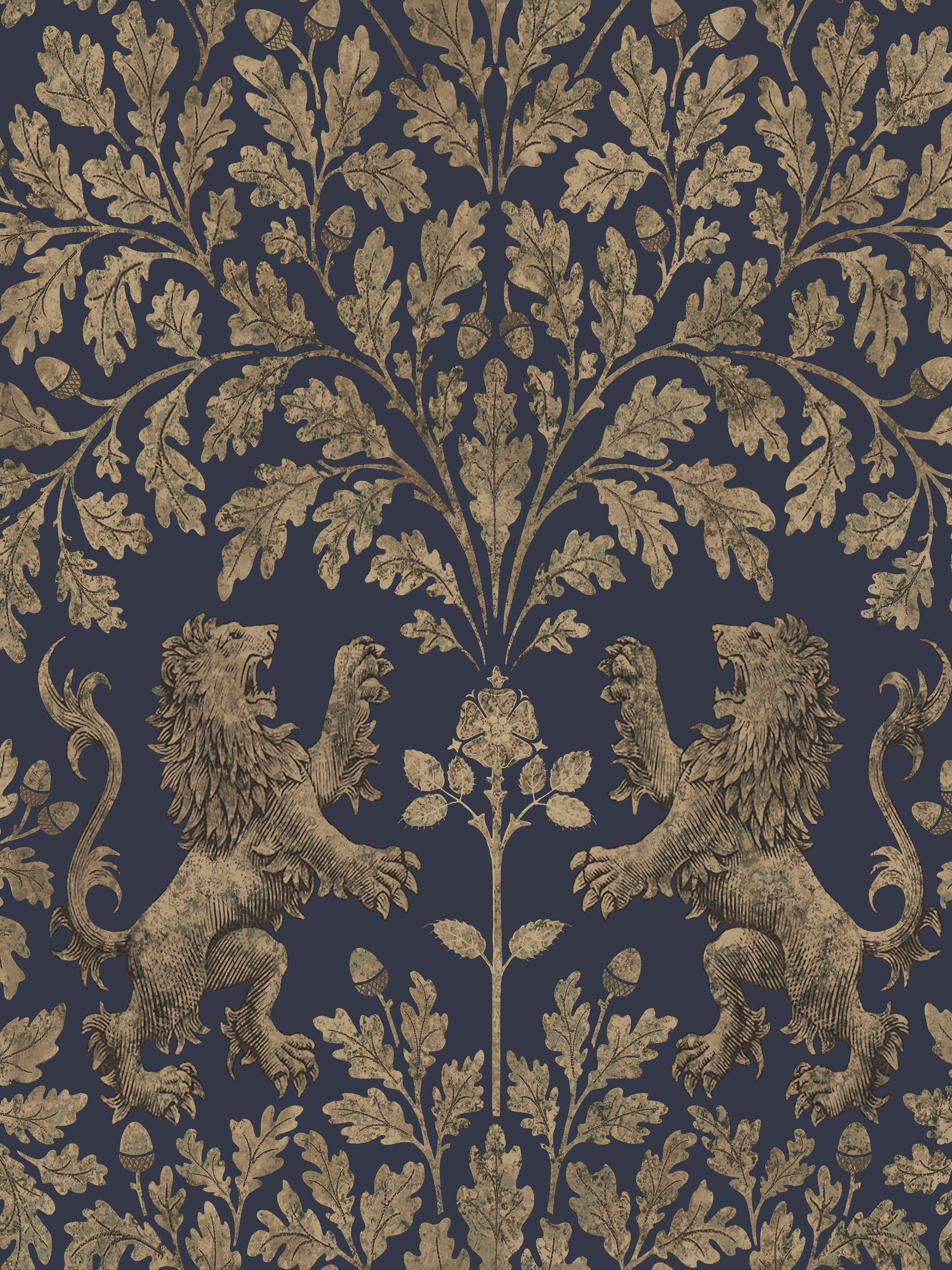 Combining many of the monarchical symbols of England such as the Tudor Rose, roaring lion and the oak tree, Boscobel Oak is a unique take on a traditional damask print. Taking its name from the great oak in Boscobel Wood, which helped Charles II hide from the Roundhead soldiers pursuing him, later becoming known as the Royal Oak, it is an ode to the most-regal of English symbols.