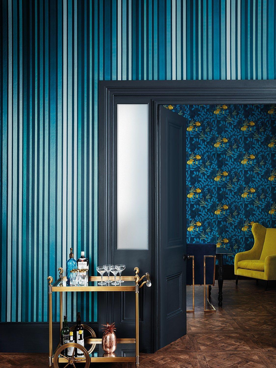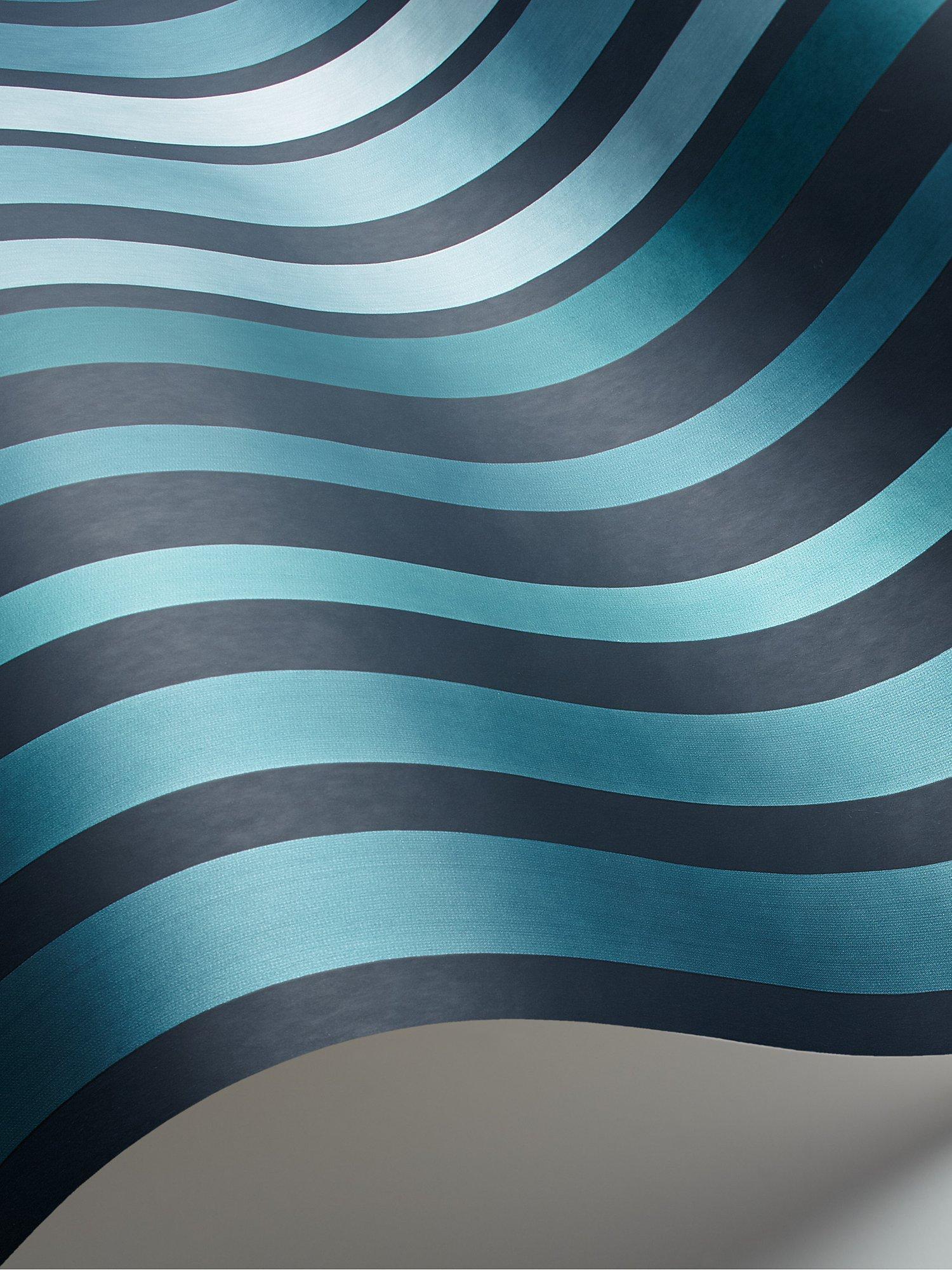 Bringing to life another Cole & Son classic archive print, Carousel Stripe has been updated and recreated using innovative modern print techniques. Shimmering dragged-brush ribbons of coloured metallics line up to create a wonderfully vibrant and glamorous wallpaper. Carousel Stripe was originally produced using a stripe pan, each section in the pan housed a separate colour and was filled by hand to produce this complex and beautiful striped wallpaper. Introducing four new striking metallic colourways in hues of frosty green, inky blue, rouge red and steel greys.