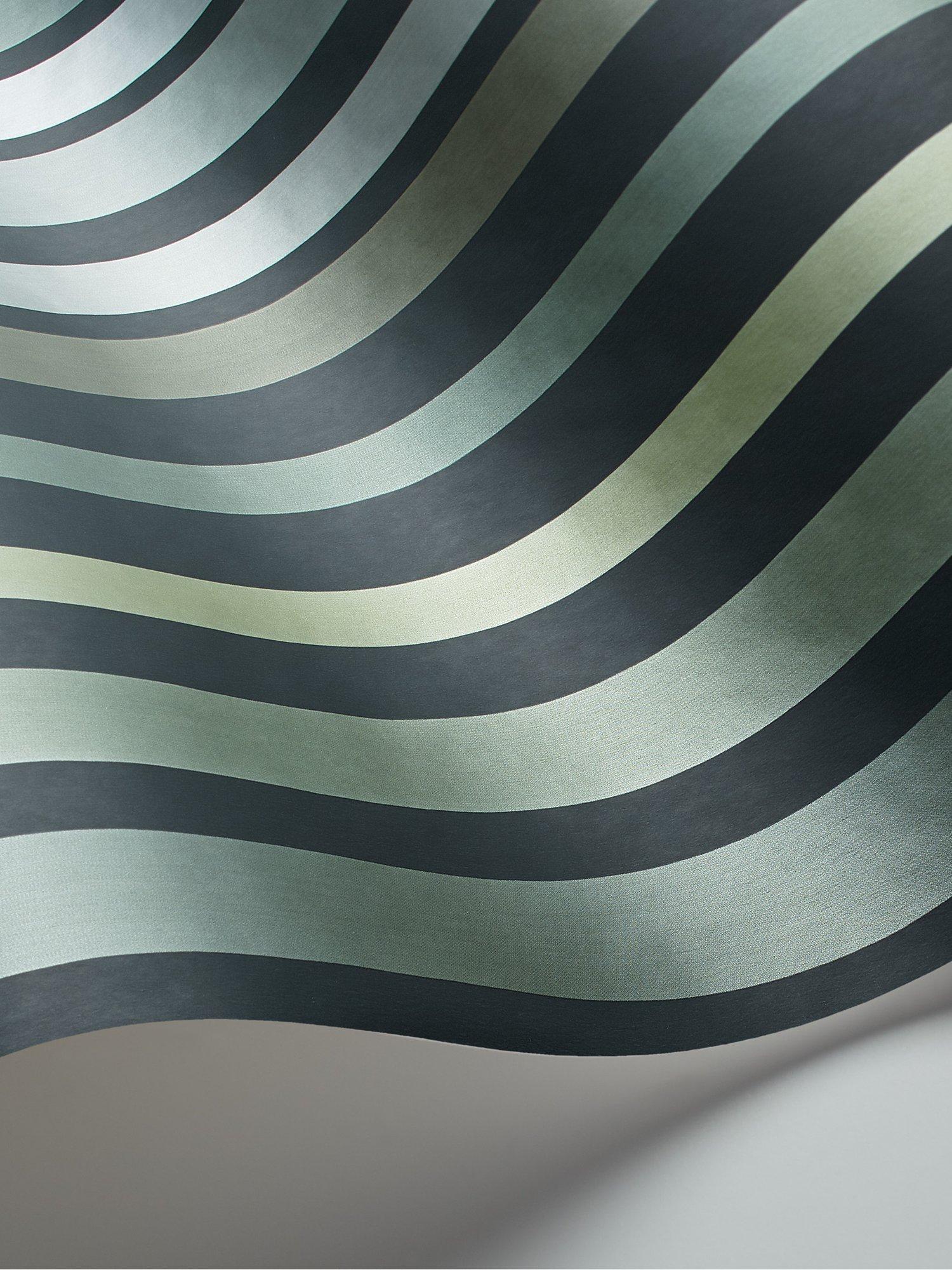 Bringing to life another Cole & Son classic archive print, Carousel Stripe has been updated and recreated using innovative modern print techniques. Shimmering dragged-brush ribbons of coloured metallics line up to create a wonderfully vibrant and glamorous wallpaper. Carousel Stripe was originally produced using a stripe pan, each section in the pan housed a separate colour and was filled by hand to produce this complex and beautiful striped wallpaper. Introducing four new striking metallic colourways in hues of frosty green, inky blue, rouge red and steel greys.