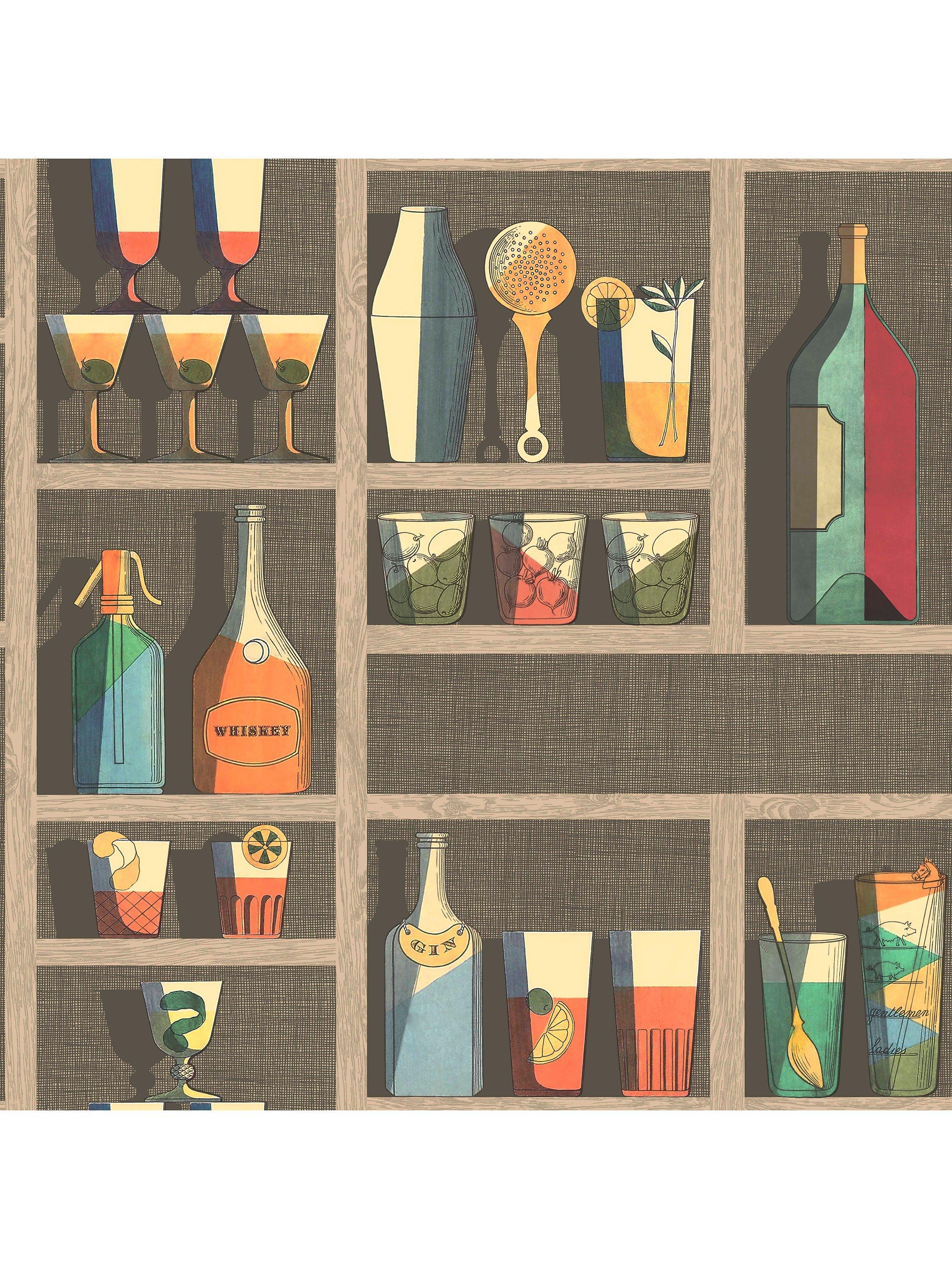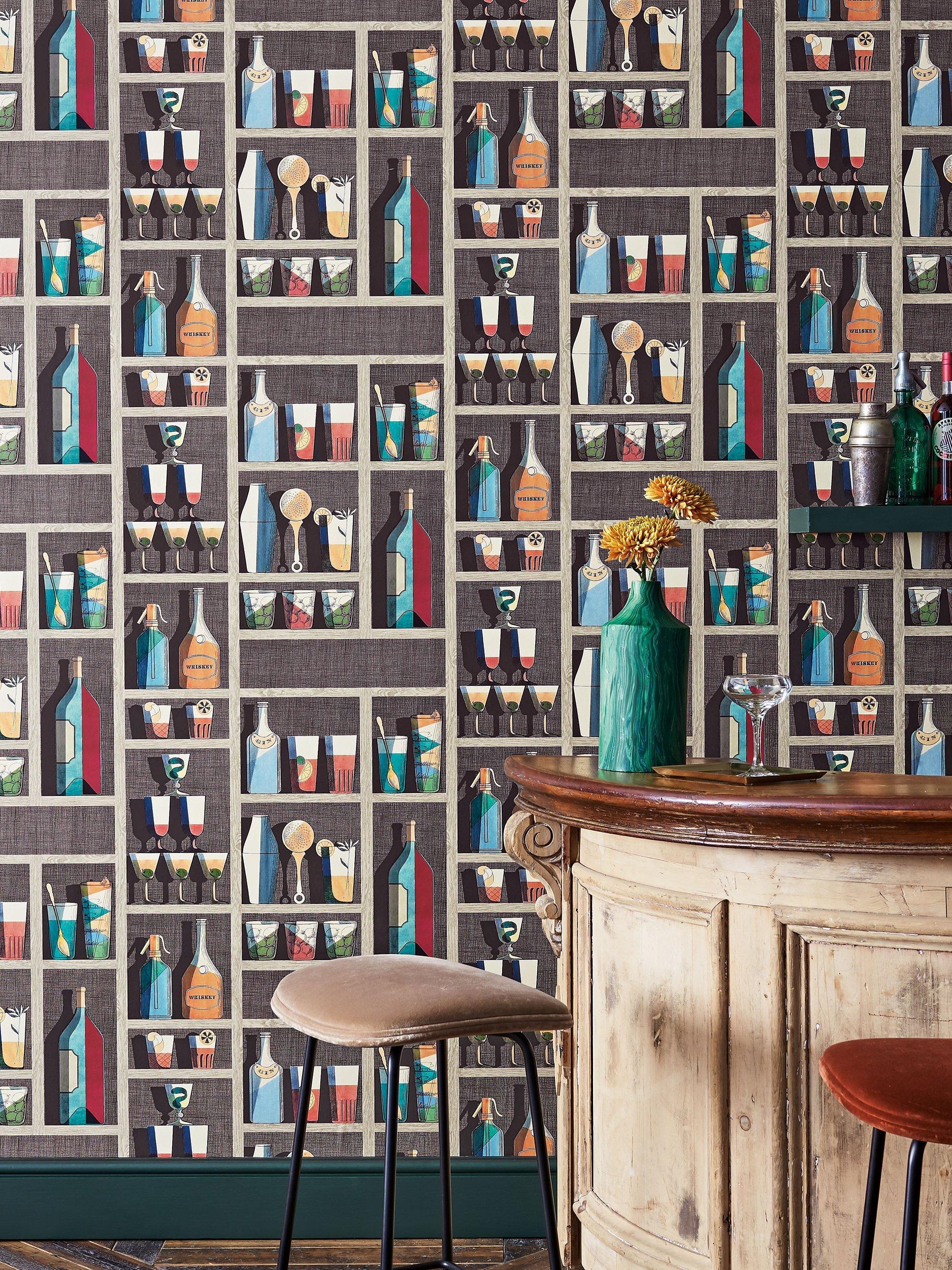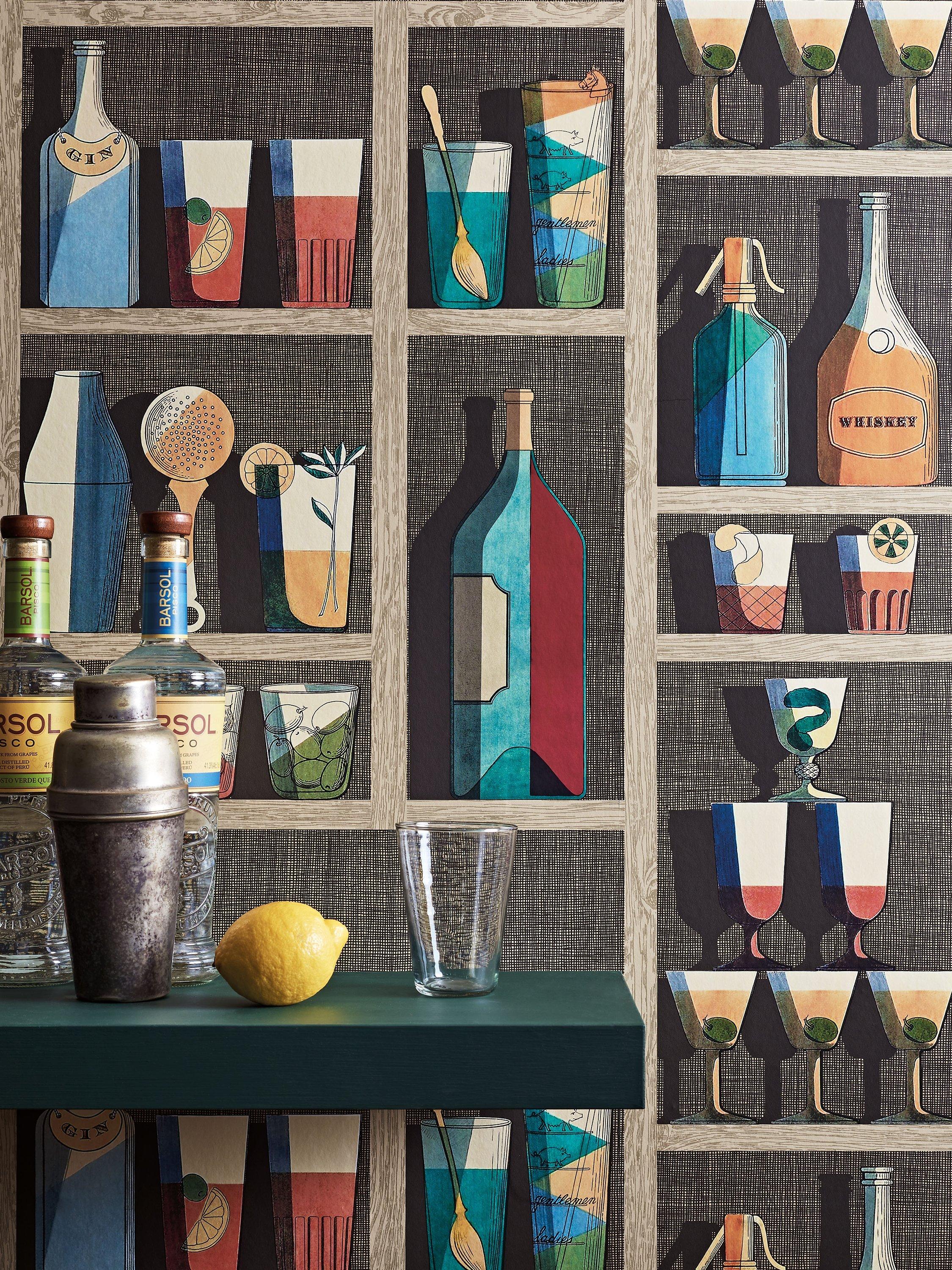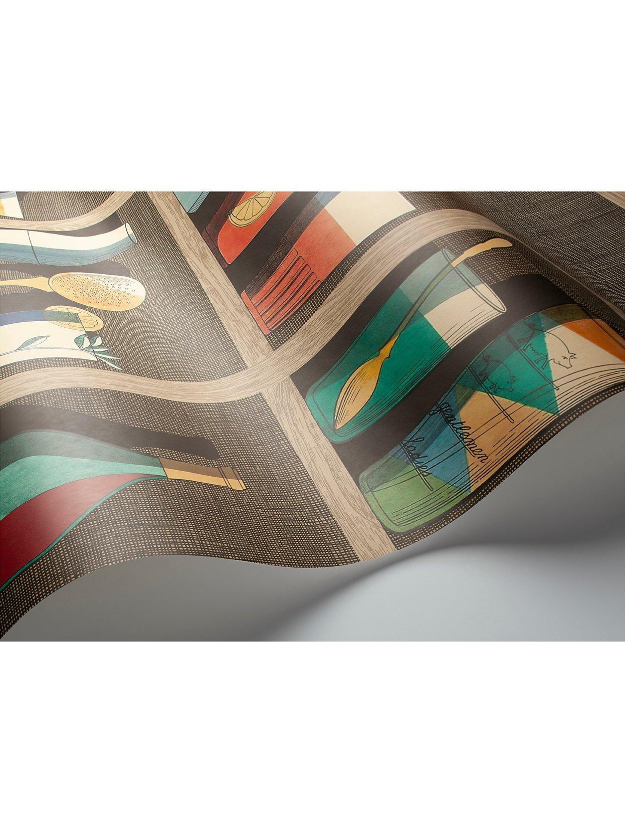 Derived from an ice bucket design from the 1950s, "Cocktails" showcases Piero Fornasetti's fascination with repeated studies of the same subject in order to create multiple variations upon the same theme. Its stylized mid-century graphic bottles and glassware were created in a vibrant multi colour palette, true to the original sketches.