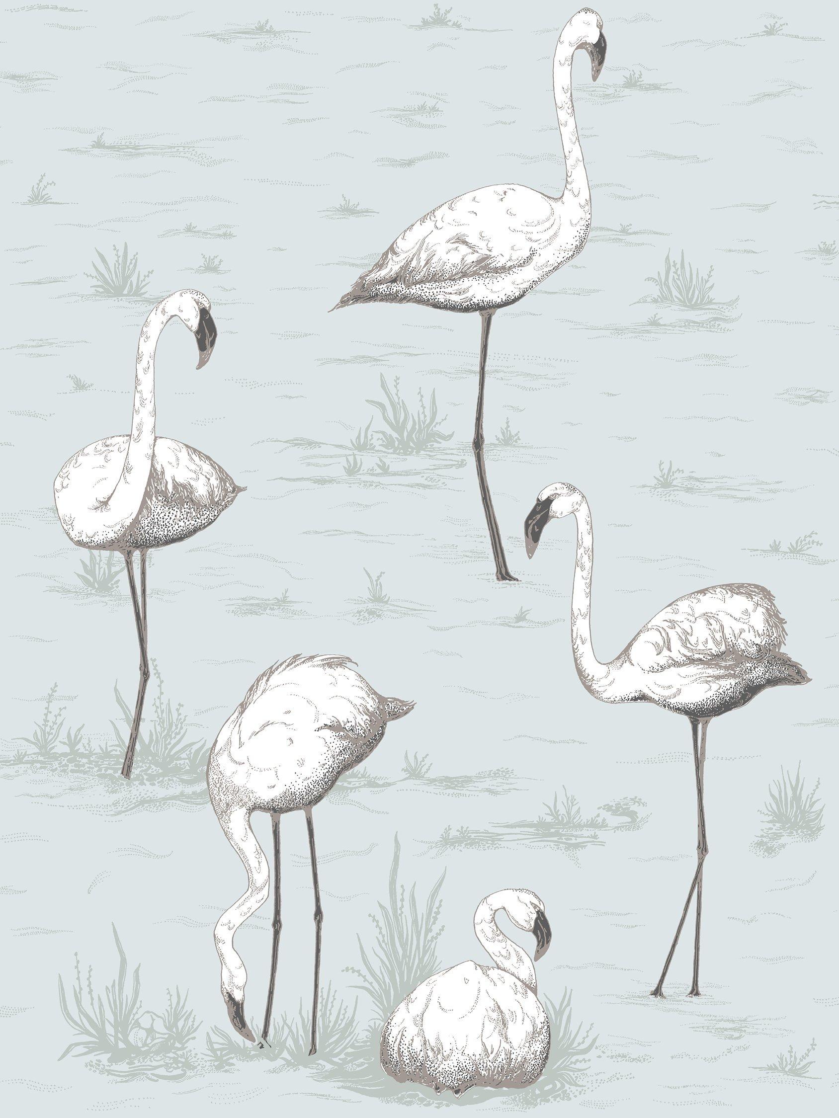 An unusual but very beautiful wallpaper with a design of wading flamingos.