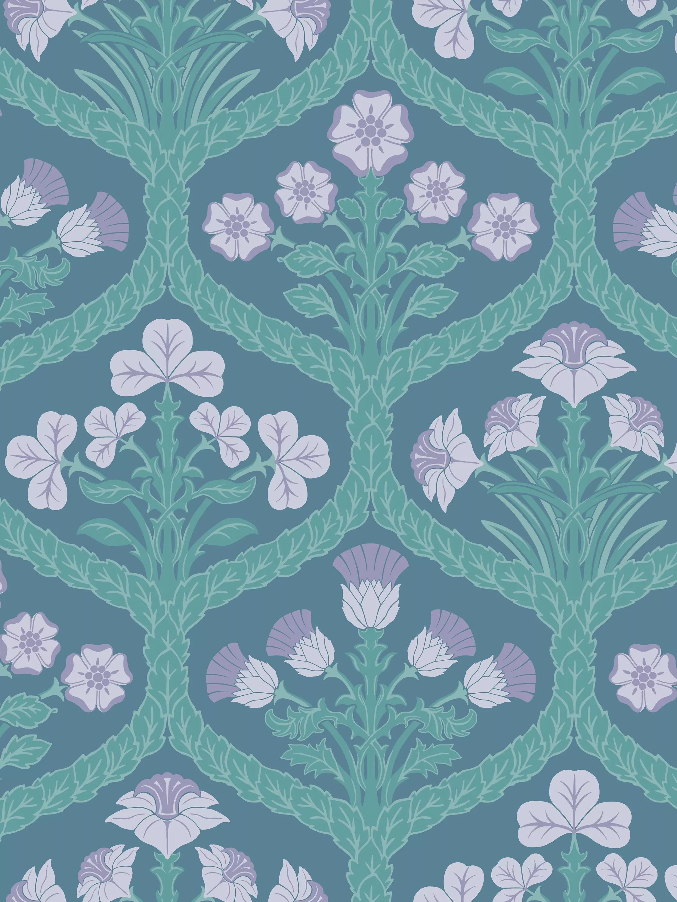 Taking its inspiration from Gothic Revival design, Floral Kingdom is a soft, ogee design made of knotted leaves and each of the United Kingdom's national flowers: springtime daffodils for Wales,fragrant roses for England, the bursting rosettes of the Scottish thistle, and the delicate shamrock sprig representing Northern Ireland.