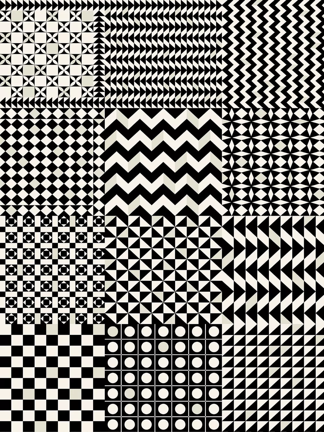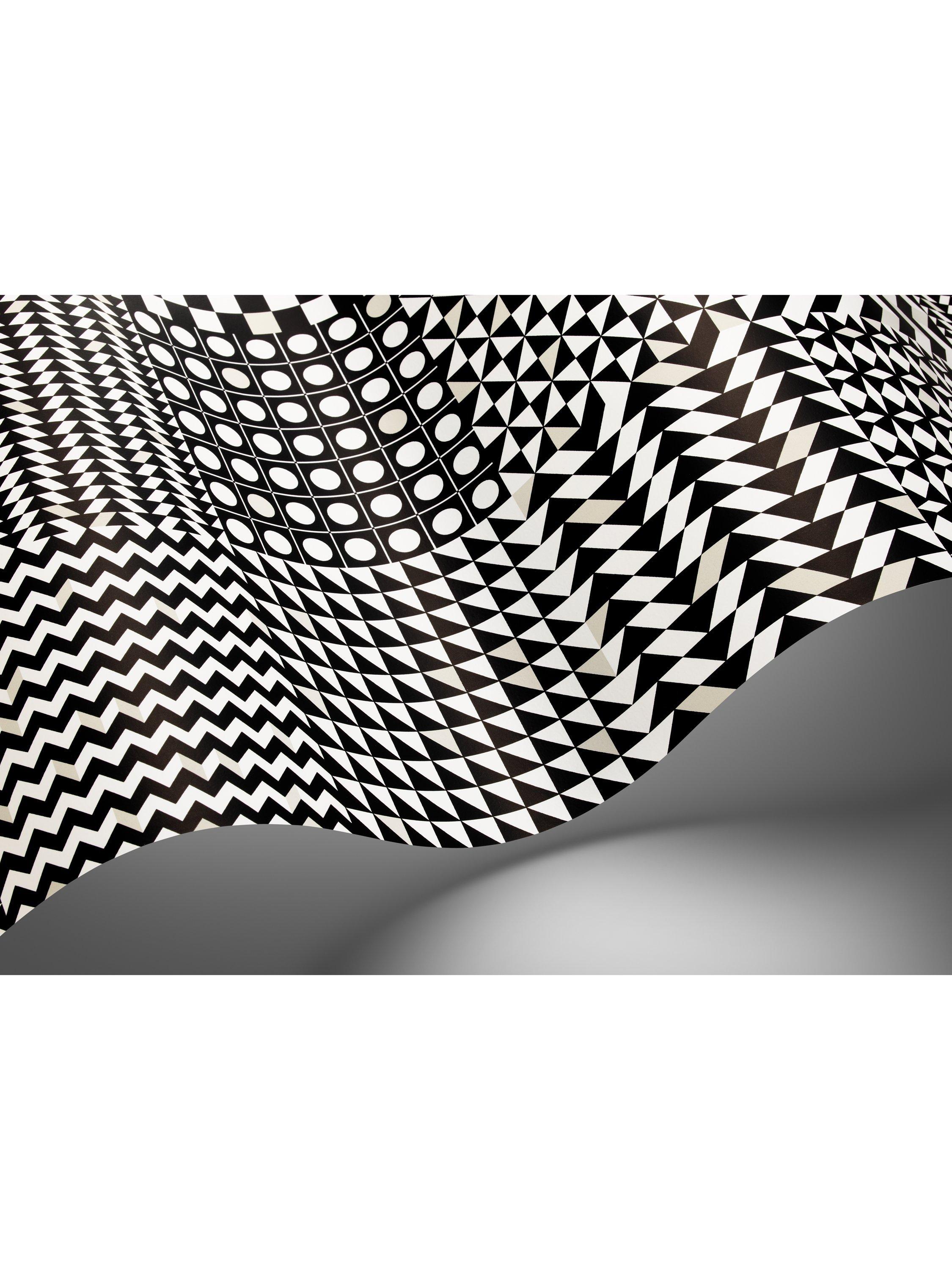 Piero Fornasetti first used this motif in 1954 for the decoration of his Geometrico screen. Variations on the chessboard theme and perceptual illusions play with the contrast between black and white.
