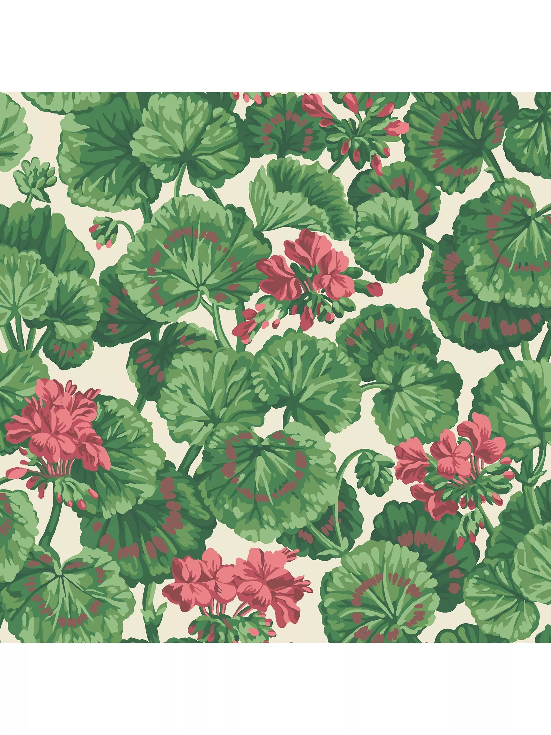 Flourishing in Seville s temperate climate, geraniums can be found adorning balconies as well as creating vibrant bursts of colour throughout parks and cultivated gardens. This archive design was completely redrawn and repainted by the Cole & Son design studio to enhance the lush, robust fanned leaves and blooming clusters of bright petals.