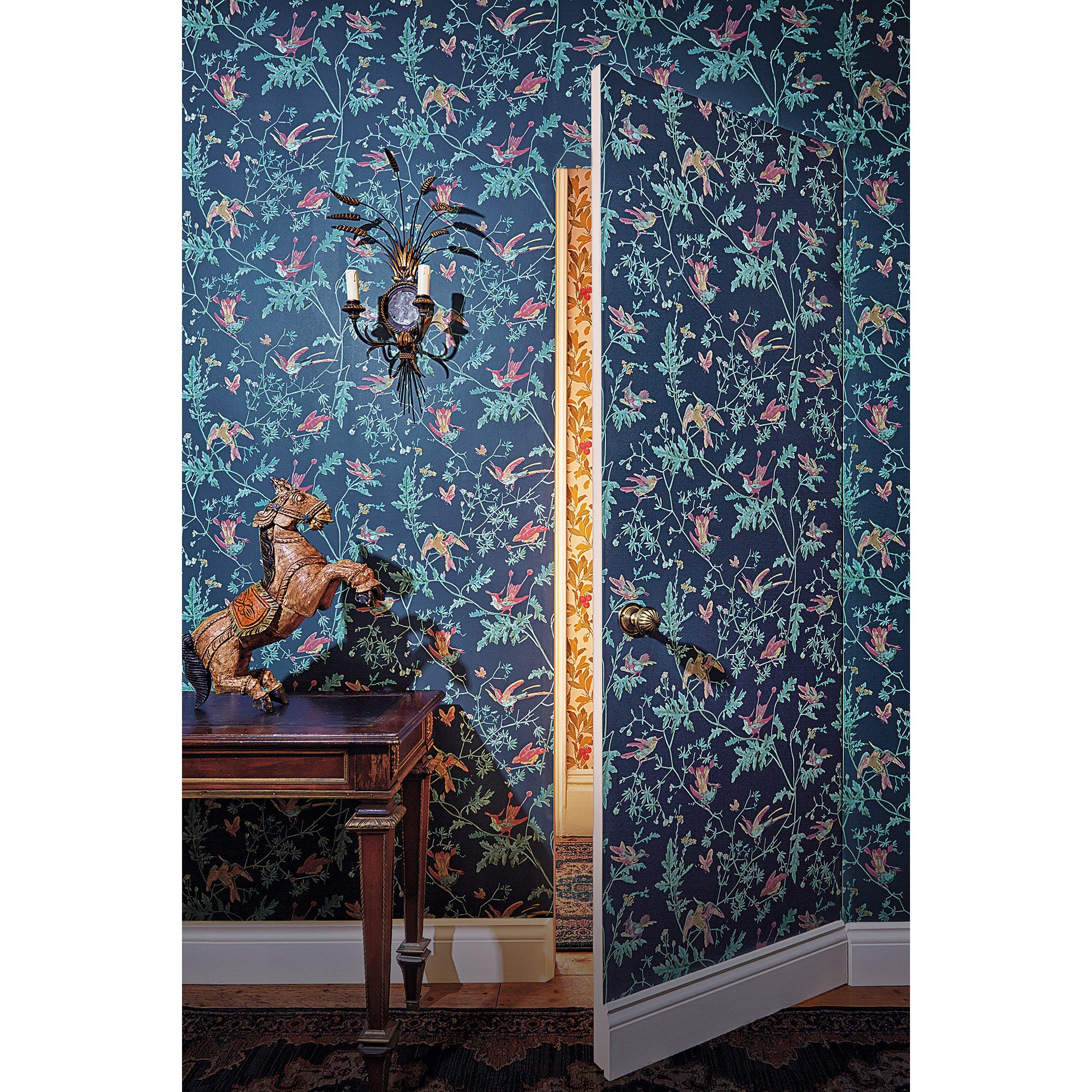 A romantic floral print, Hummingbirds depicts delicate birds perched on foliage and flowers. Originally a handmade, block print wallpaper dating back to the eighteenth century from the Cole & Son archive. This classic trailing print is available in a host of colourways from traditional muted tones to moody twilight shades and opulent mica pearls.