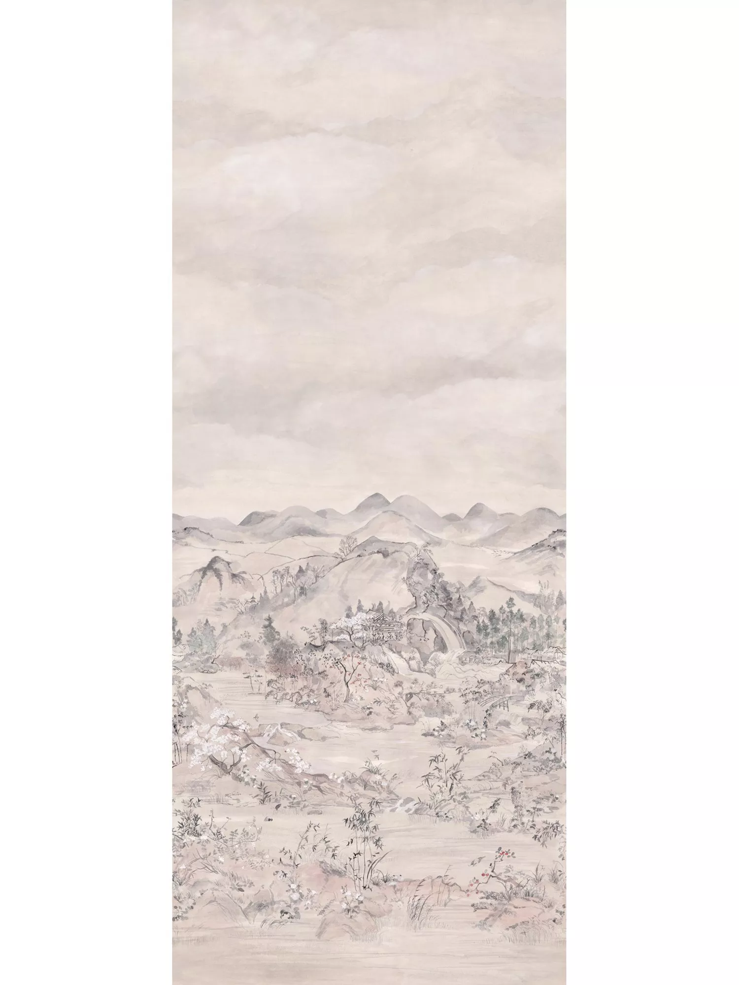 A breathtaking chinoiserie that is a culmination of several sceneries resonating from the most beautiful gardens of Japan. Let the calligraphy strokes guide you through the landscape. Immerse yourself through hills, trees, flowers and the flowing water that cascades throughout the panel. Experience the charming blossoms of the iconic Sakura tree that poetically and aesthetically bloom in the natural landscape.