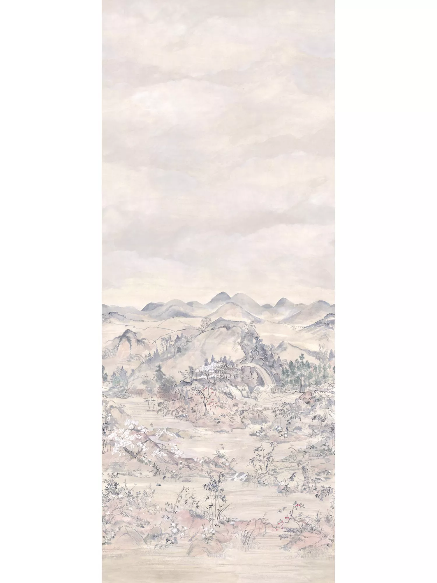 A breathtaking chinoiserie that is a culmination of several sceneries resonating from the most beautiful gardens of Japan. Let the calligraphy strokes guide you through the landscape. Immerse yourself through hills, trees, flowers and the flowing water that cascades throughout the panel. Experience the charming blossoms of the iconic Sakura tree that poetically and aesthetically bloom in the natural landscape.