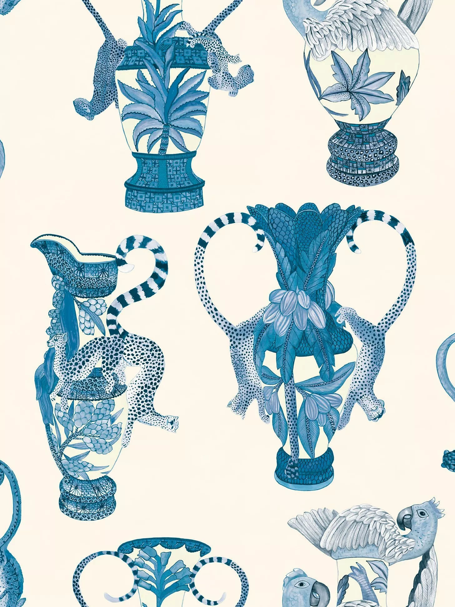 Khulu, meaning "most important" is a very apt name for this grand design featuring classical vases entwined with leopards, parrots, lions and other African animals. This fabulous wallpaper, with its watercolour paintings, pays tribute to renowned ceramic vessels recognised today as "modern day collectibles" by auction houses such as Christie’s, Bonhams and Sothebys.