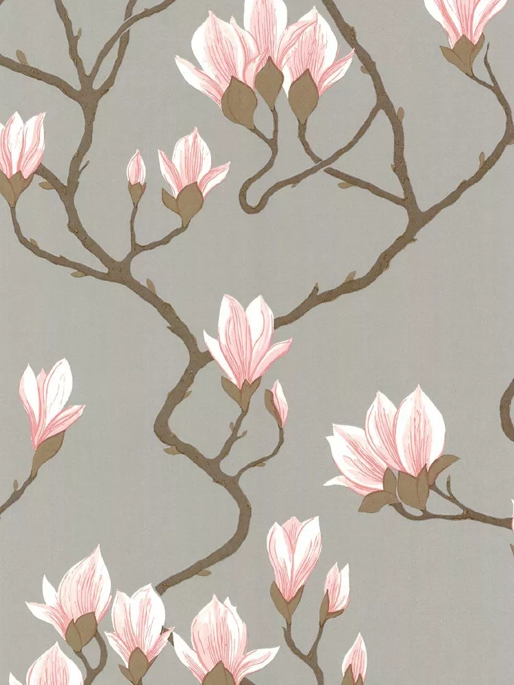 Cole & SonMagnolia Wallpaper, Silver / Pink, 72/3010