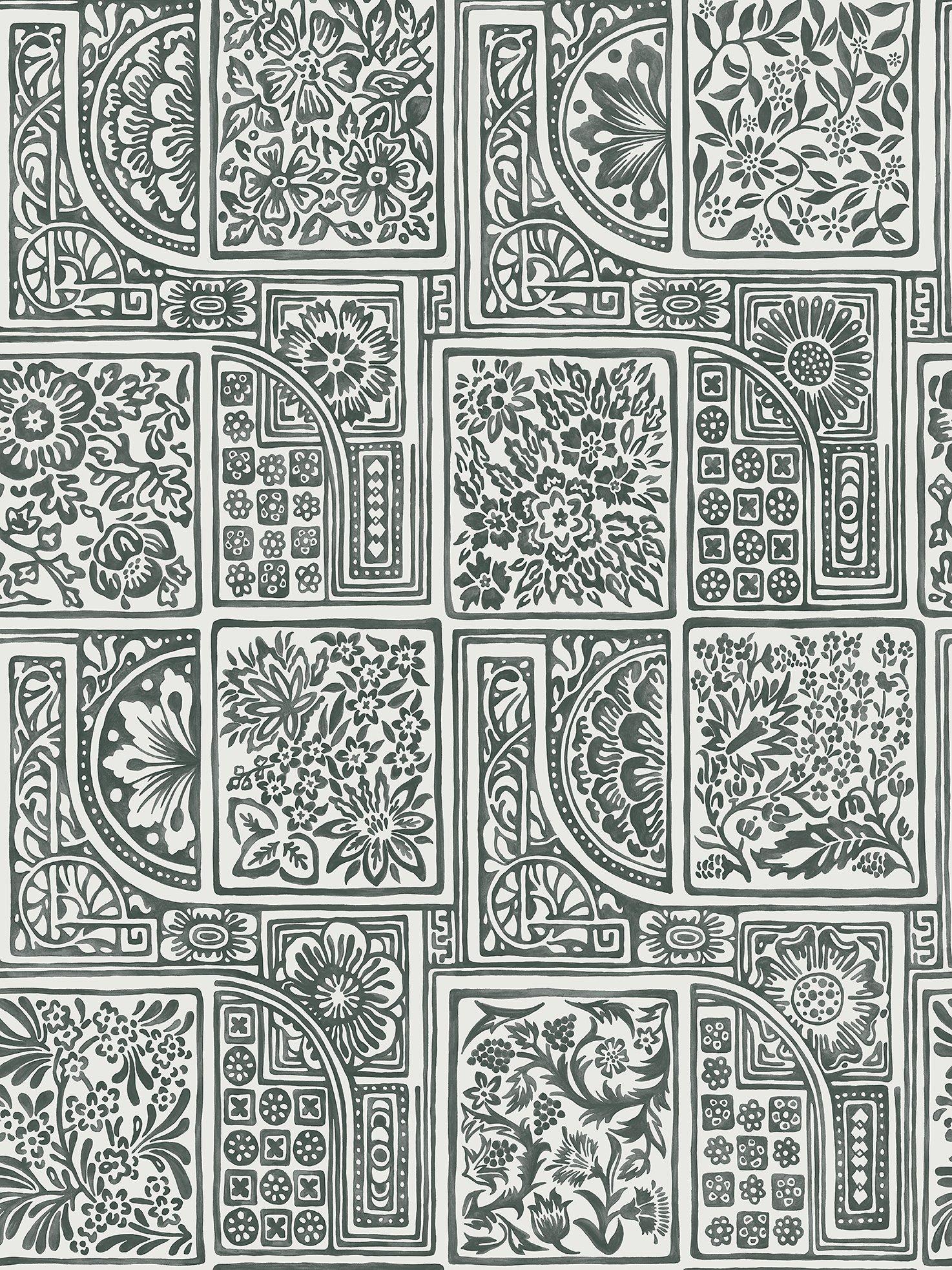 A pretty arrangement of tiles with sketched florals and geometrics.
