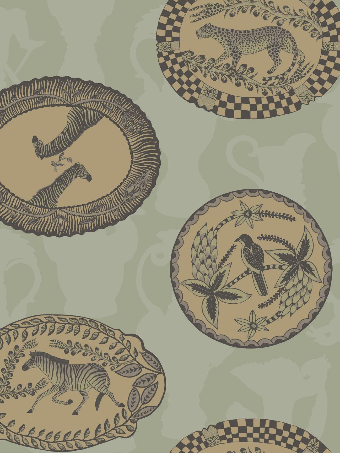Matrinah reveals an arrangement of ornamental platters and dishes, all intricately patterned with birds and animals and edged with decorative borders and pie crust scallops.