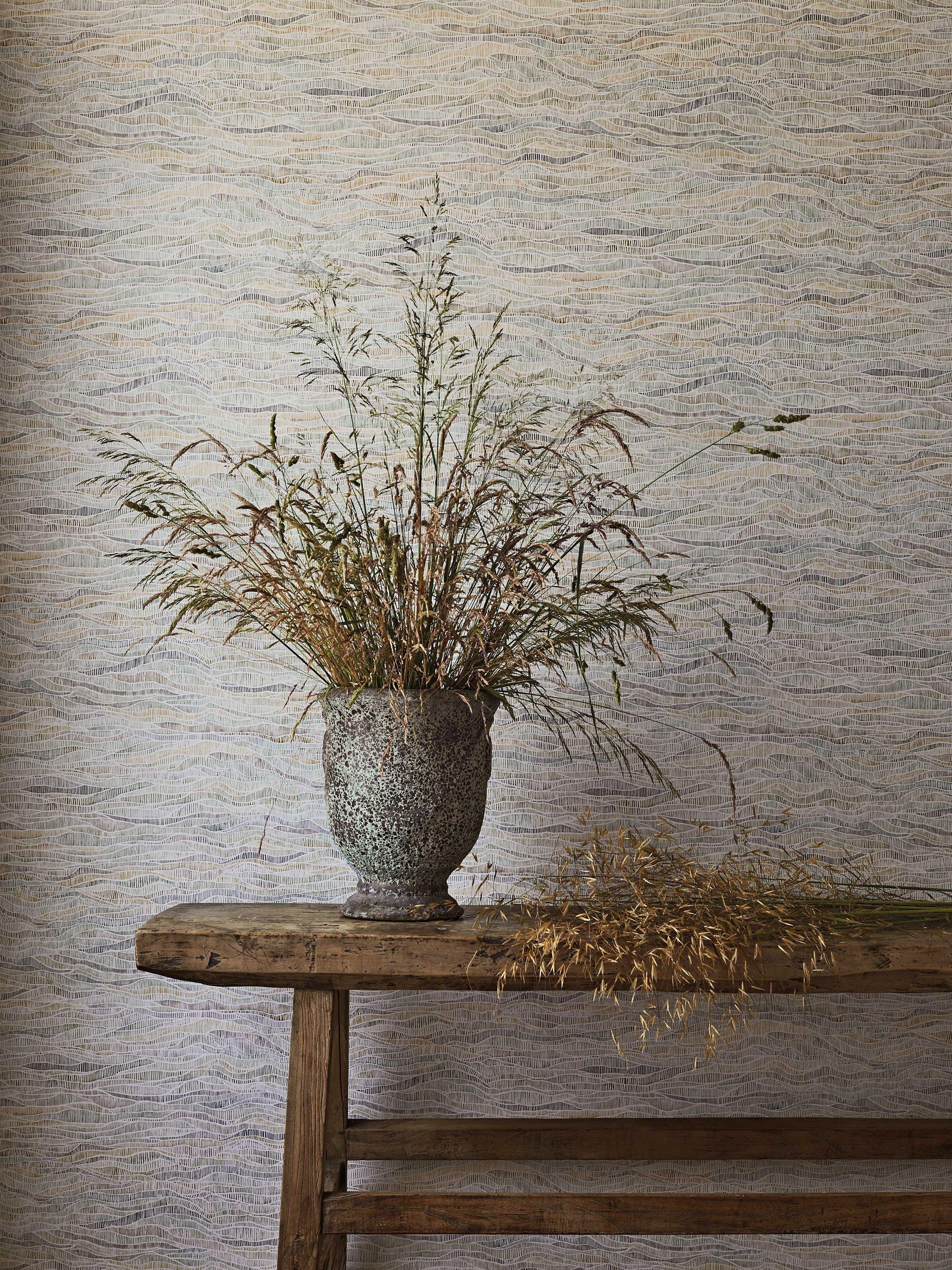 Created to reflect the naturally curving moors and dales found throughout Great Britain, Meadow's watercolours are interrupted only by a soft batik-effect wave in delicate colourings.