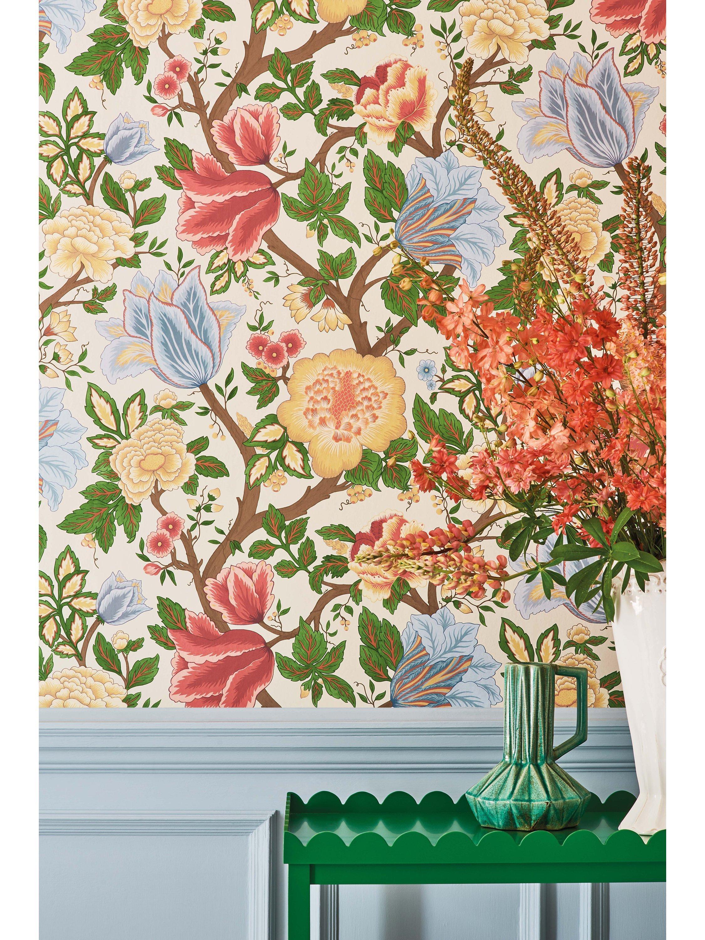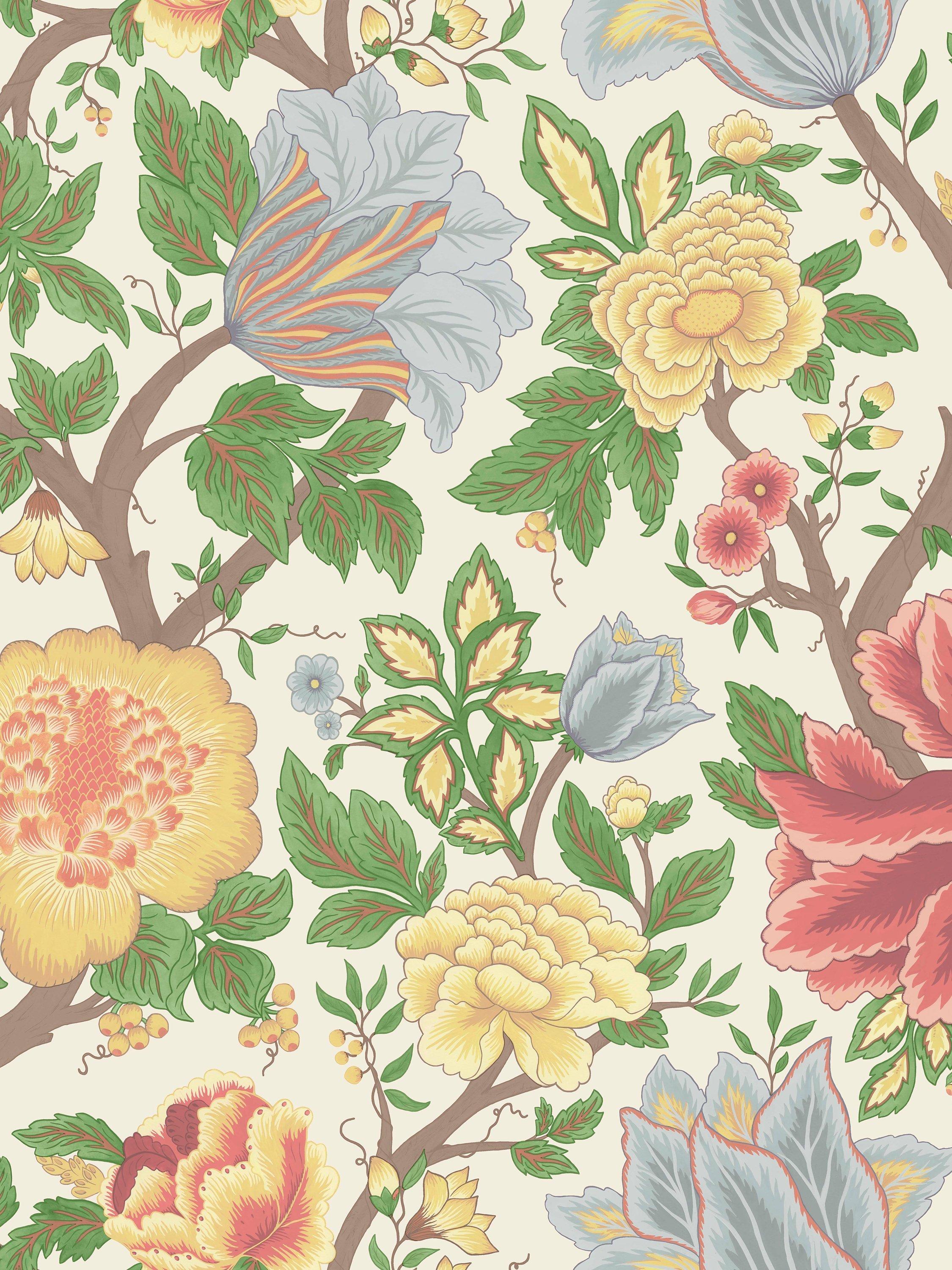 Midsummer Bloom depicts abundant summer flowers in full bloom. This blousy print was found in the Cole & Son archive and re-painted by the Design Studio to create a rich and lavish trailing floral.