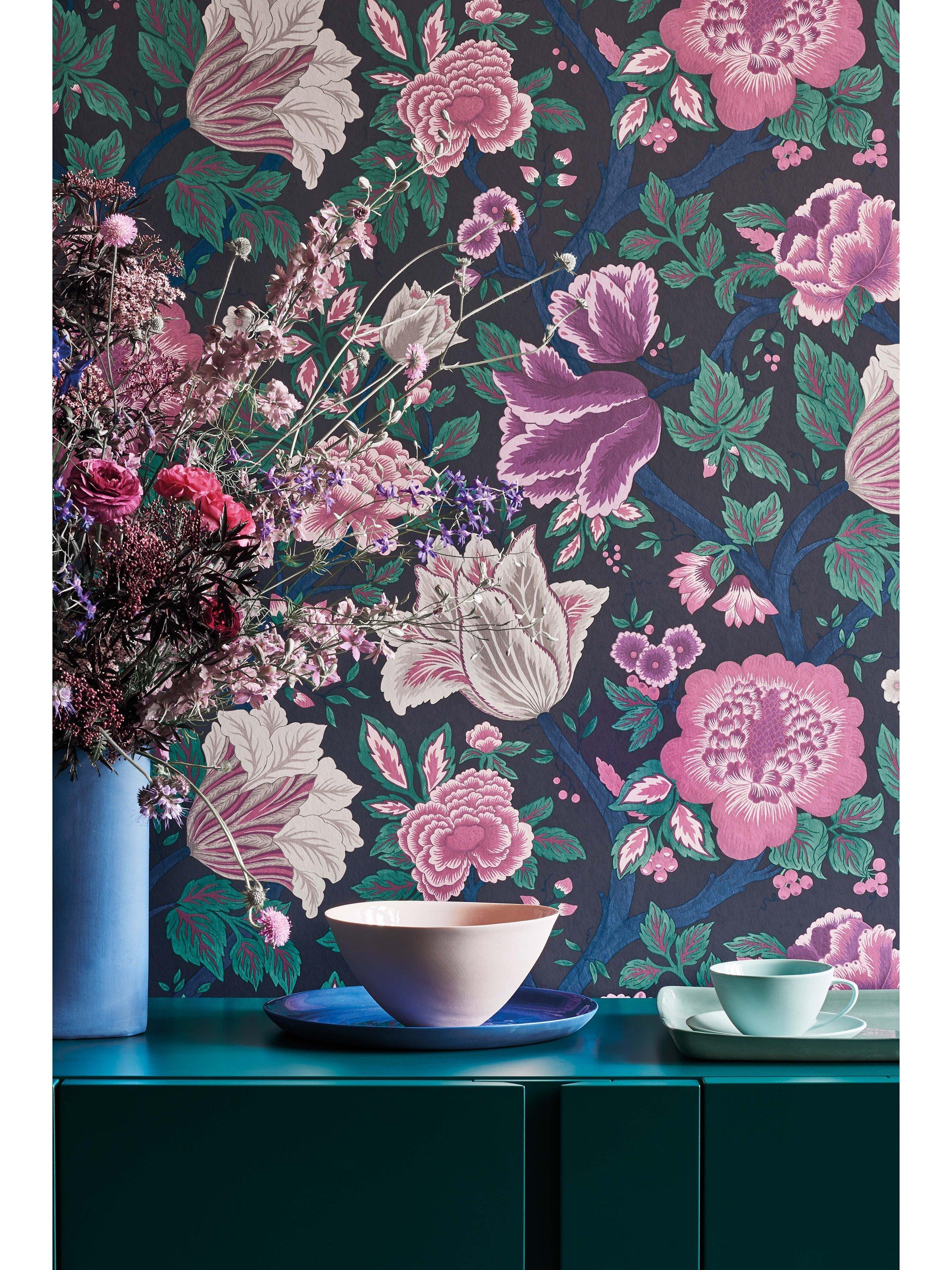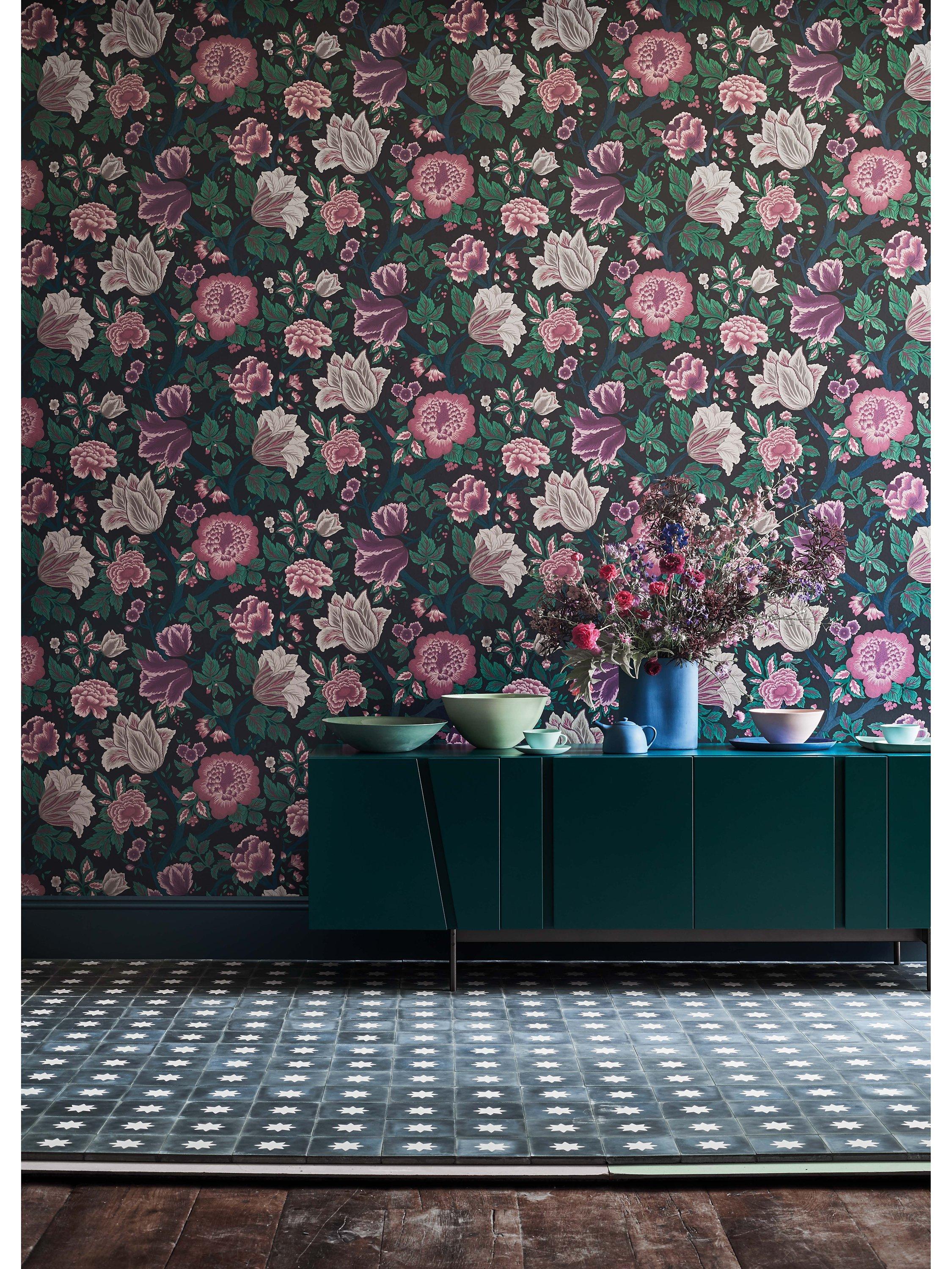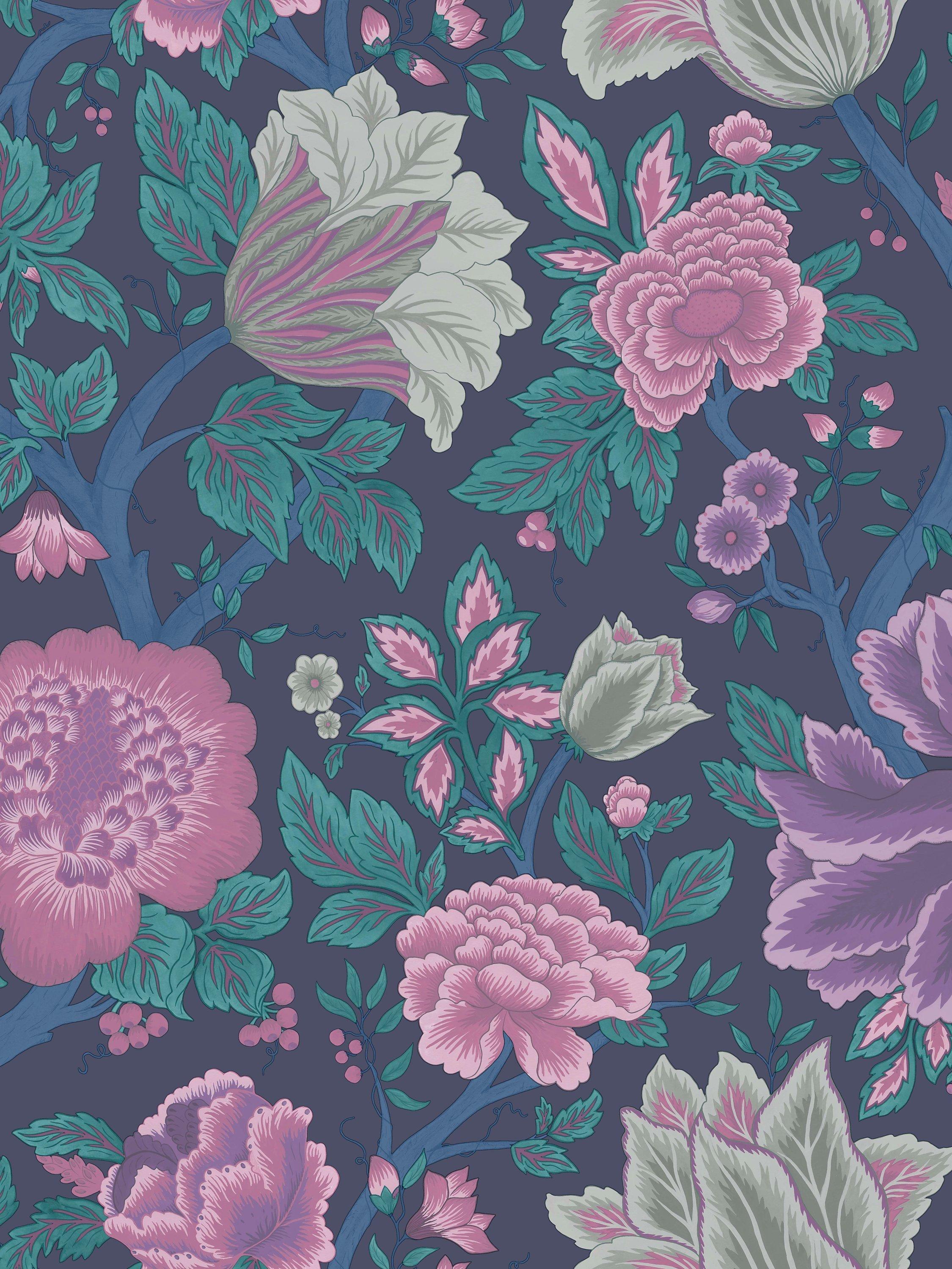 Midsummer Bloom depicts abundant summer flowers in full bloom. This blousy print was found in the Cole & Son archive and re-painted by the Design Studio to create a rich and lavish trailing floral.