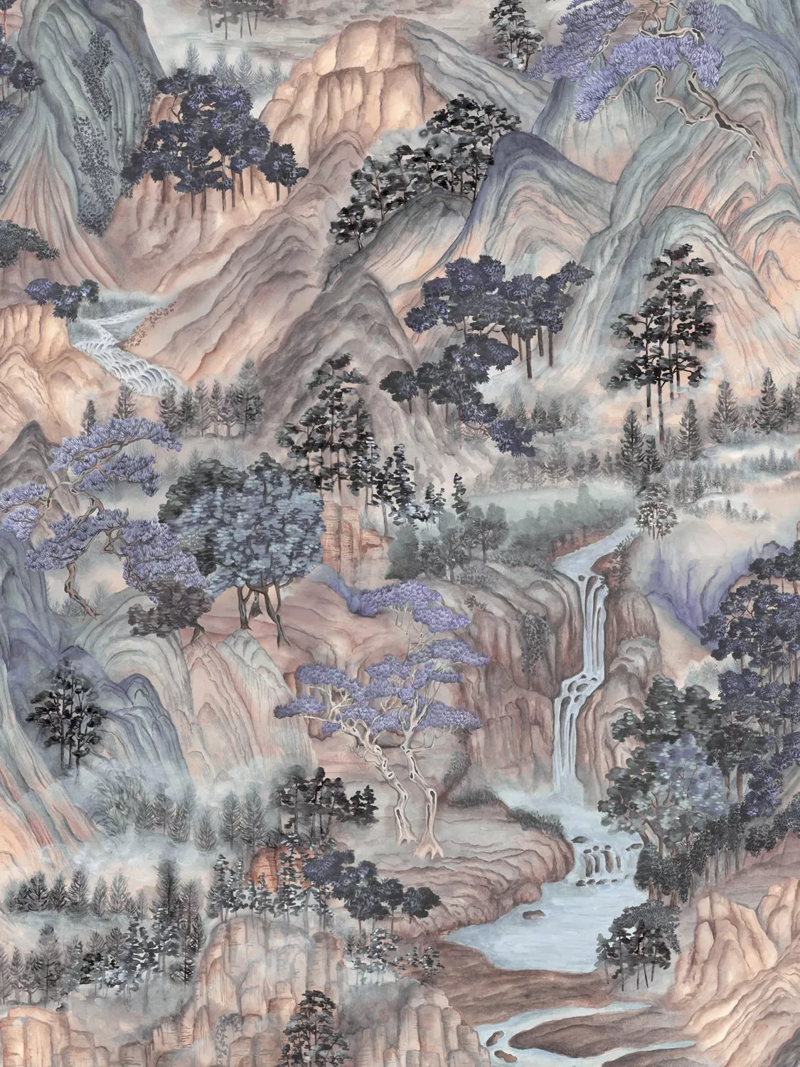 Indulge in a maximalist Cole & Son design with the dramatic landscapes of Kyoto to Tokyo that include water, mountains and gardens with the scenic Mountainscape.