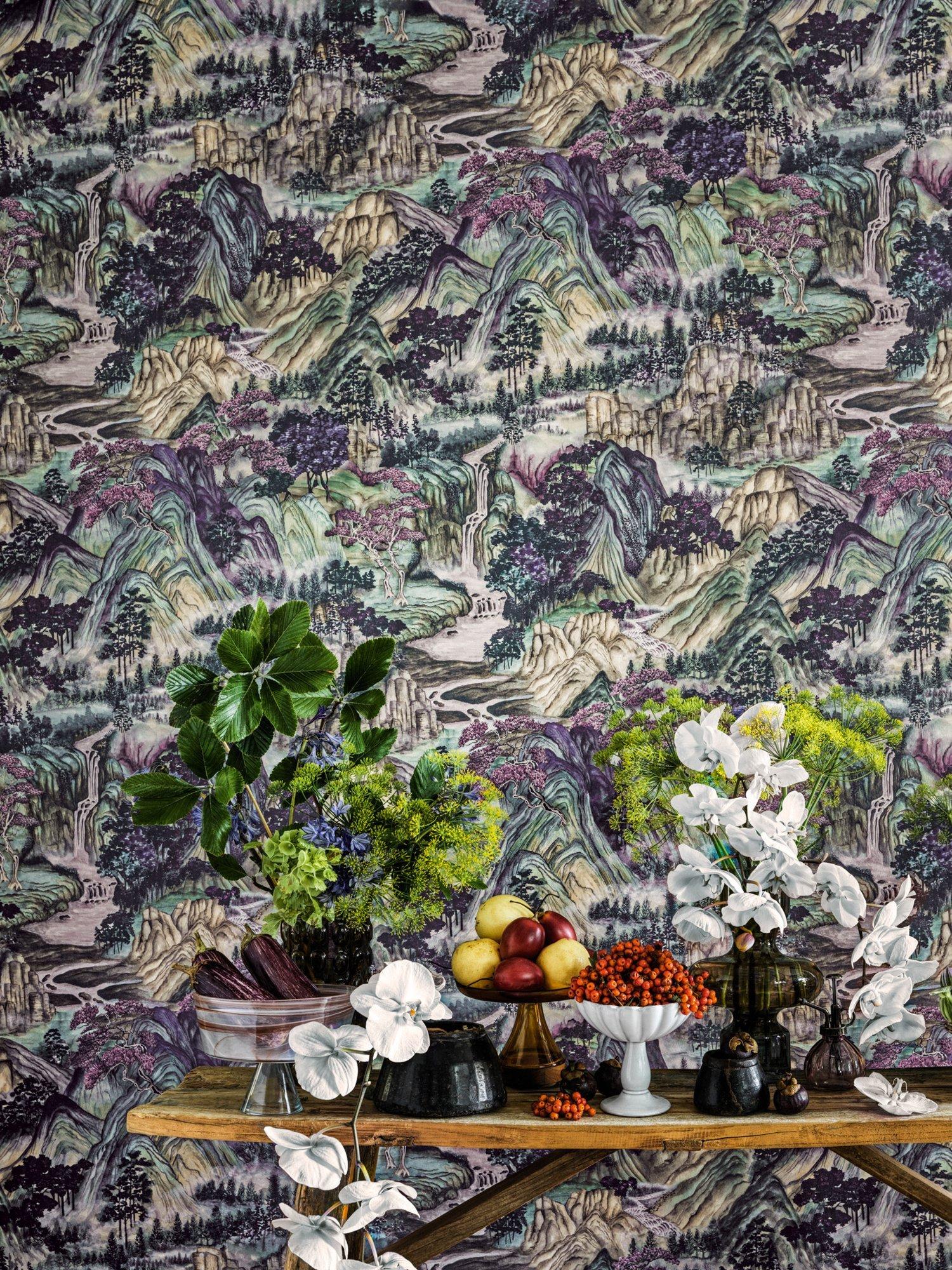 Indulge in a maximalist Cole & Son design with the dramatic landscapes of Kyoto to Tokyo that include water, mountains and gardens with the scenic Mountainscape.