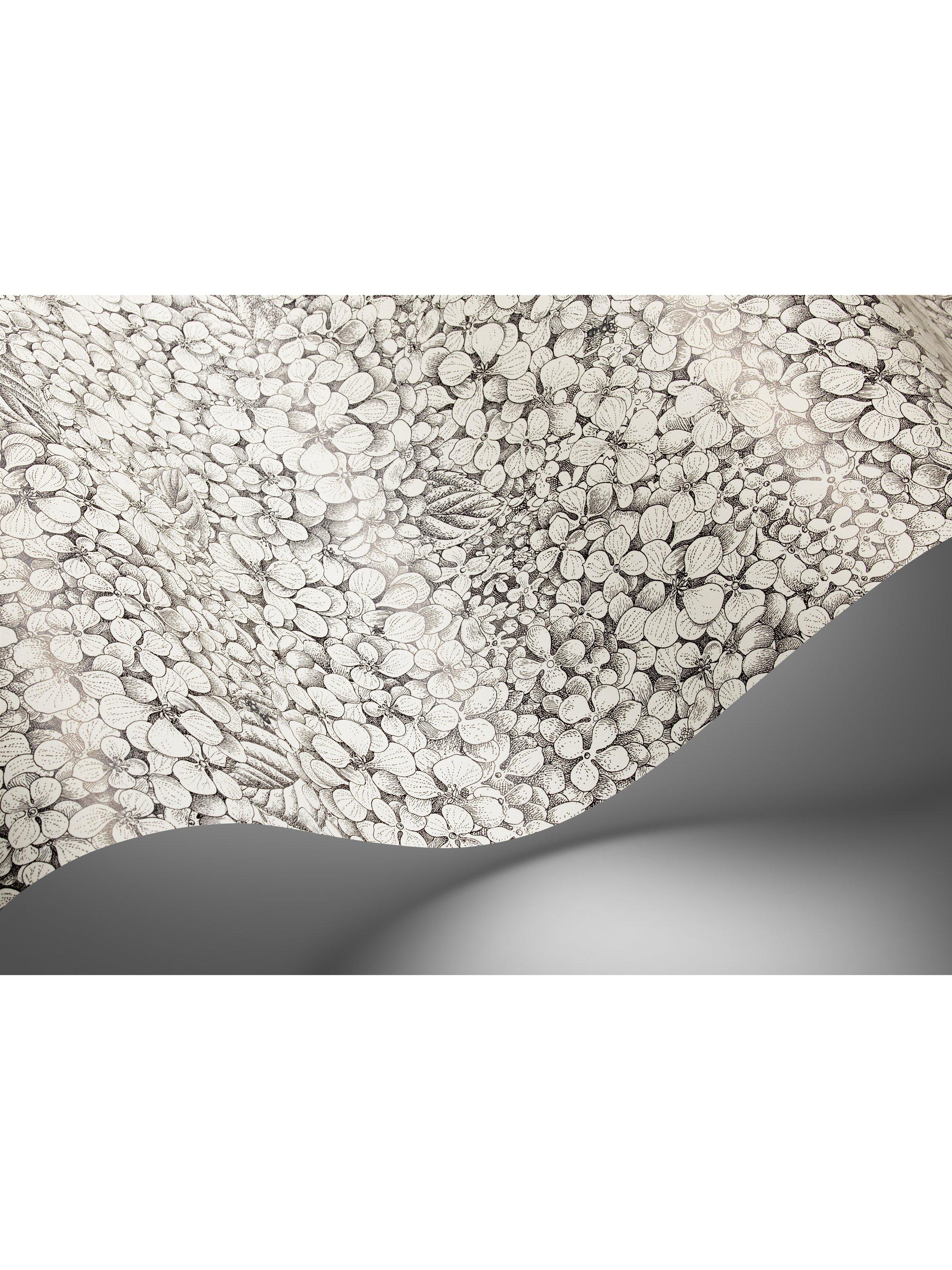 Soft pastels are reminiscent of organic Ortensia hues, whilst a simple monochrome accentuates the delicately detailed linework of this expansive design.