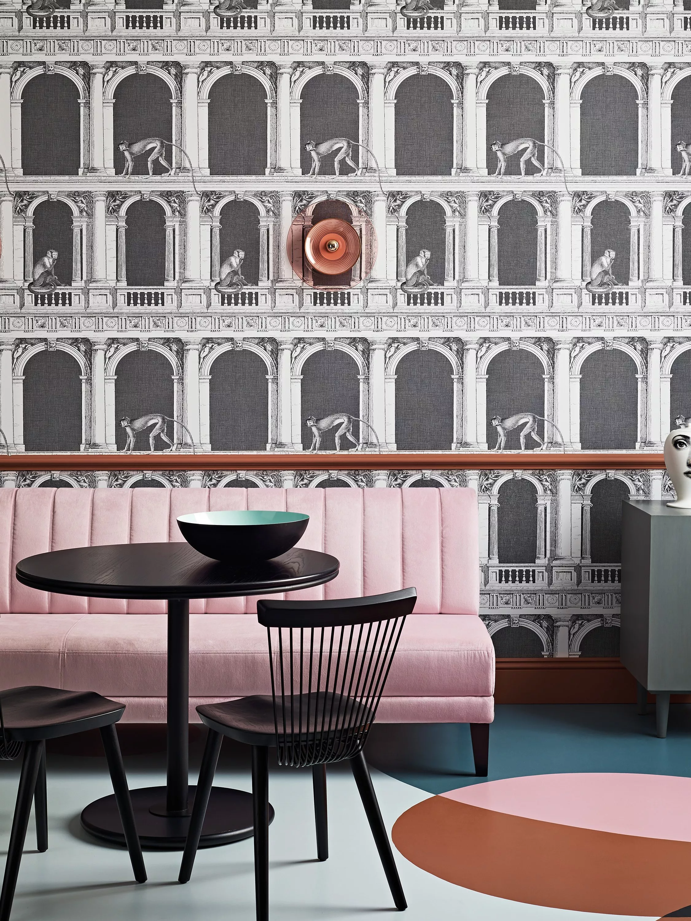 One of three architectural designs featuring the Procuratie facades of St Mark's Square Venice, this intaglio study creates a classical structure to an interior through its detailed line work and simple palette of black and white.