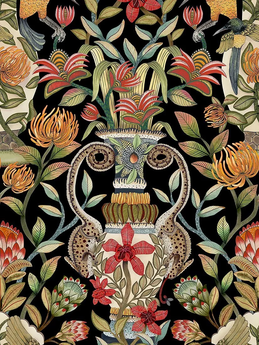This wild garden print incorporates leaves, vines and South Africa's national flower, the King Protea.